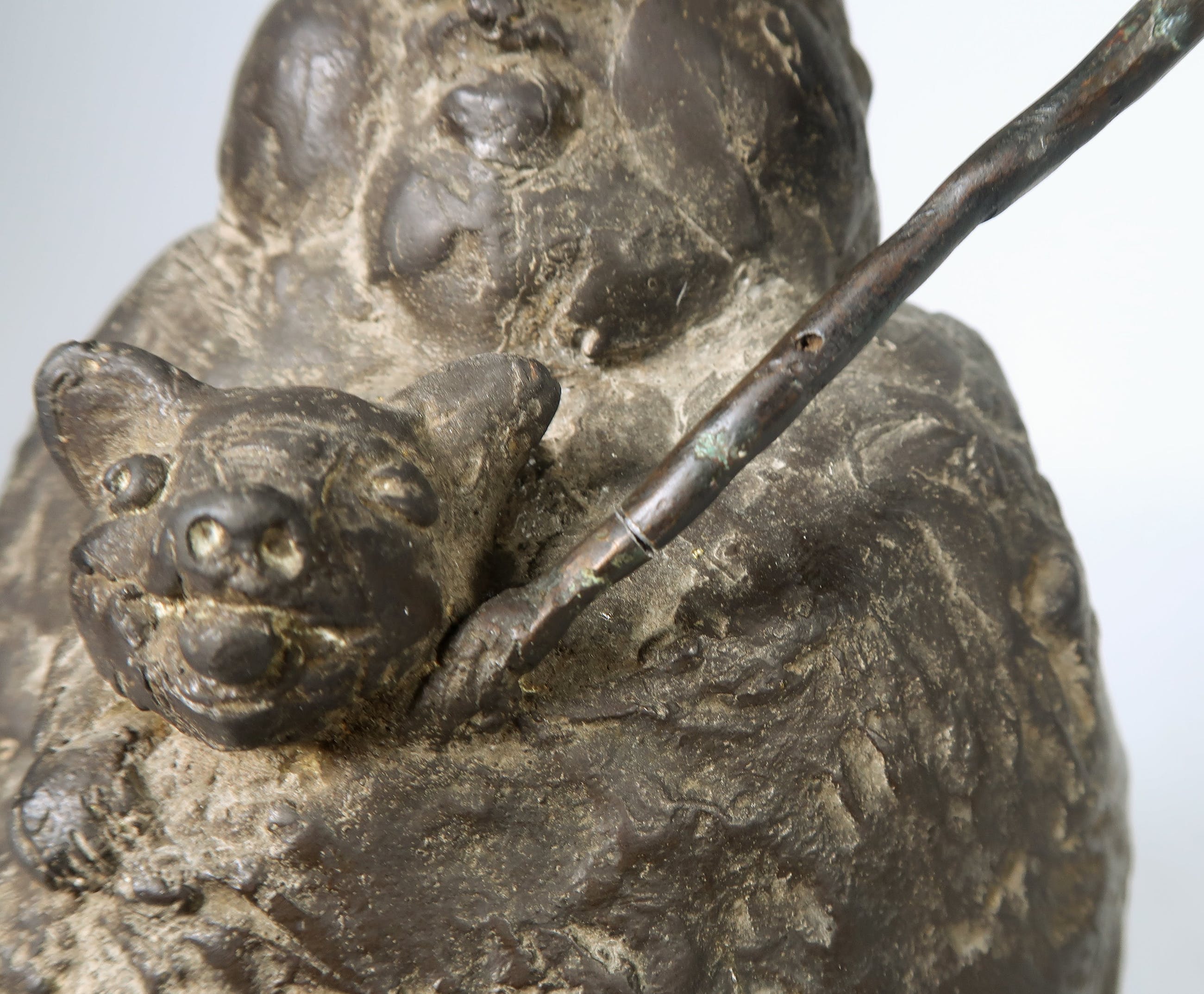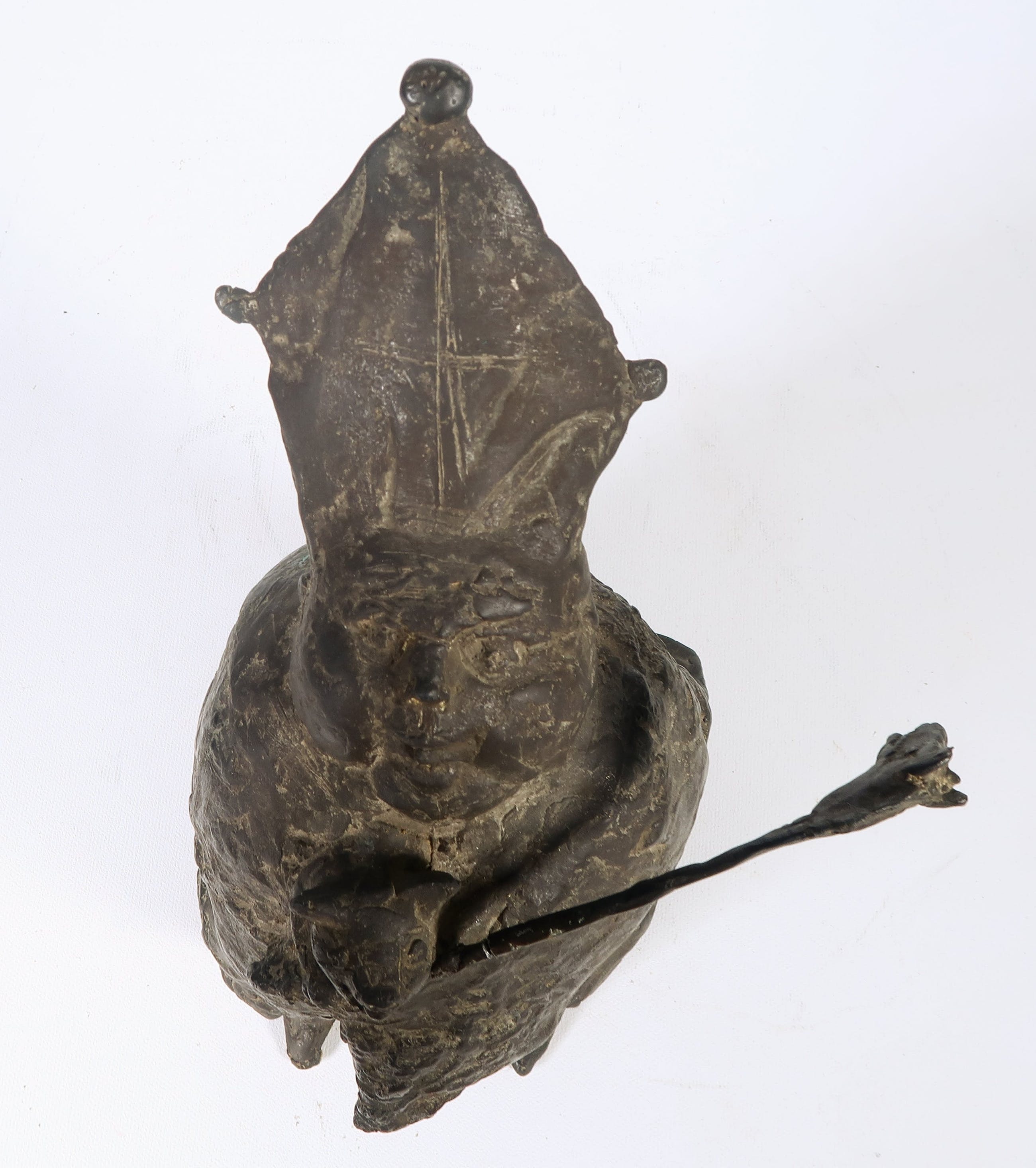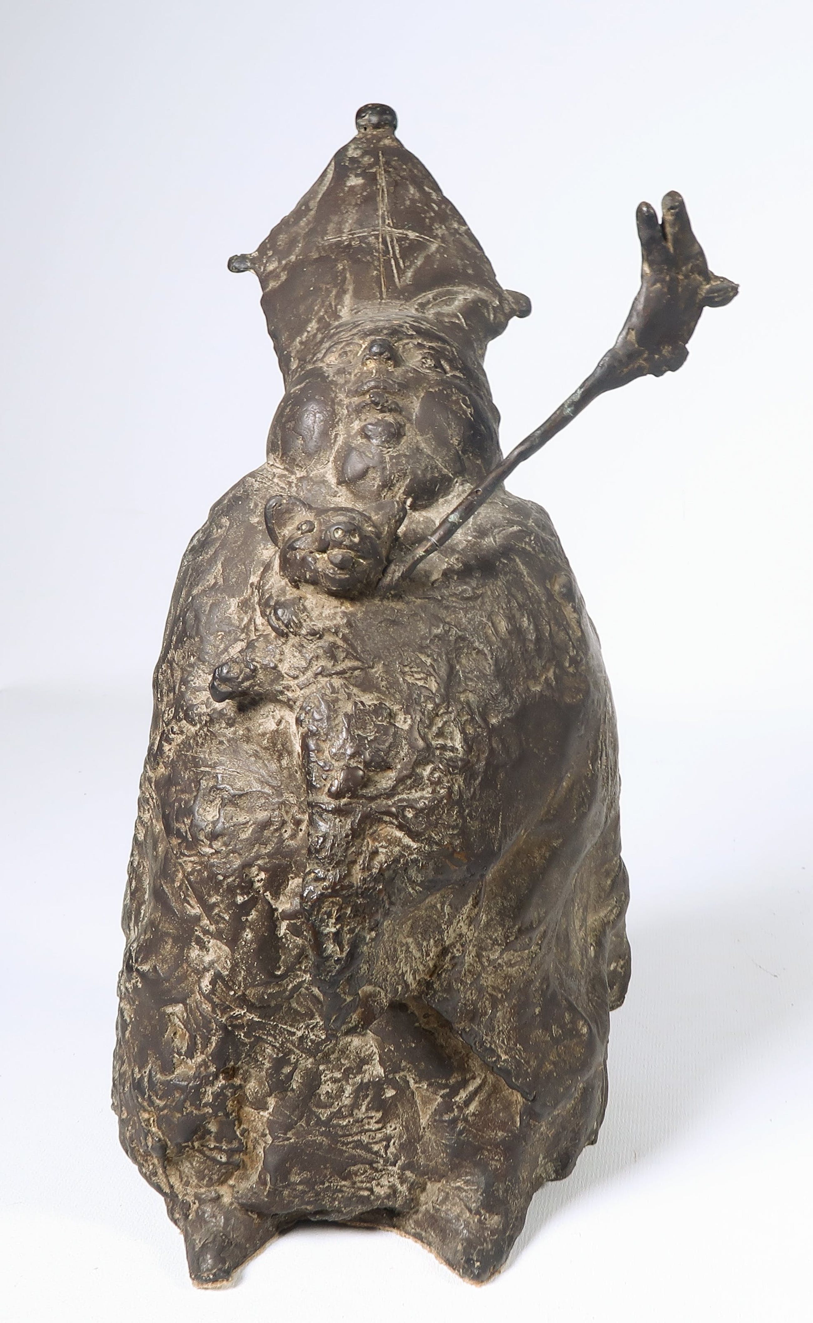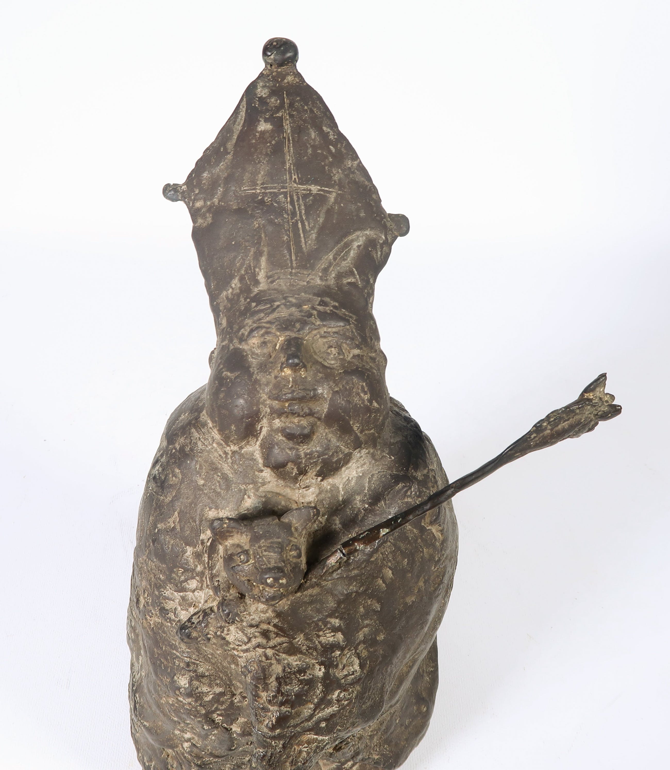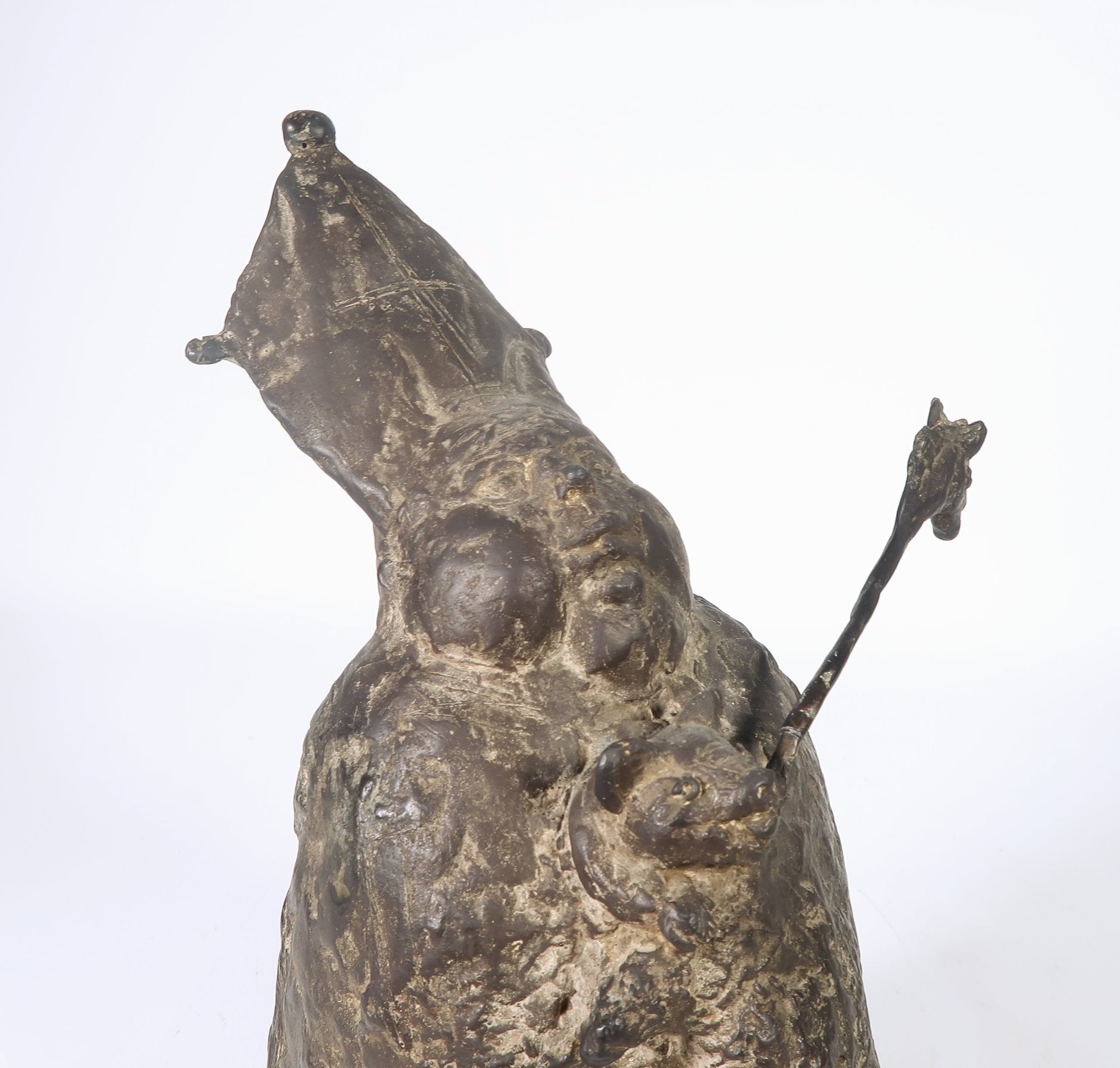 | De staf is gebroken en met een pinnetje (origineel) aan het beeld bevestigd, heeft eventueel een eenvoudige kleine restauratie nodig | |||