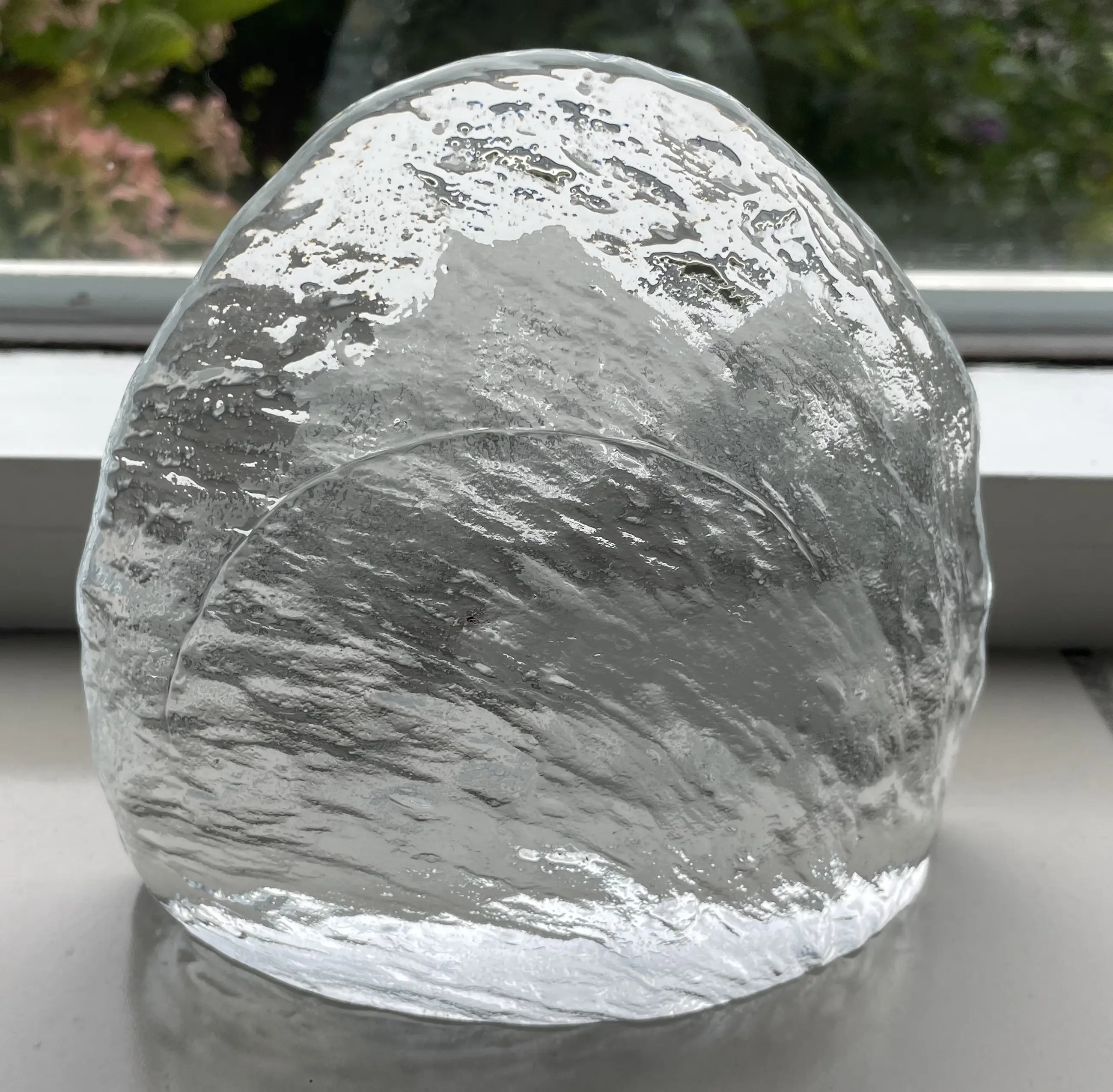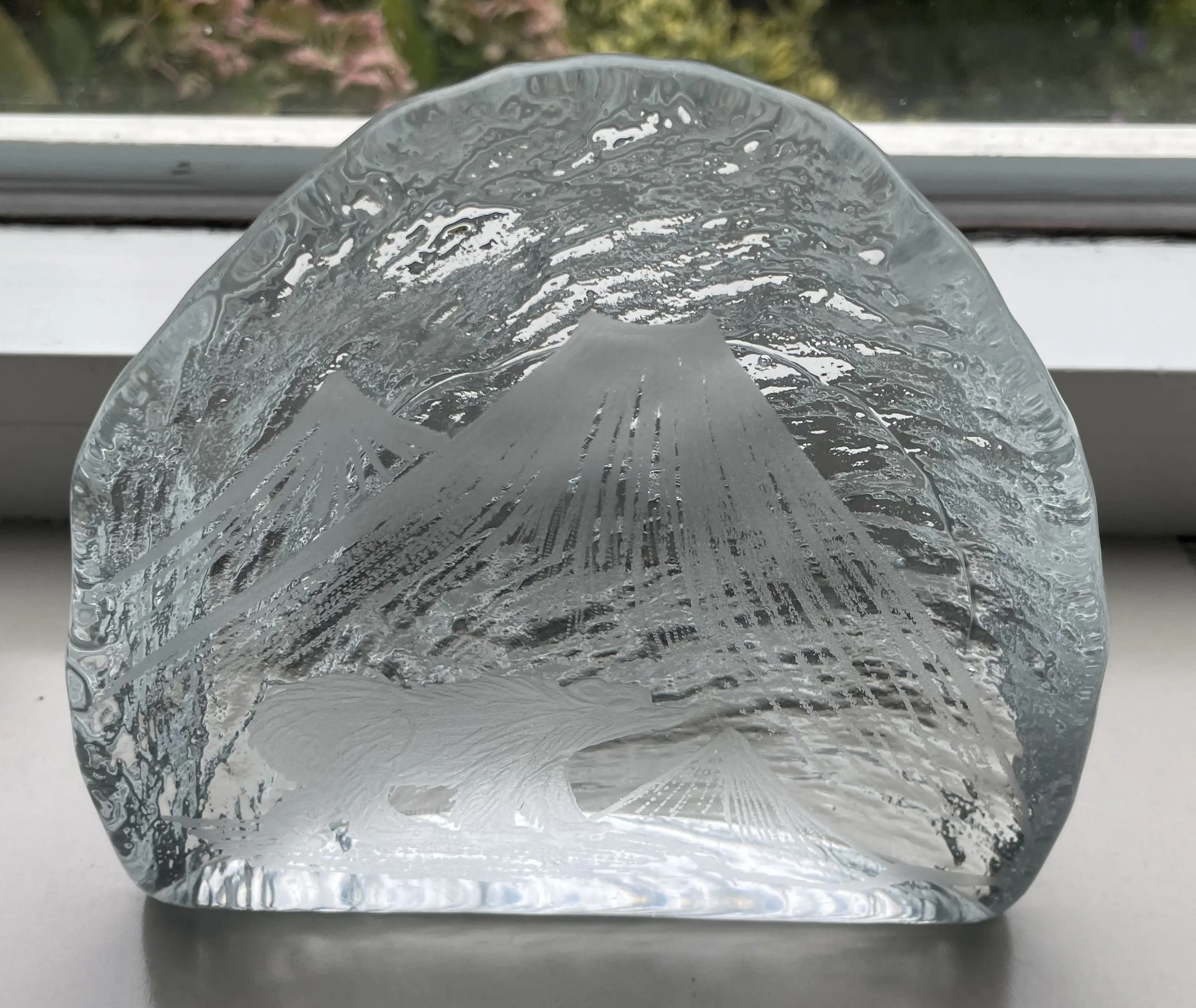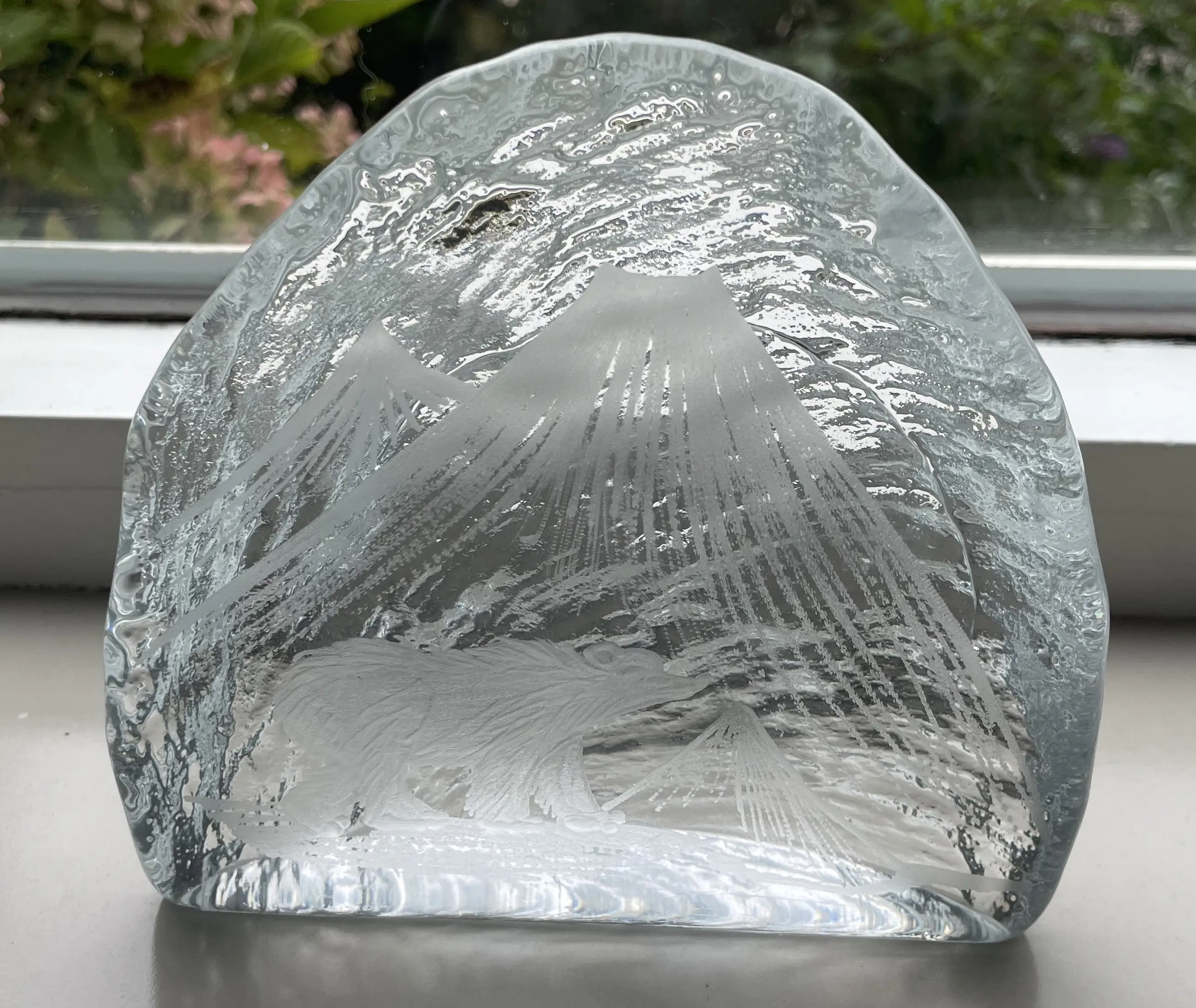 Maleras Sweden - Grote vintage ijsblok glazen object met afbeelding beer en bergen