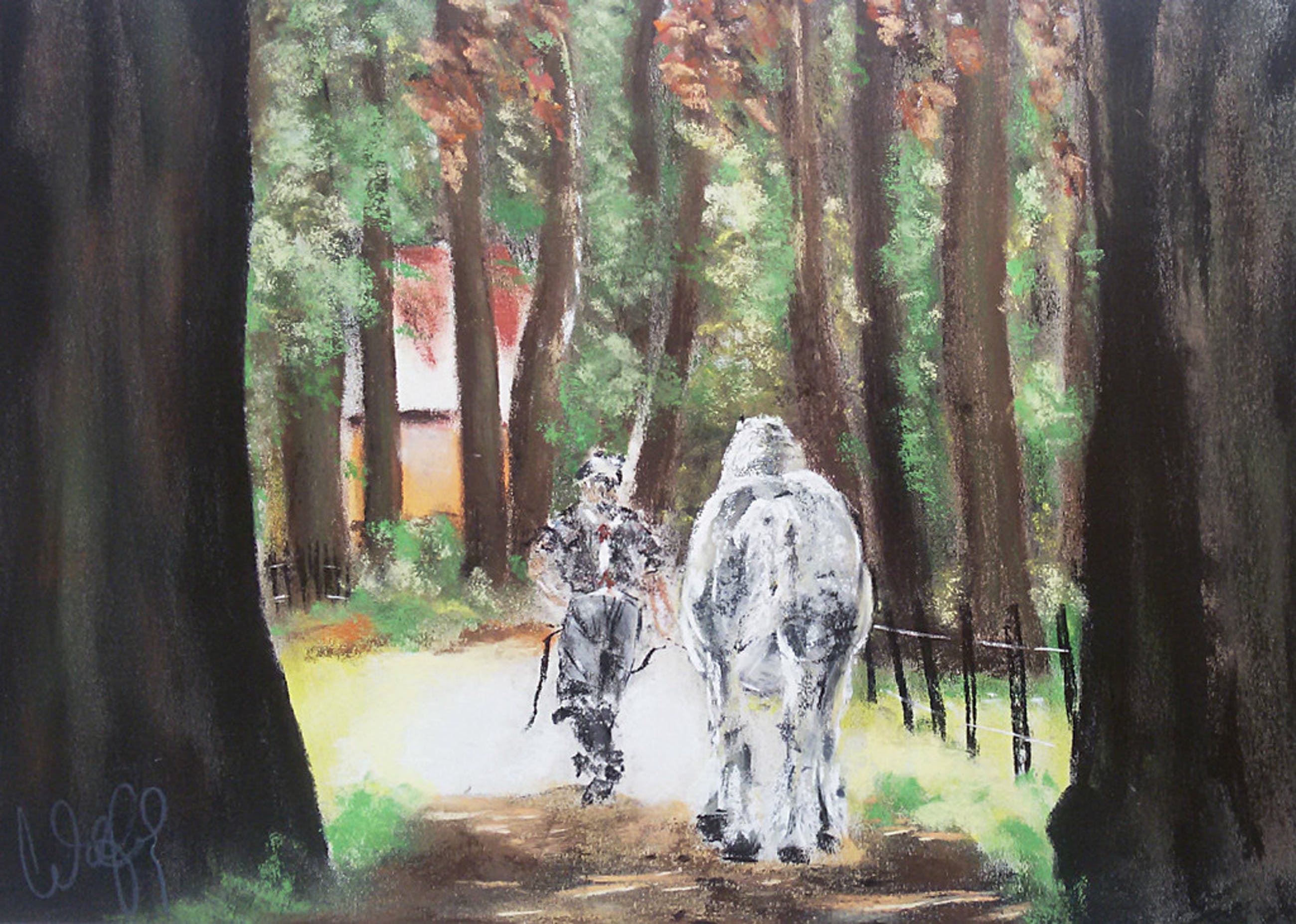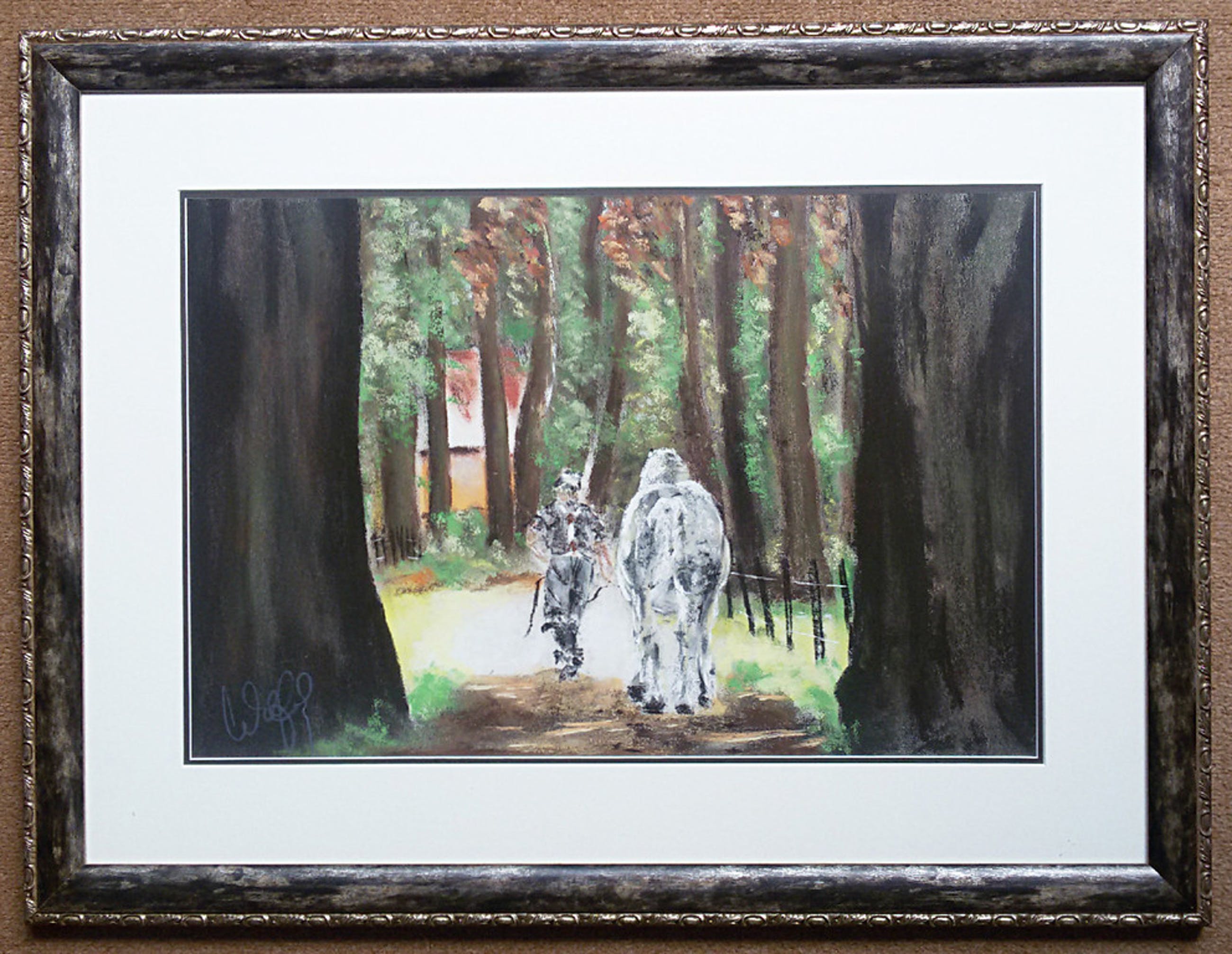 Werk van onbekende kunstenaar in prachtige lijst, achter ontspiegeld glas en dubbel passe-partout. Onduidelijk gesigneerd en gedateerd linksonder. Ik heb het werk niet uit de lijst gehaald, maar het is hoogstwaarschijnlijk pastel. Decoratief en in uitstekende conditie.