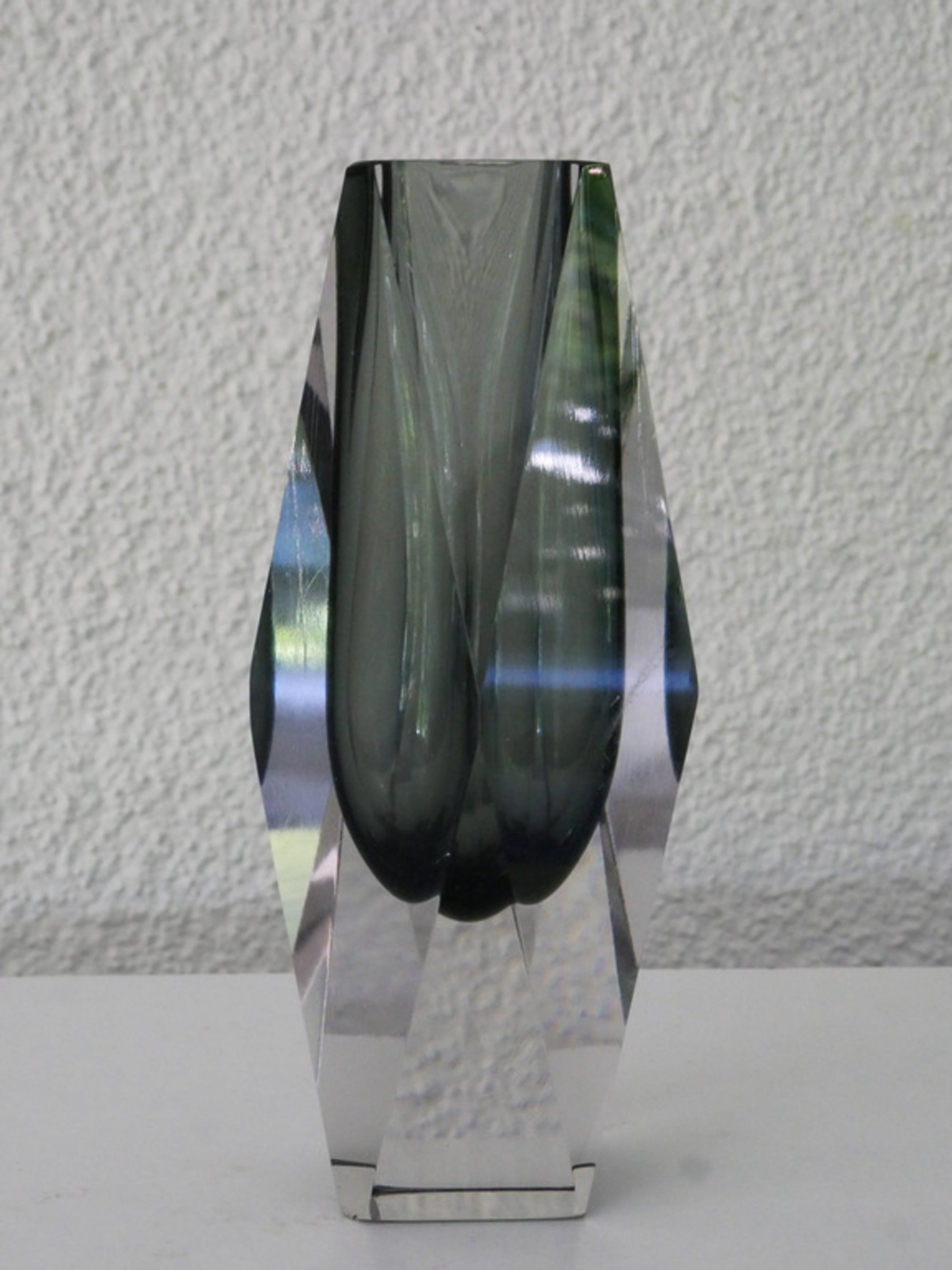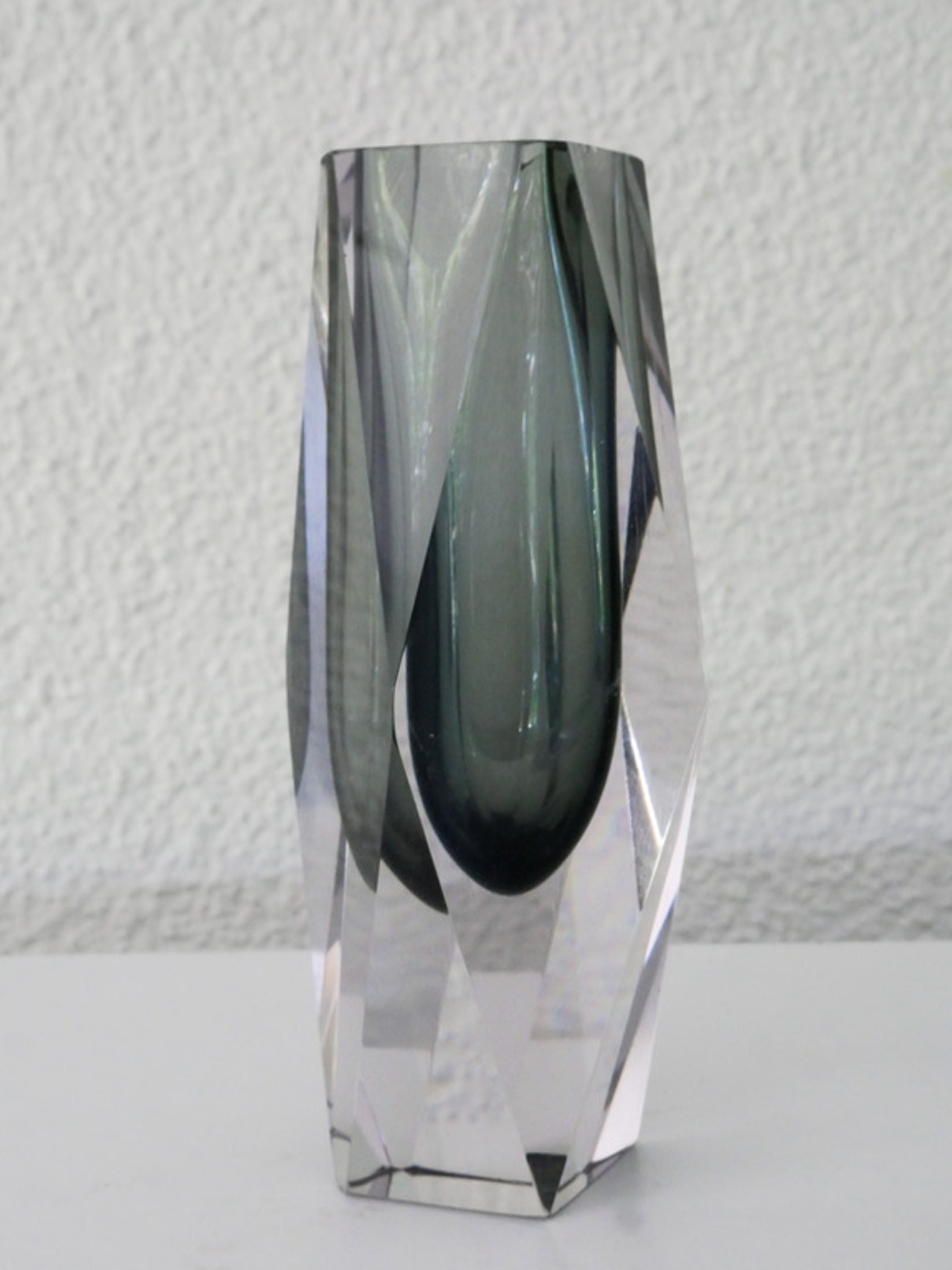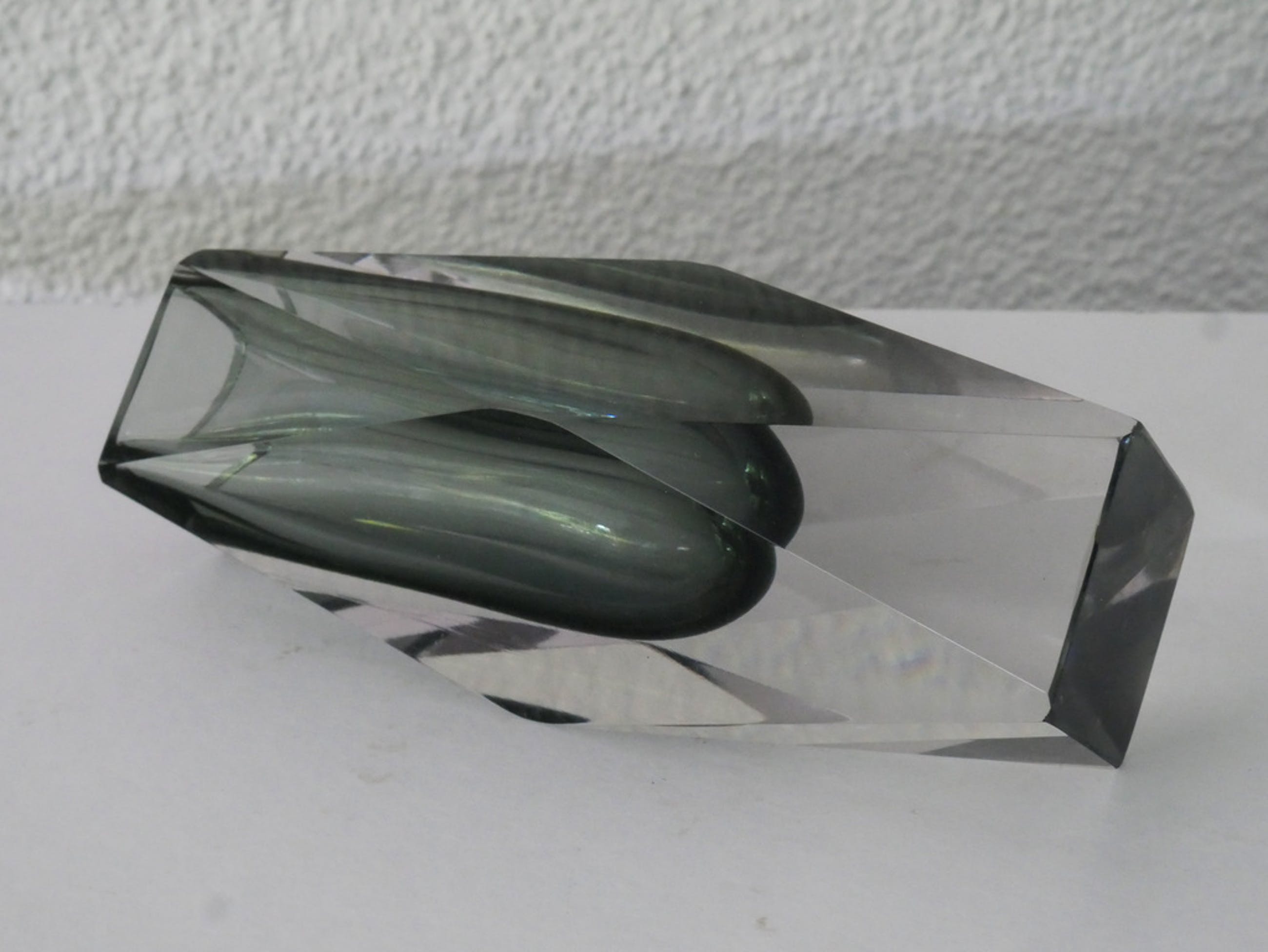Mandruzzato Murano grijze facet geslepen blok vaas uitgevoerd in de sommerso techniek.
