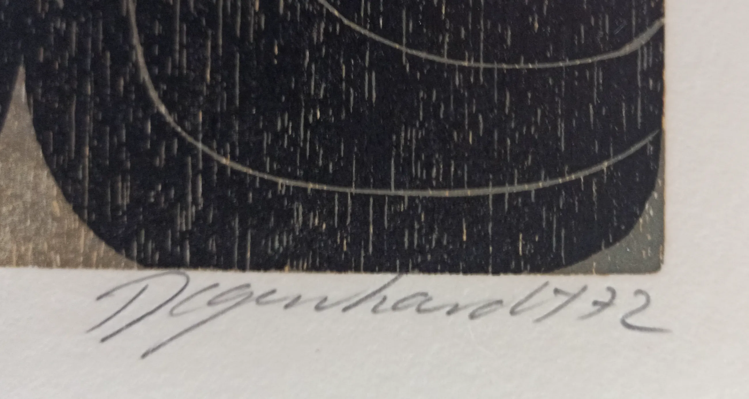 Manfred DEGENHARDT, geboren in Sigmaringen in 1940, studeerde beeldhouwkunst, grafiek en kunstgeschiedenis aan de Academie voor Schone Kunsten in Stuttgart (onder meer bij Herbert Baumann). Manfred Degenhardt werd bekend door zijn houtsneden. Degenhardt wordt beschouwd als de belangrijkste opvolger van HAP Grieshaber. Degenhardt werkt met een hoge mate van precisie en esthetische fijnheid aan het houten drukblok. De werken van Degenhardt nemen thema's over uit de oude mythologie en Keltische kunst. In het hier aangeboden blad is het onderwerp geabstraheerd. De houtsnedekunstenaar heeft onder meer geëxposeerd in Londen, New York en Chicago.