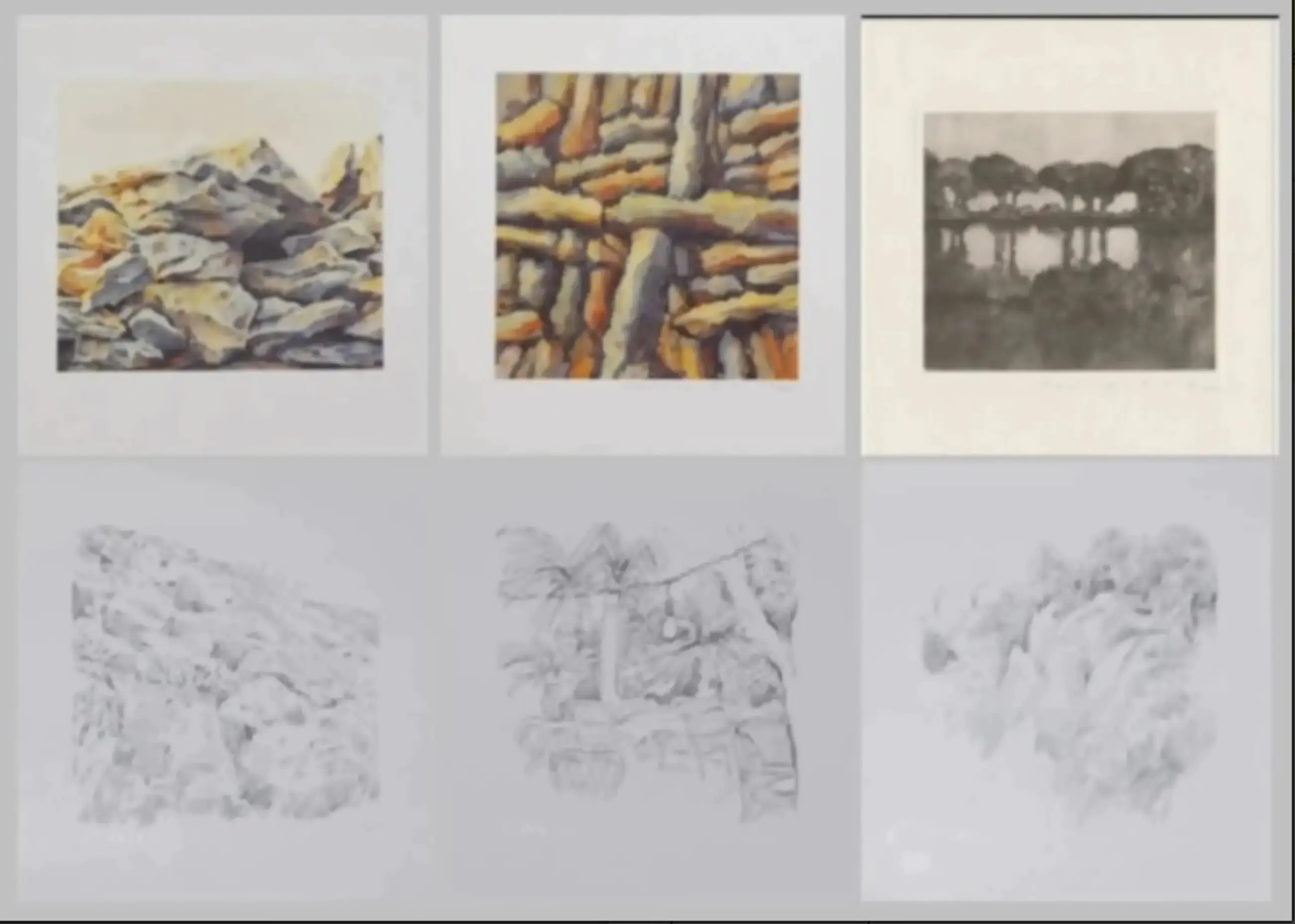Manfred Grommelt - e.a: zes handgesigneerde zeefdrukken: Landschappen I-VI - Verkocht