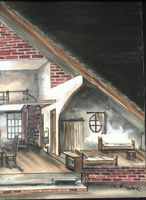 Zwei Originalbühnenbildentwürfe zu "Tagebuch der Anne Frank". Etwa 44 mal 30 cm.Aquarelle und Stifte.Beide Blätter von Hinzpeter signiert. Die Passepartouts arg ramponiert. Beide Blätter mit braunen Klebestreifen häßlich unter die Passep. montiert. Es handelt sich um Blätter, mit denen gearbeitet wurde, deswegen Altersspuren. Aber nichts eingerissen etc.Rar.Privatverkauf. Versand 10?. Andere Blätter erfragen.