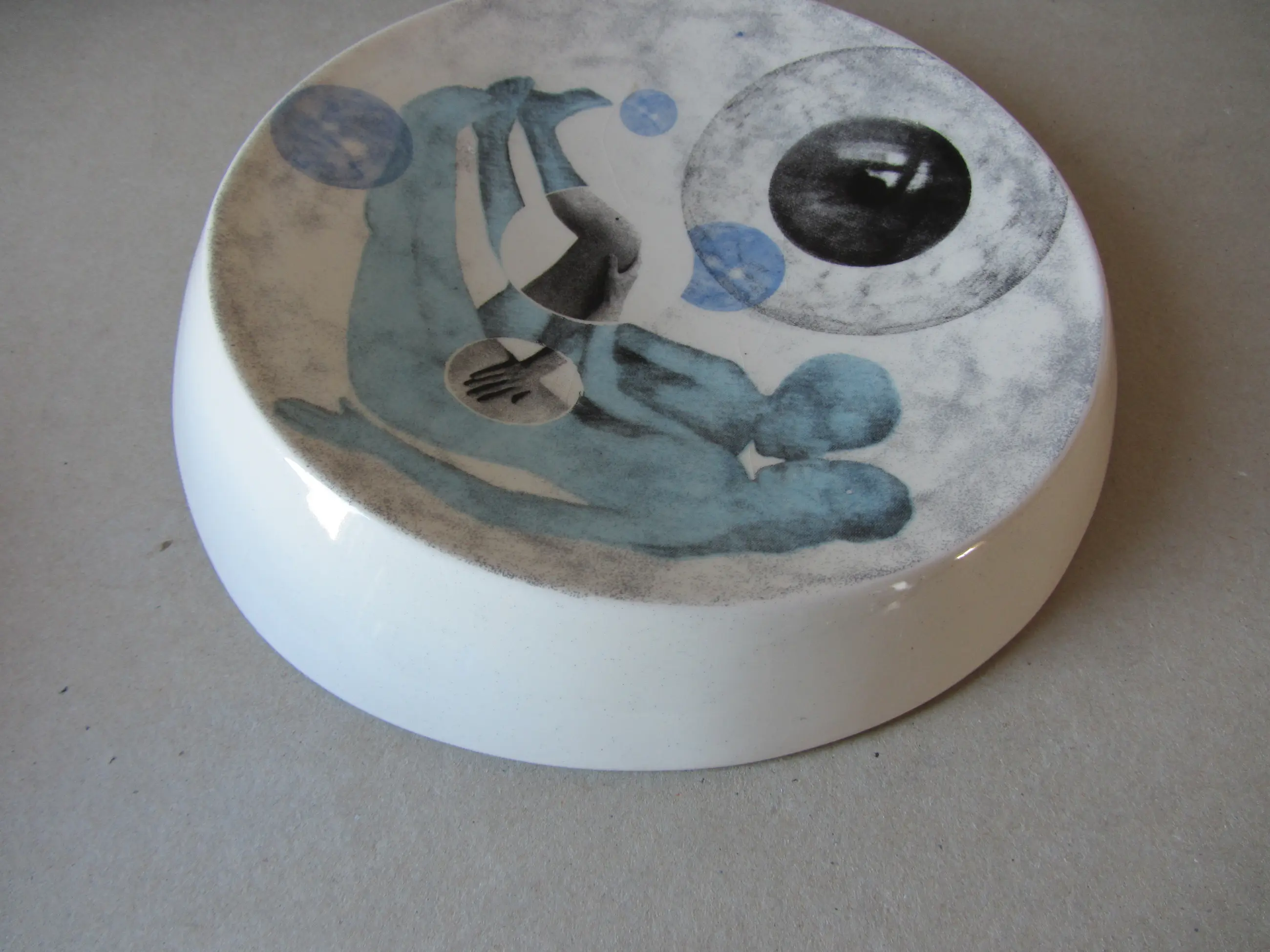 2 door Manita Kieft ontworpen keramiek schalen. Afmeting: hoogte 3 cm, breedte 24 cm, diepte 23 cm. In zeer goede staat.