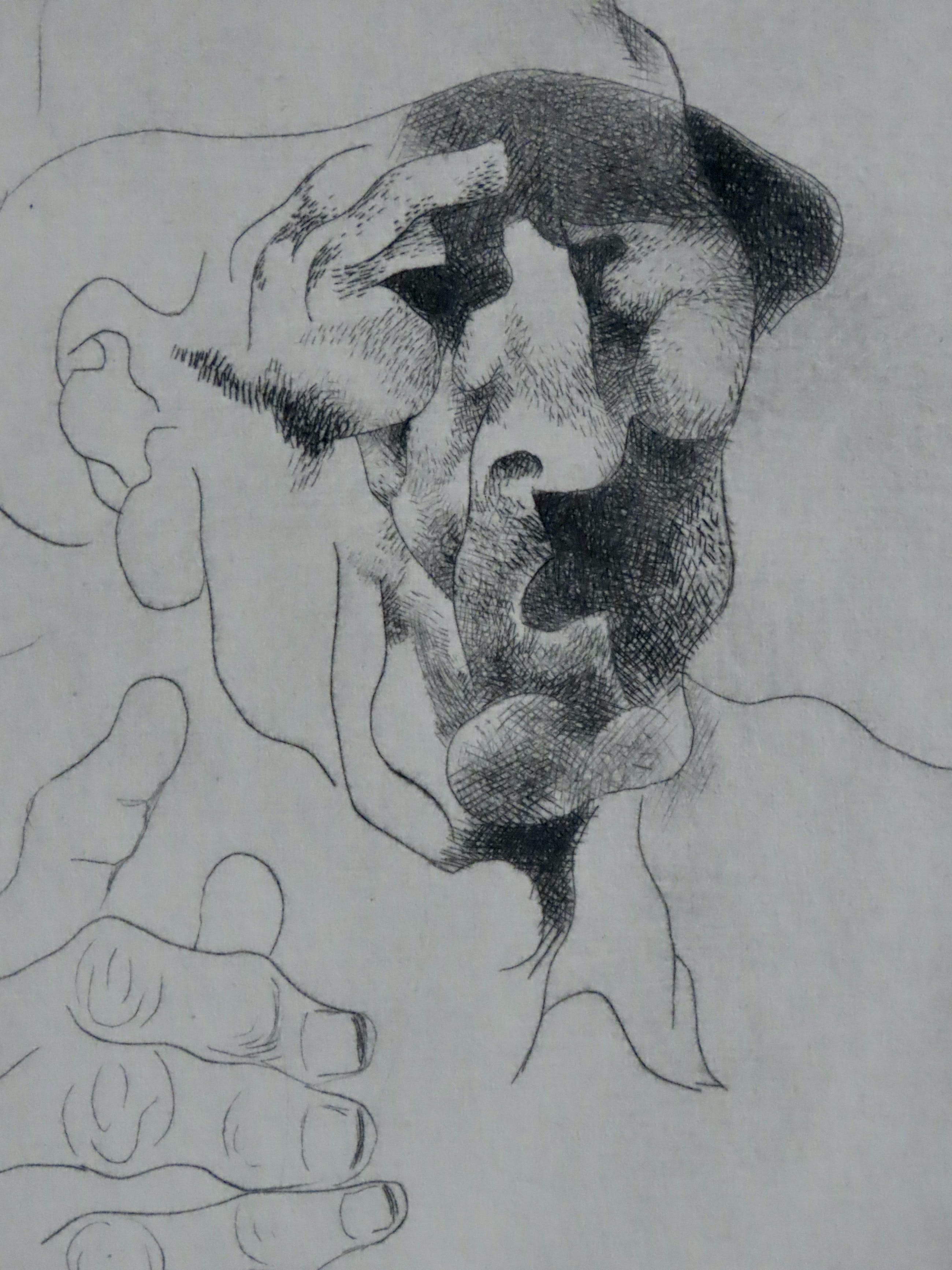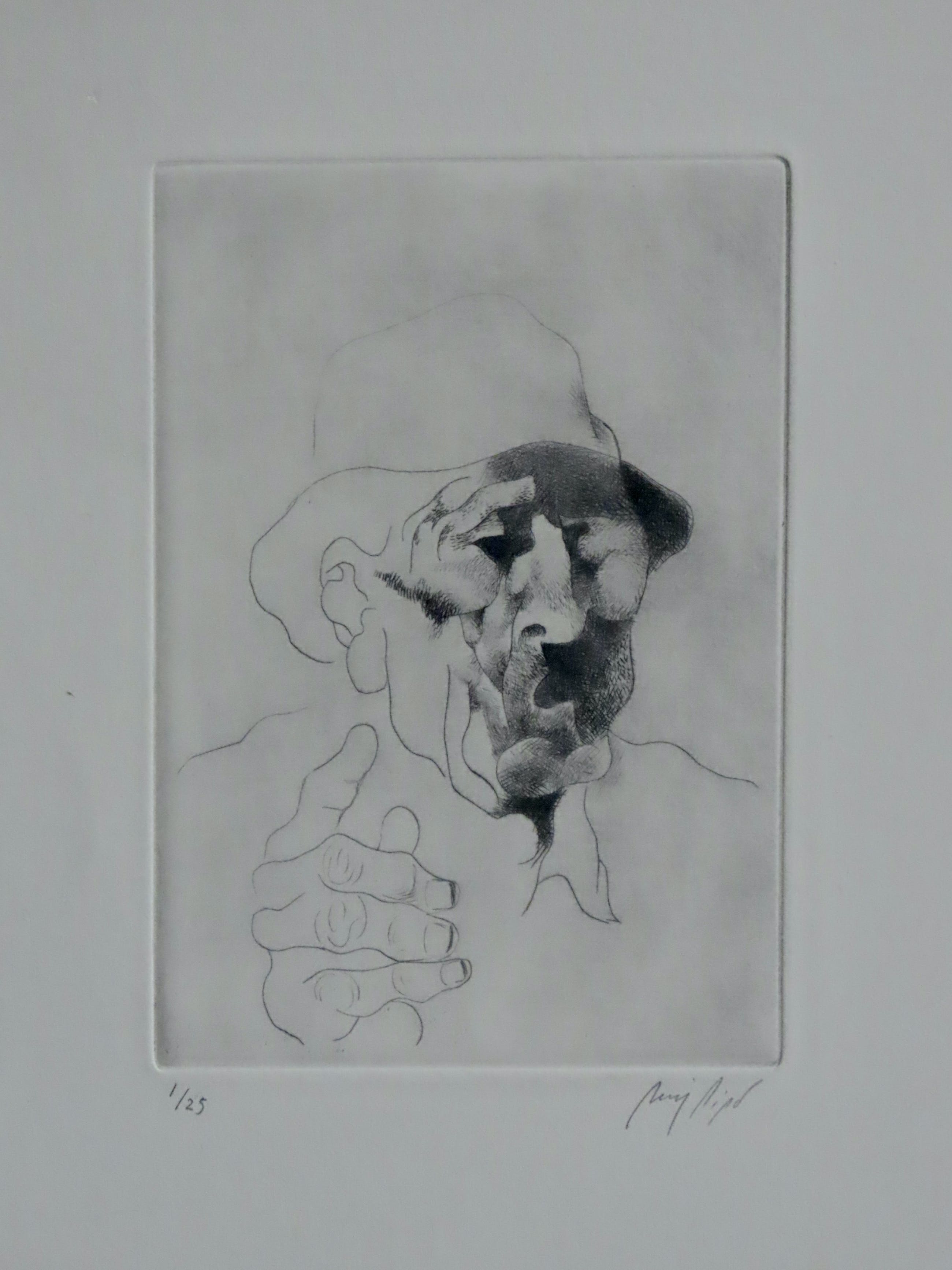 Fraaie abstracte ets van een mannenhoofd van de Spaanse kunstenaar Manolo Ruiz Pipo.