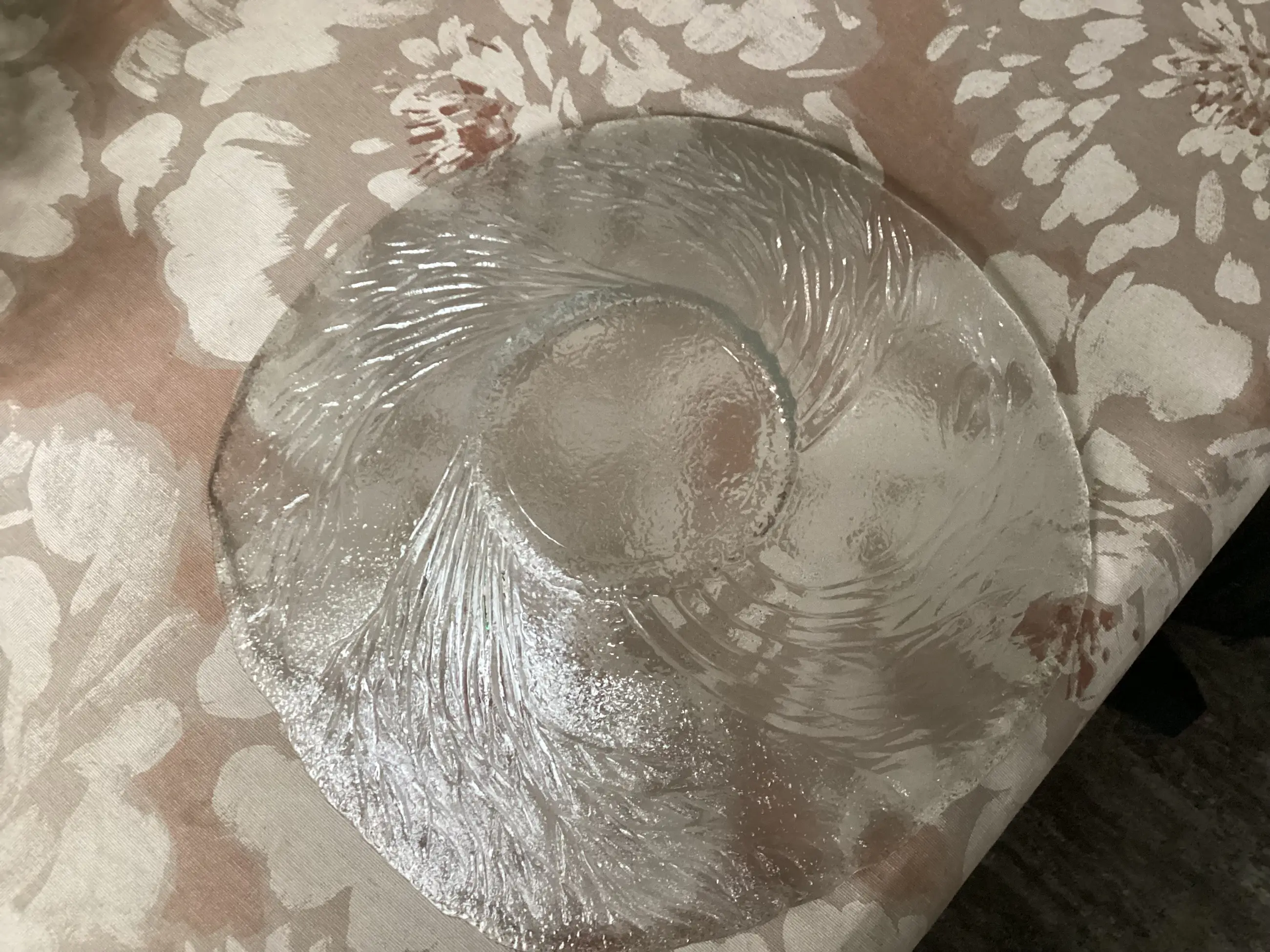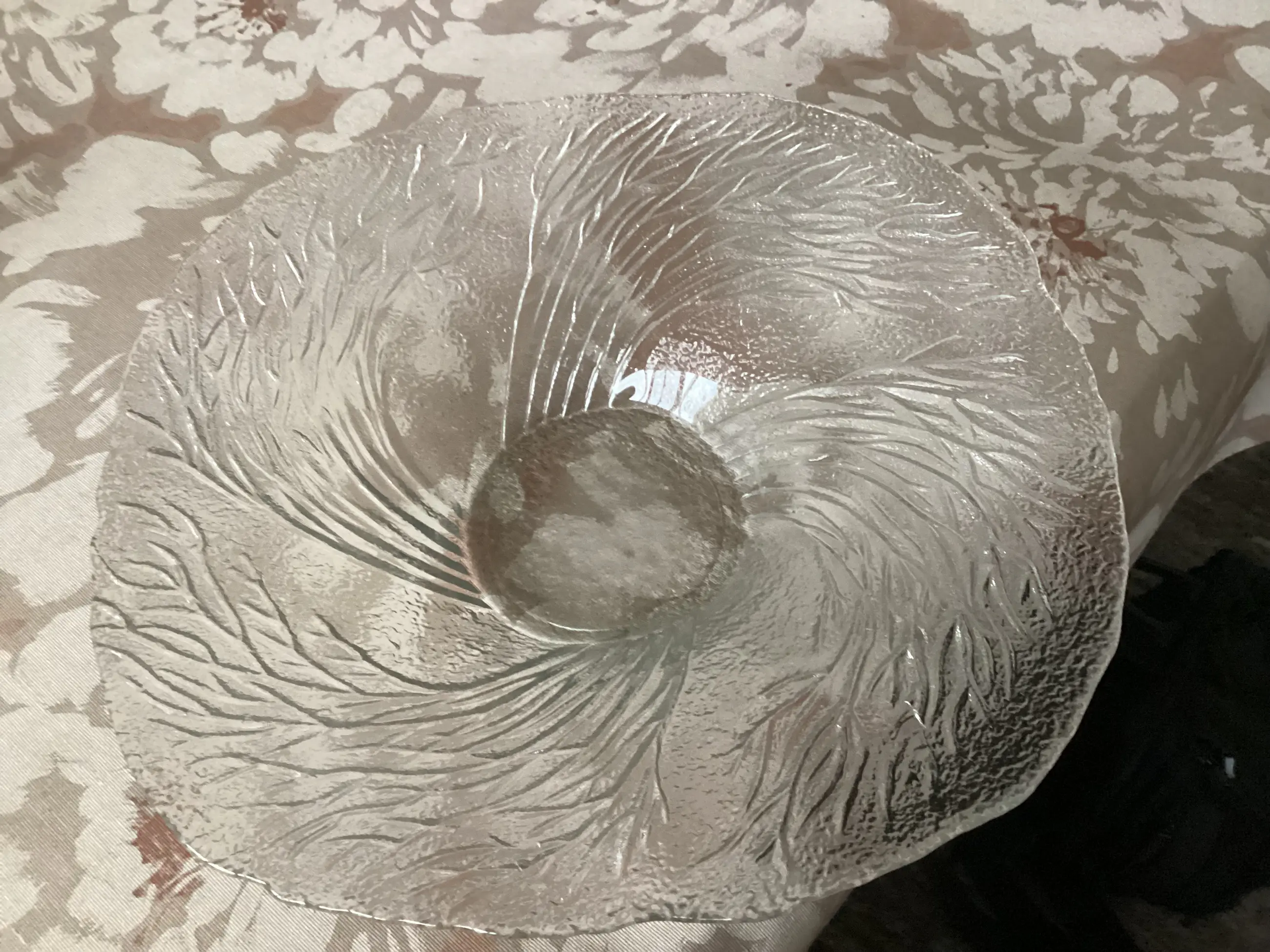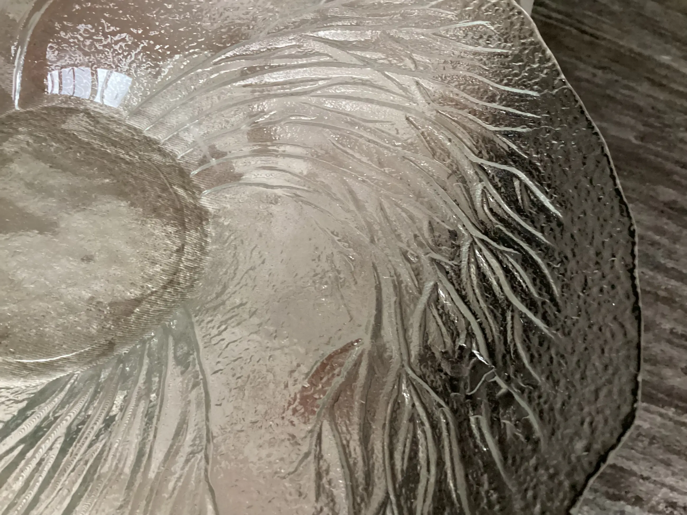 Zeer fraaie schaal van de Finse glasblazerij Lasisepät Mäntsälä ( later onderdeel van Littala). Schaal is uit de serie Metsä (bos) Schaal is een ontwerp van Pertti Kallioinen. De schaal is gedecoreerd met een patroon van door wind meegevoerde winterbomen die rond de ronde vorm kronkelen en vanuit een stevige voet uitwaaieren. Het ontwerp is geïnspireerd op de natuur(bos). Is uitstekende staat.