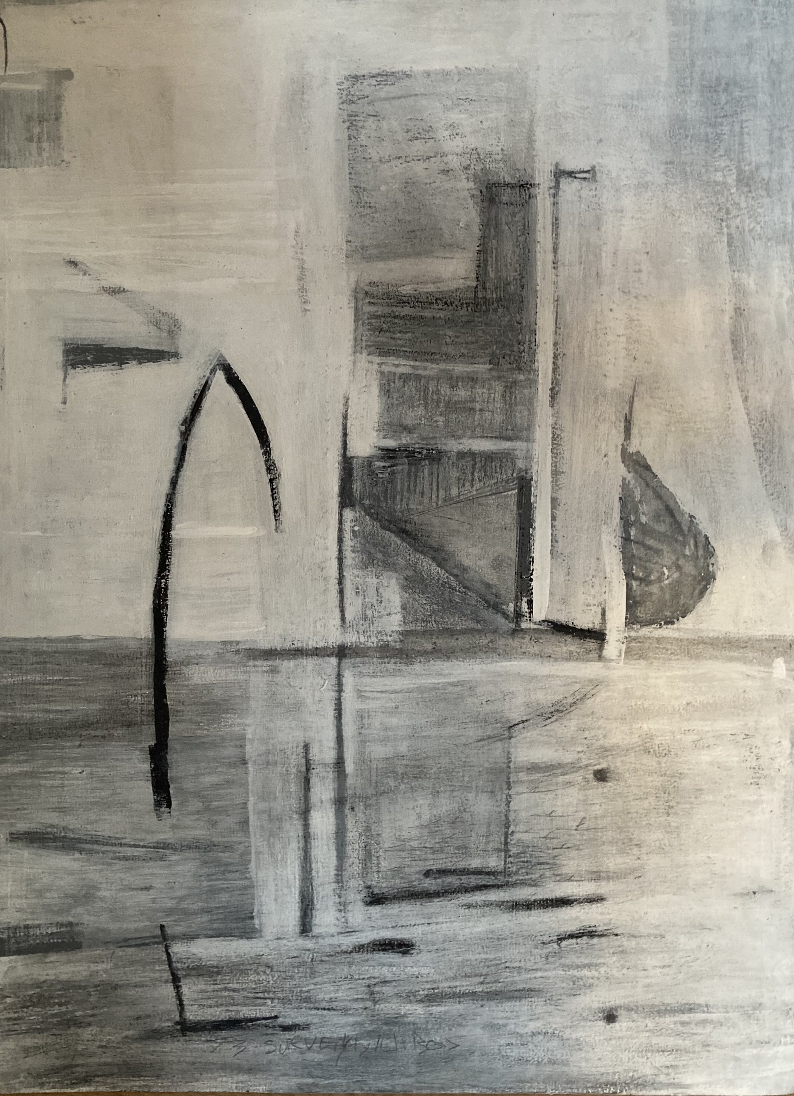 Mooi origineel werk van Manu Baeyens, gemengde techniek op papier.
