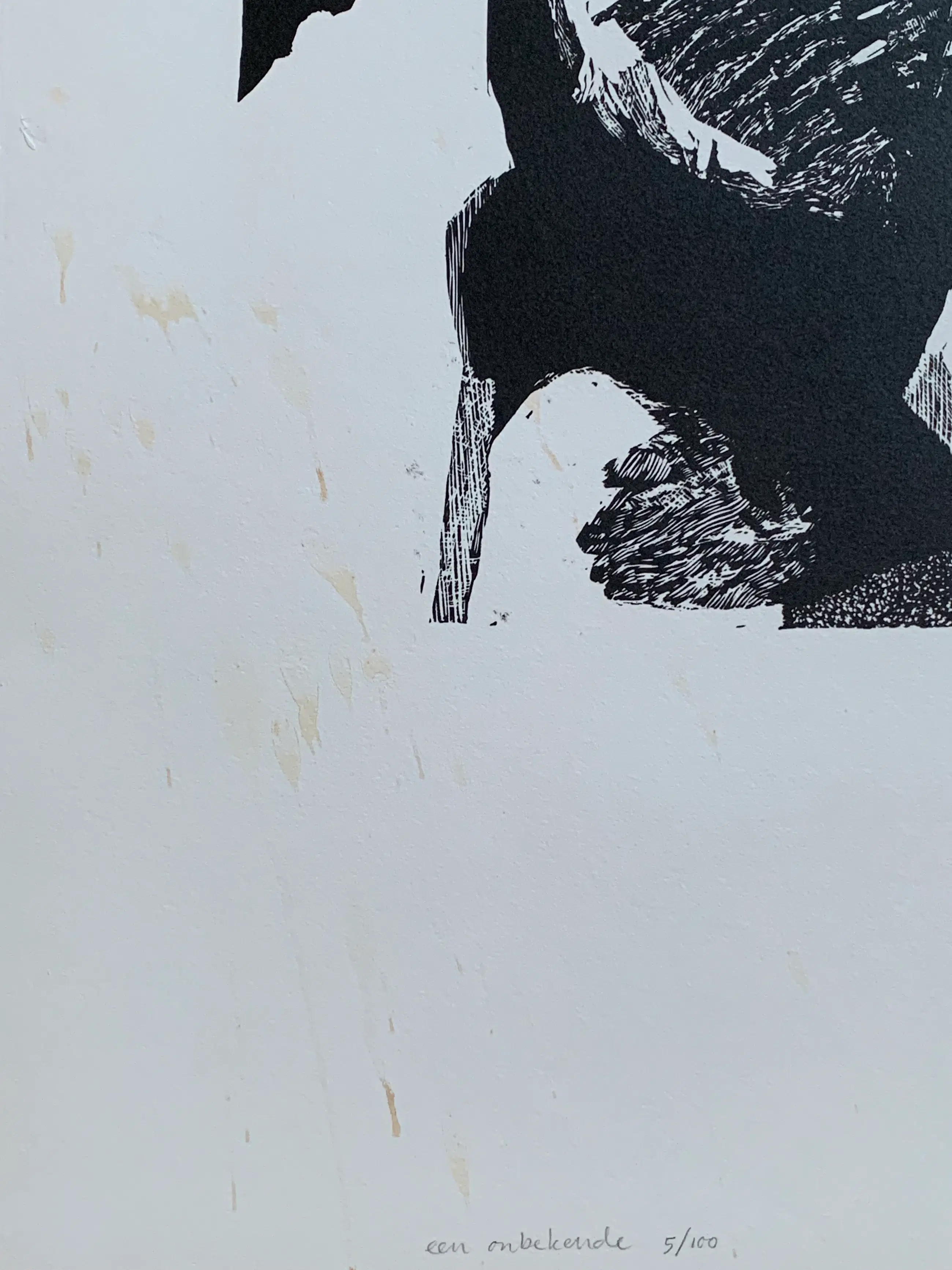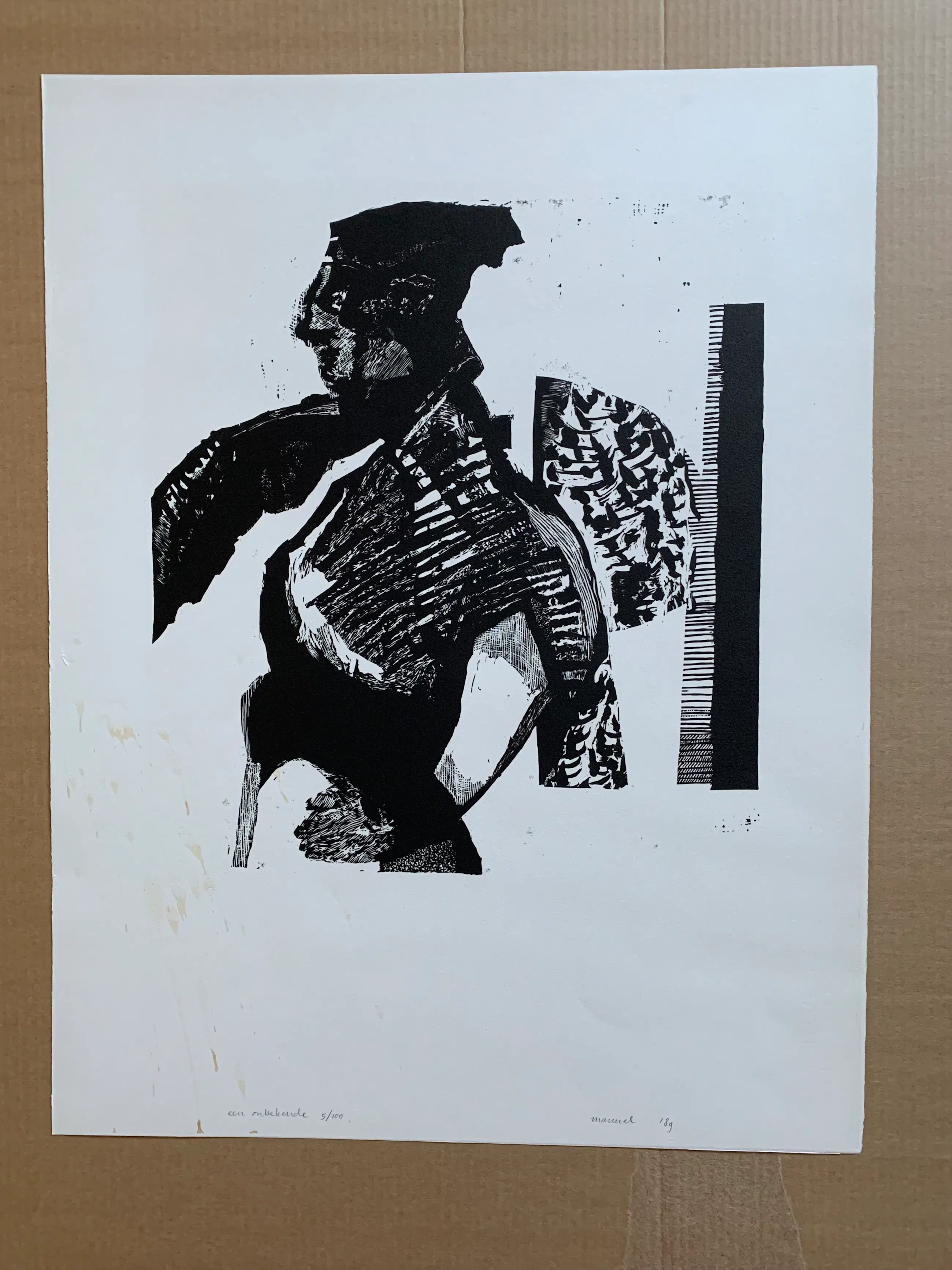 Linosnede van Manuel Kurpershoek uit 1990. In redelijke conditie. Door de vlekken linksonder is deze linosnede laaggeprijsd.
