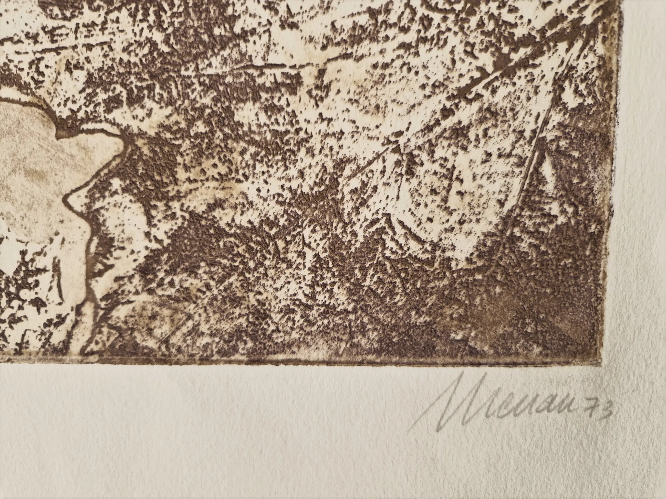 - Mooi gebruik van de verschillende technieken Ets, Aquatint en Reliëfdruk in dit werk van kunstenaar Manuel Menan