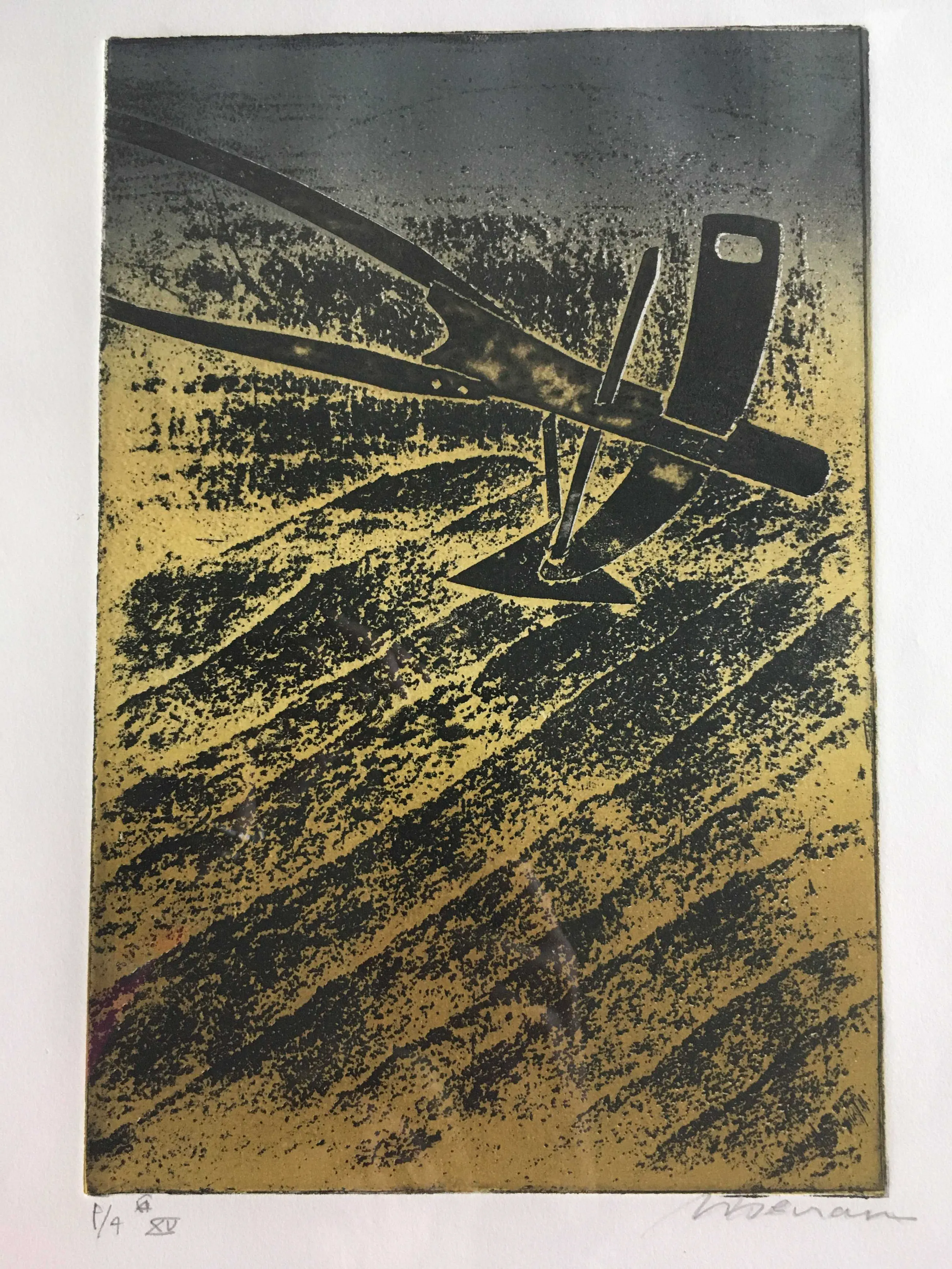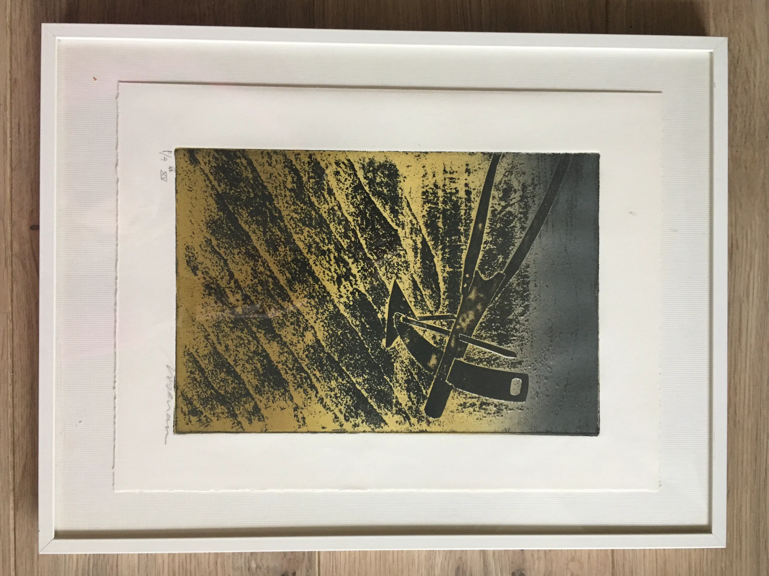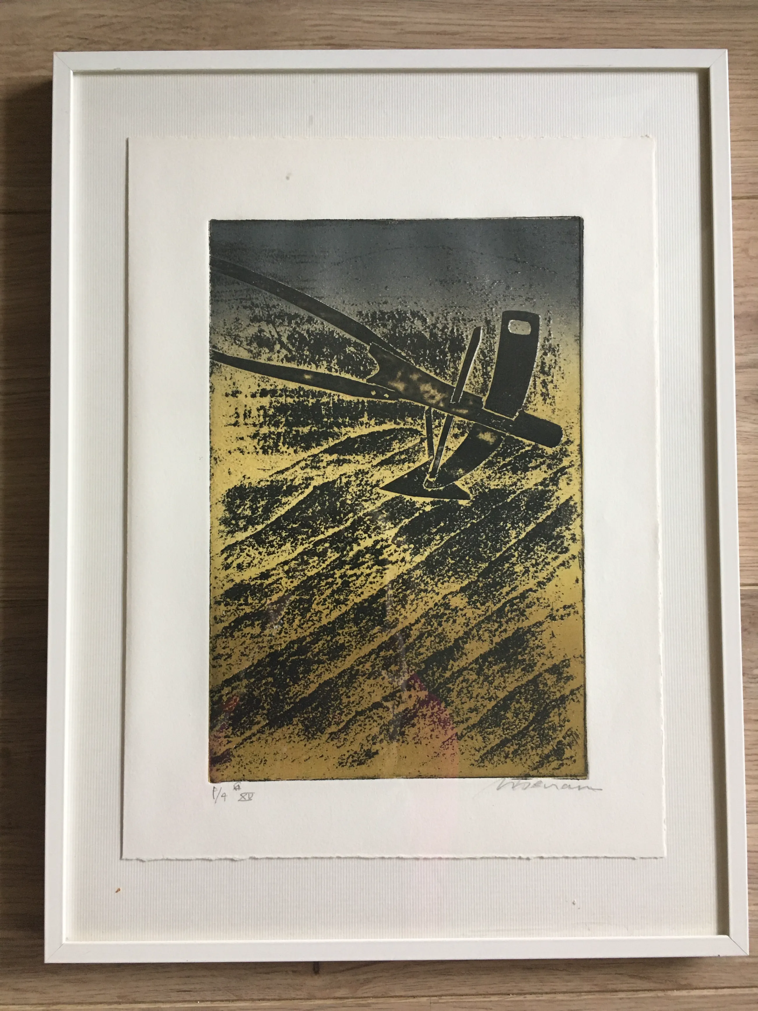 Litho/zeefdruk van Manuel Menan geboren in Madrid in 1946. De Spaanse kunstenaar en graficus volgde zijn opleiding in Madrid en Nederland. Naam van het werk onbekend. De litho/zeefdruk is gedrukt op geschept papier en ingelijst. Kleurstelling: Zwart, grijs, geel/beige. Maten: Het kunstwerk zelf is 25,5 cm hoog en 17 cm breed. De lijst is 41 cm hoog en 31 cm breed. Verzendkosten voor de koper.