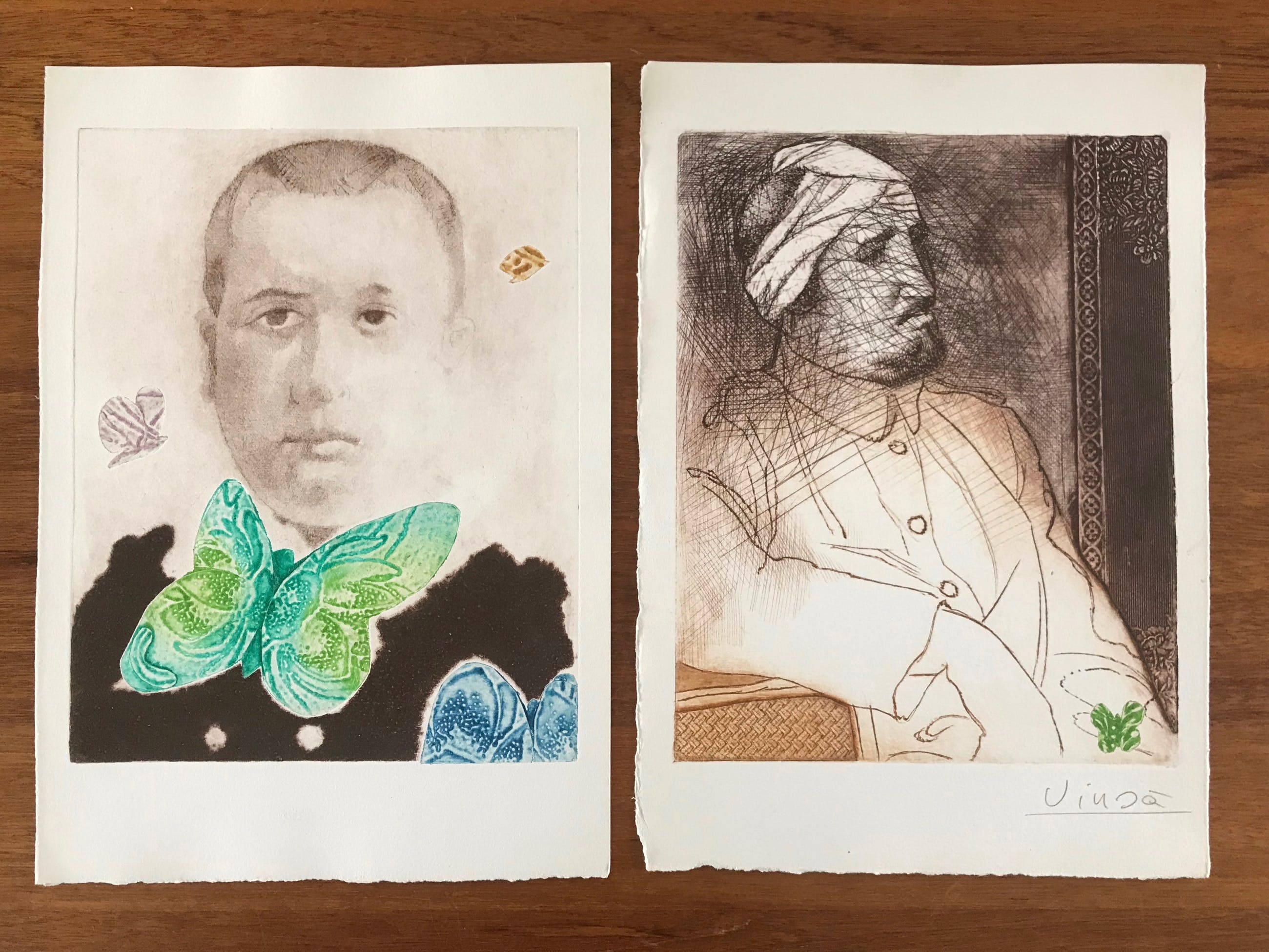 Deze werken zijn nooit ingelijst geweest, ze verkeren in een mooie nette staat.