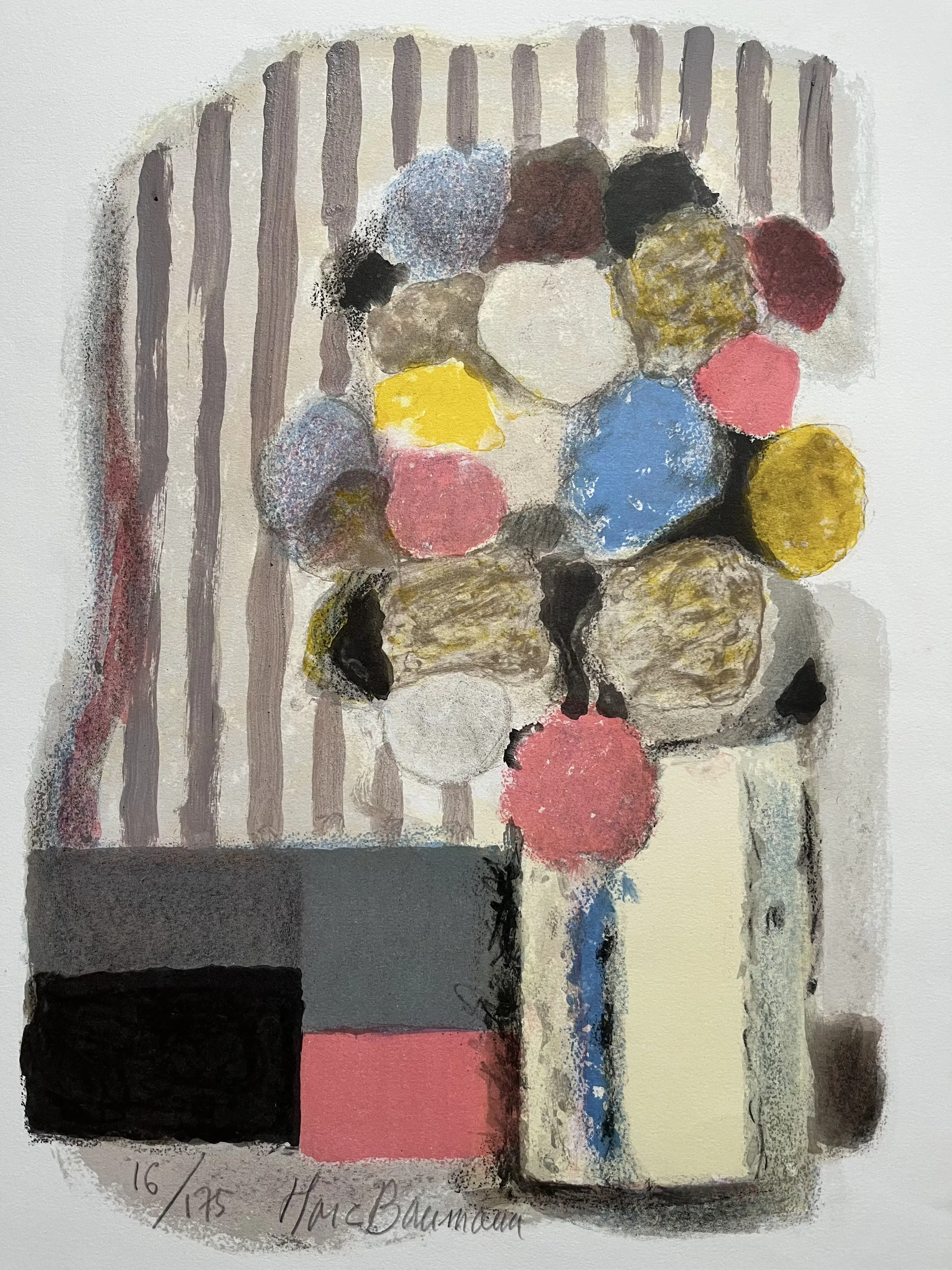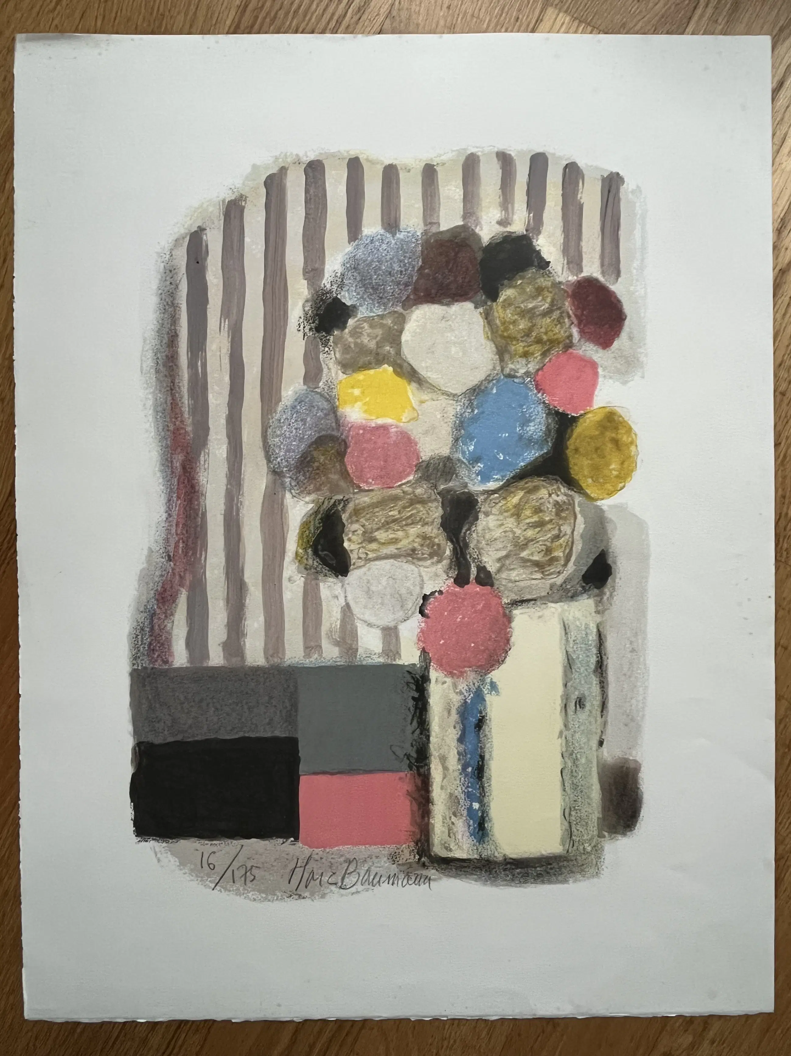Fraai grafiekblad waarop een modern bloemstilleven. Helaas heeft het blad op de randen bruine vlakjes (detailfoto) Afmeting blad 65 x 49,5 cm.