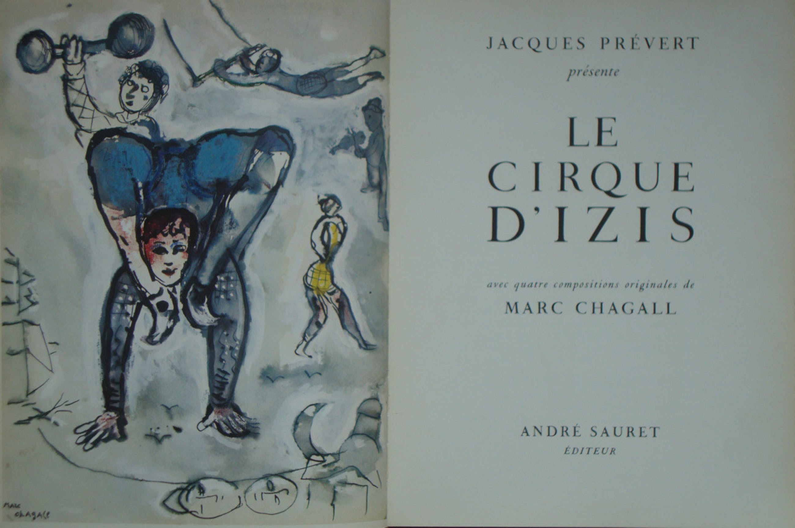 Le Cirque d'Izis. Prachtig boek met 80 foto's van Izis Bidermanas in het zwart-wit. Aangevuld met 4 prachtige litho's van Marc Chagall. Chagall gaf aan erg tevreden te zijn over het resultaat van deze litho's. Begrijpelijk, want poezie en kleur spatten van het werk af.