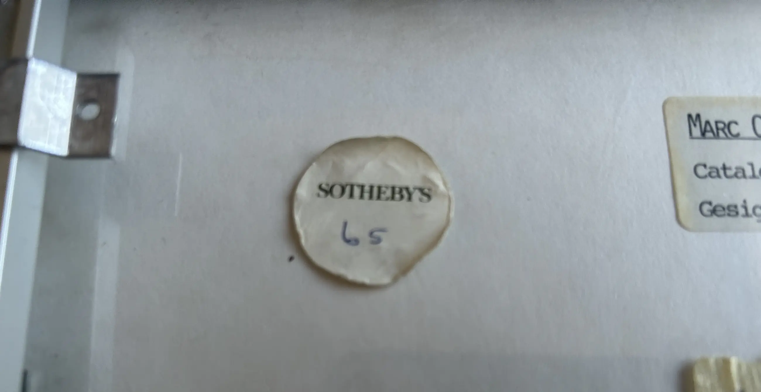 Prachtig in diepe metalen lijst geplaatst met glas aan de voorzijde en plexiglas aan de achterzijde zodat de herkomststickers (Sotheby’s) goed zichtbaar zijn.