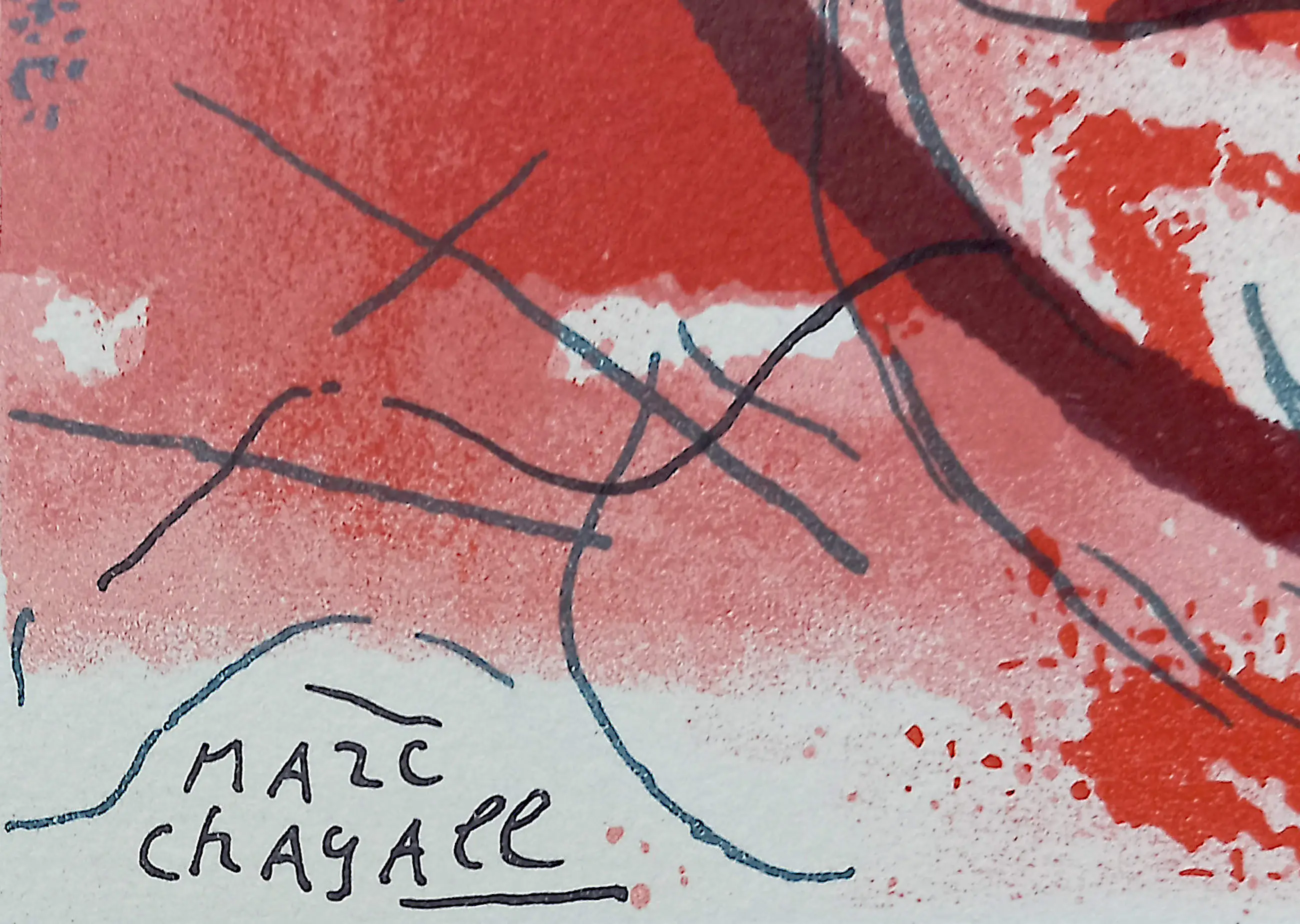 Mooie, karakteristieke litho van Marc Chagall uitgegeven bij het boek “Lettre a mon peintre Raoul Dufy” uit 1965. Litho op papier, in de steen gesigneerd linksonder. In mooie lijst, achter museumglas en met smetteloos, zuurvrij passe-partout. In zeer goede conditie.