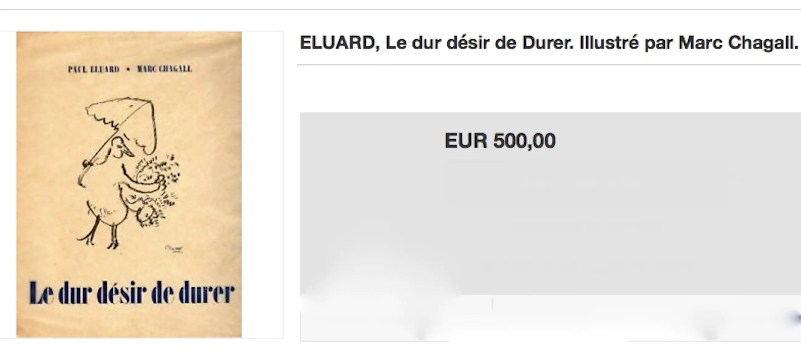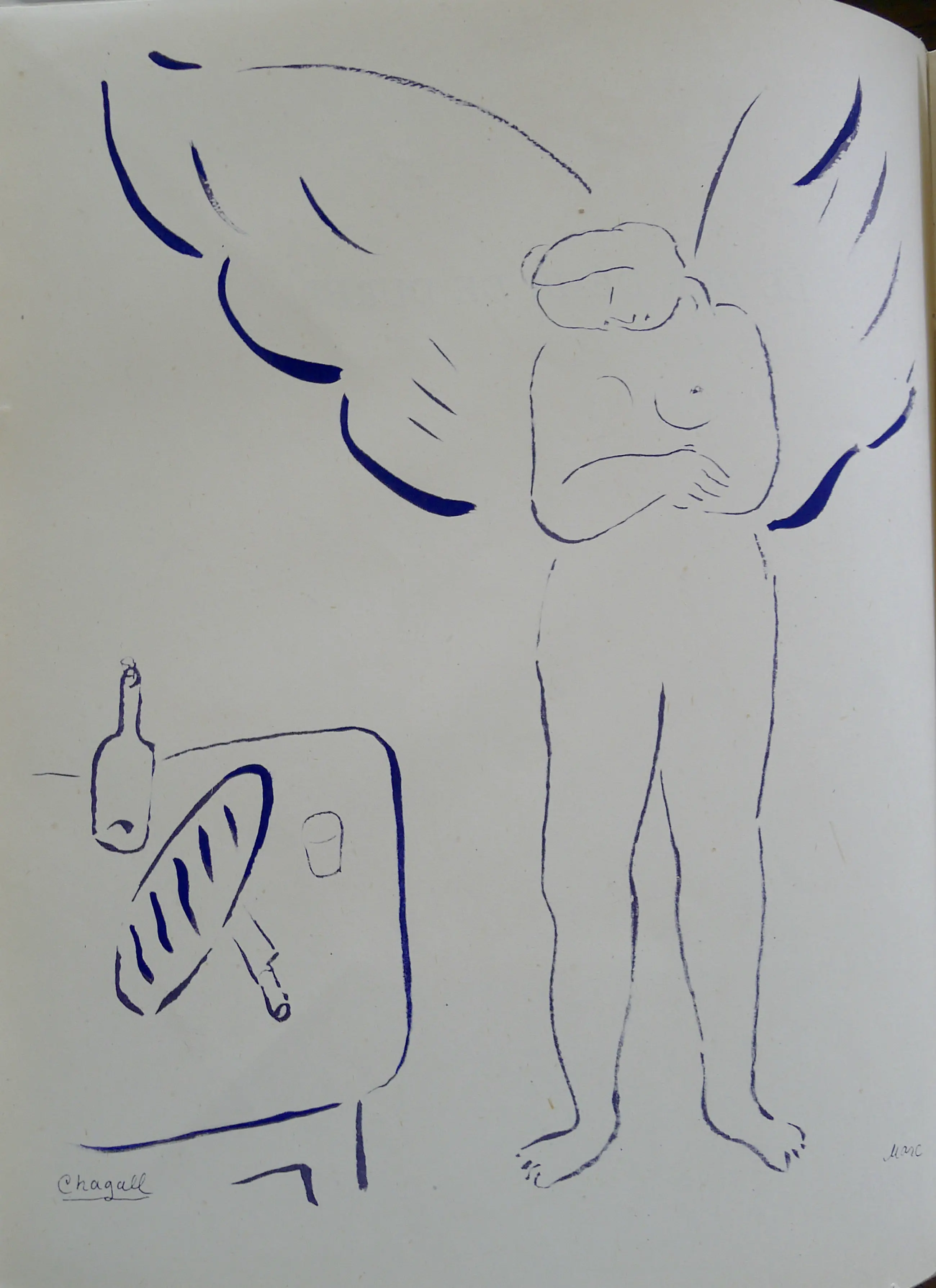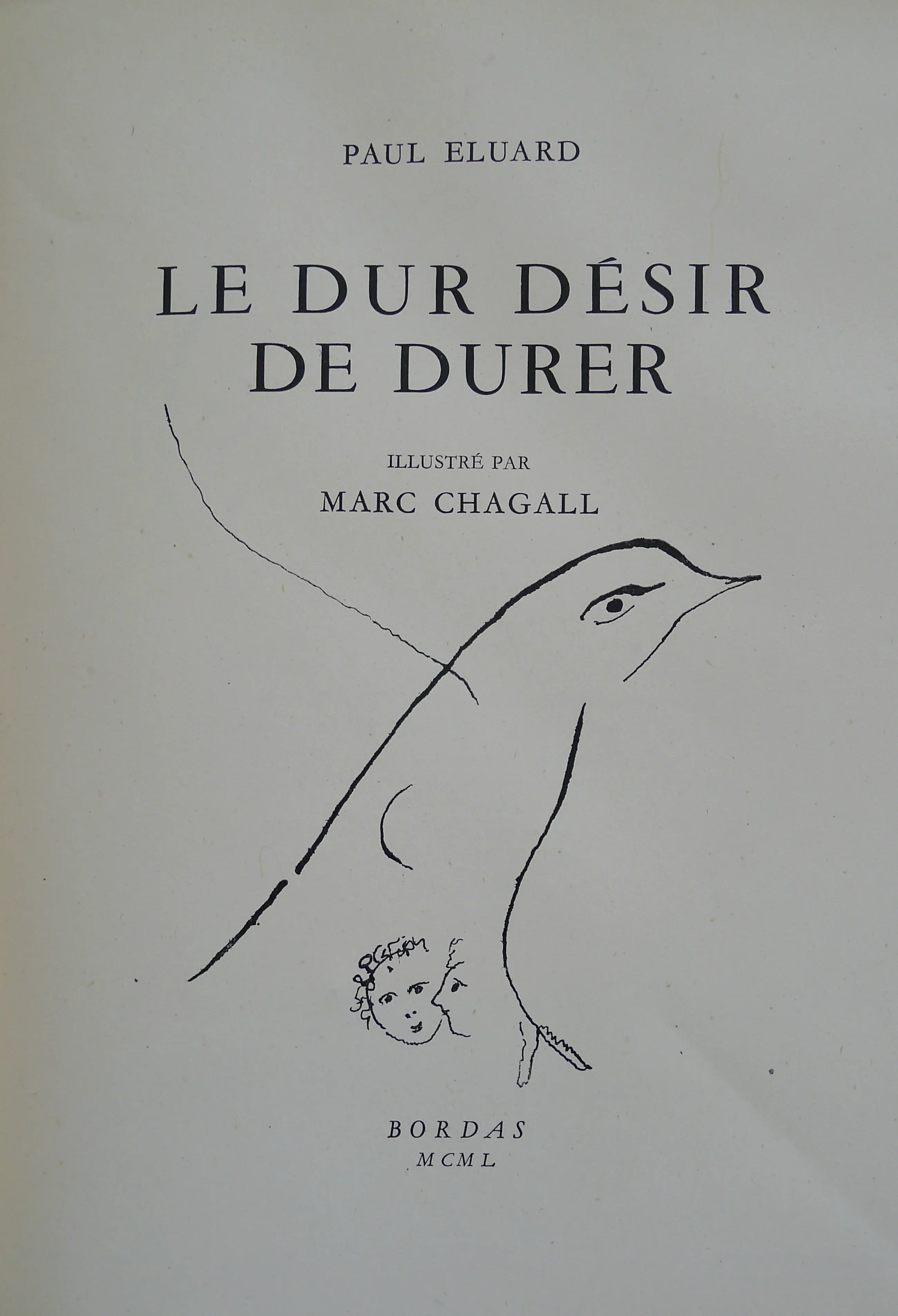 Fraai boekwerk geïllustreerd door Chagall bin een gedicht van Paul Éluard. Extra gekaft met doorzichtig papier. Voor verdere beschrijving zie bijgeleverde foto's.