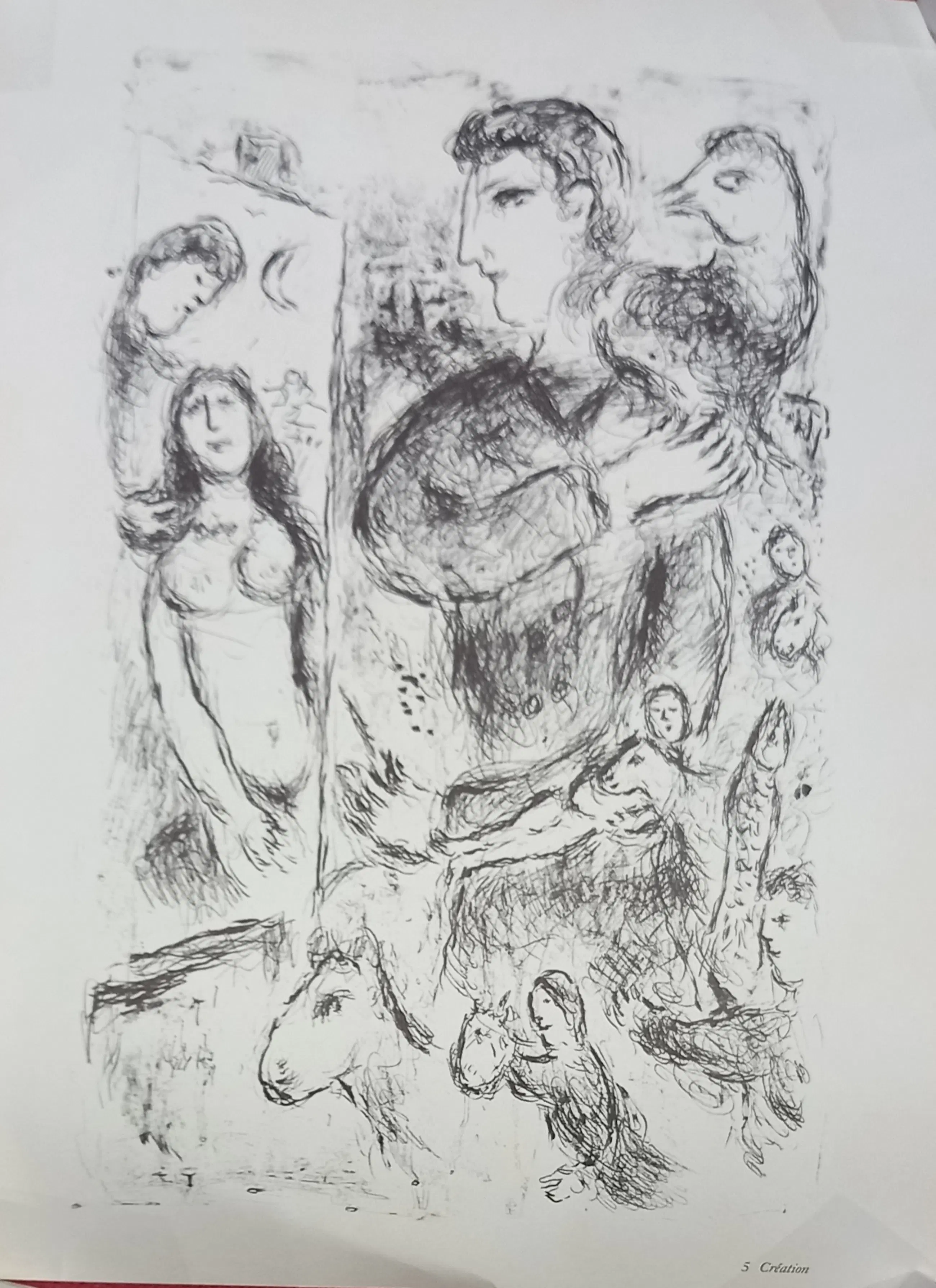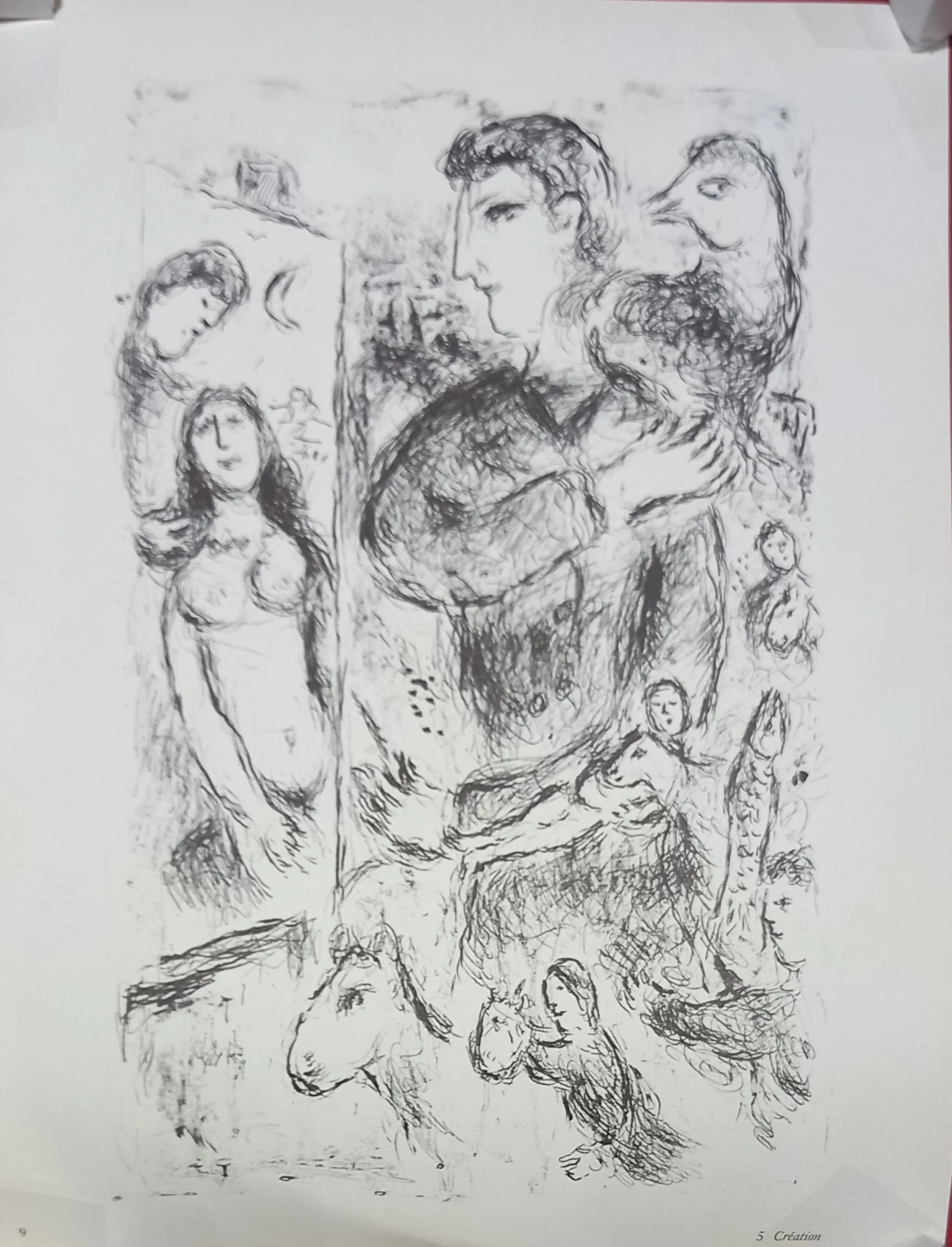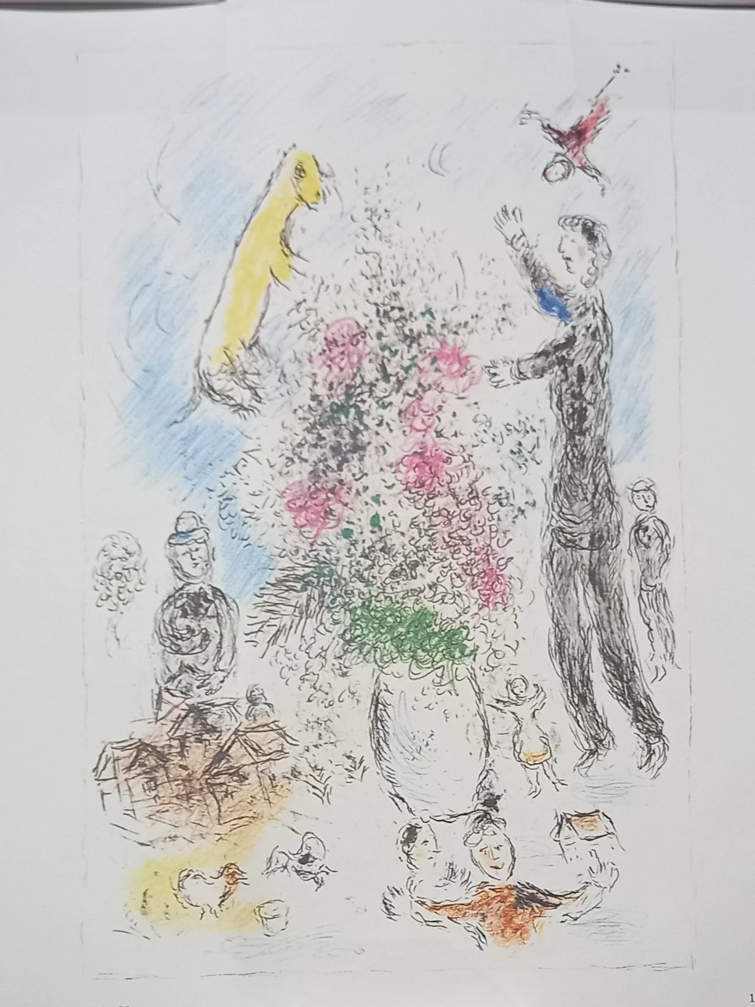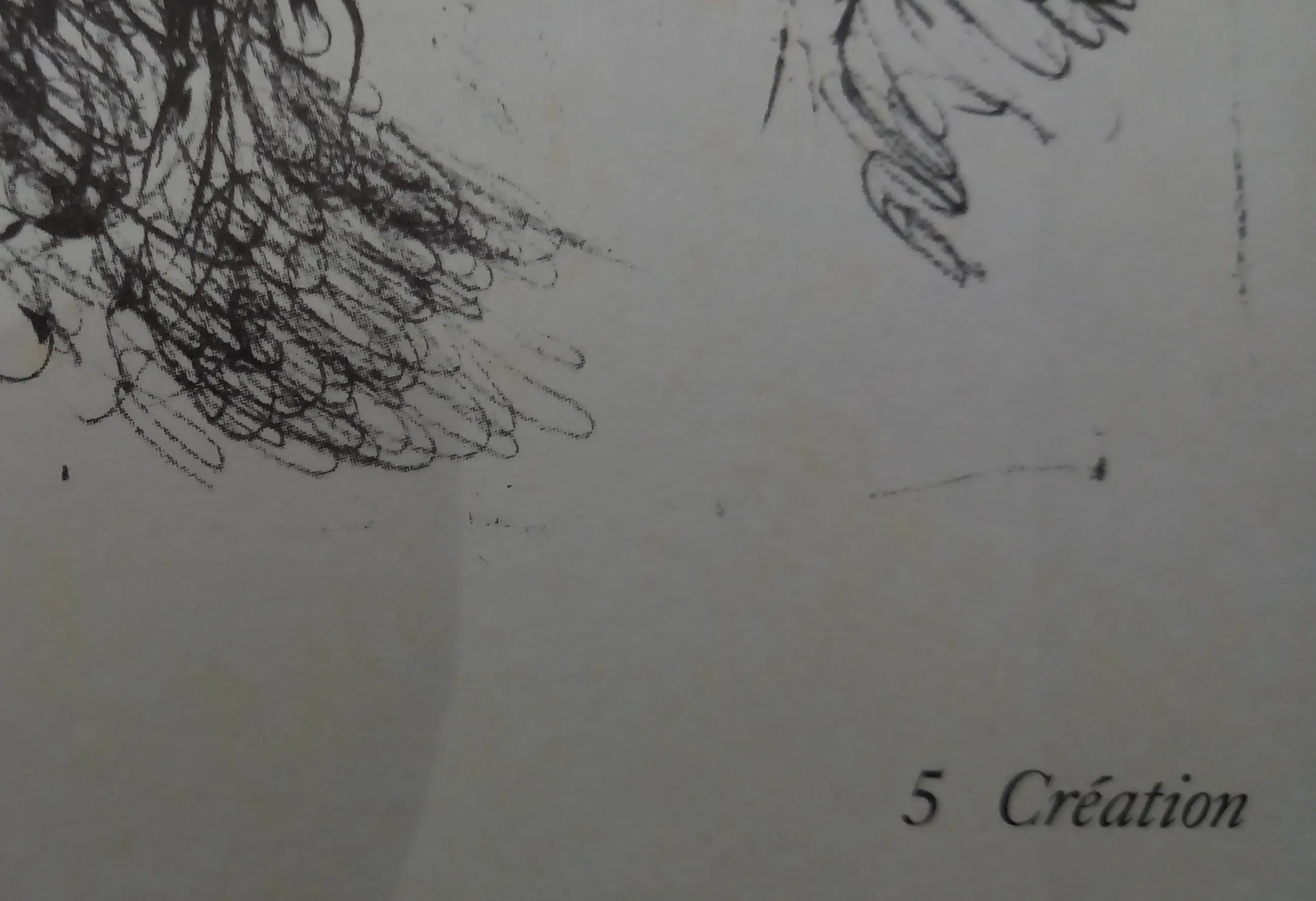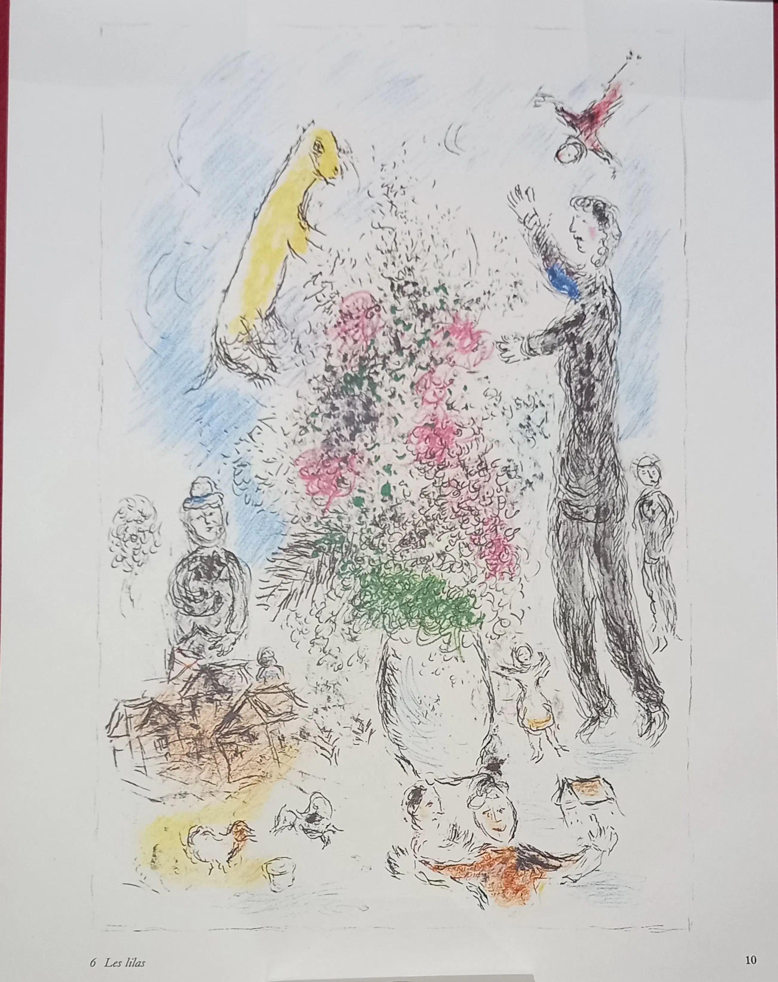 Dubbelzijdig bedrukte litho met "Les Lllas" (de seringen) in kleur en op de achterzijde "Création" in zwart wit.