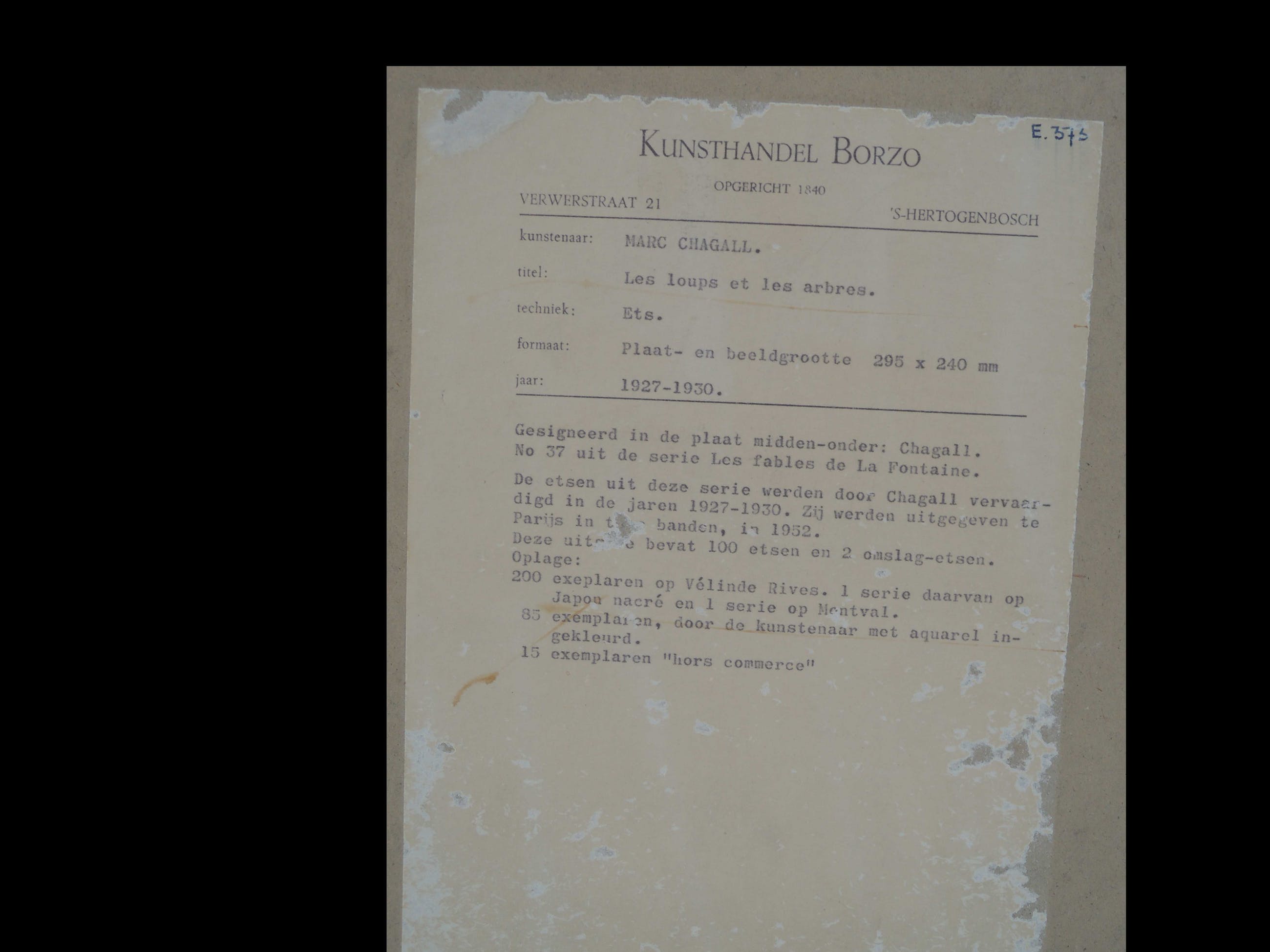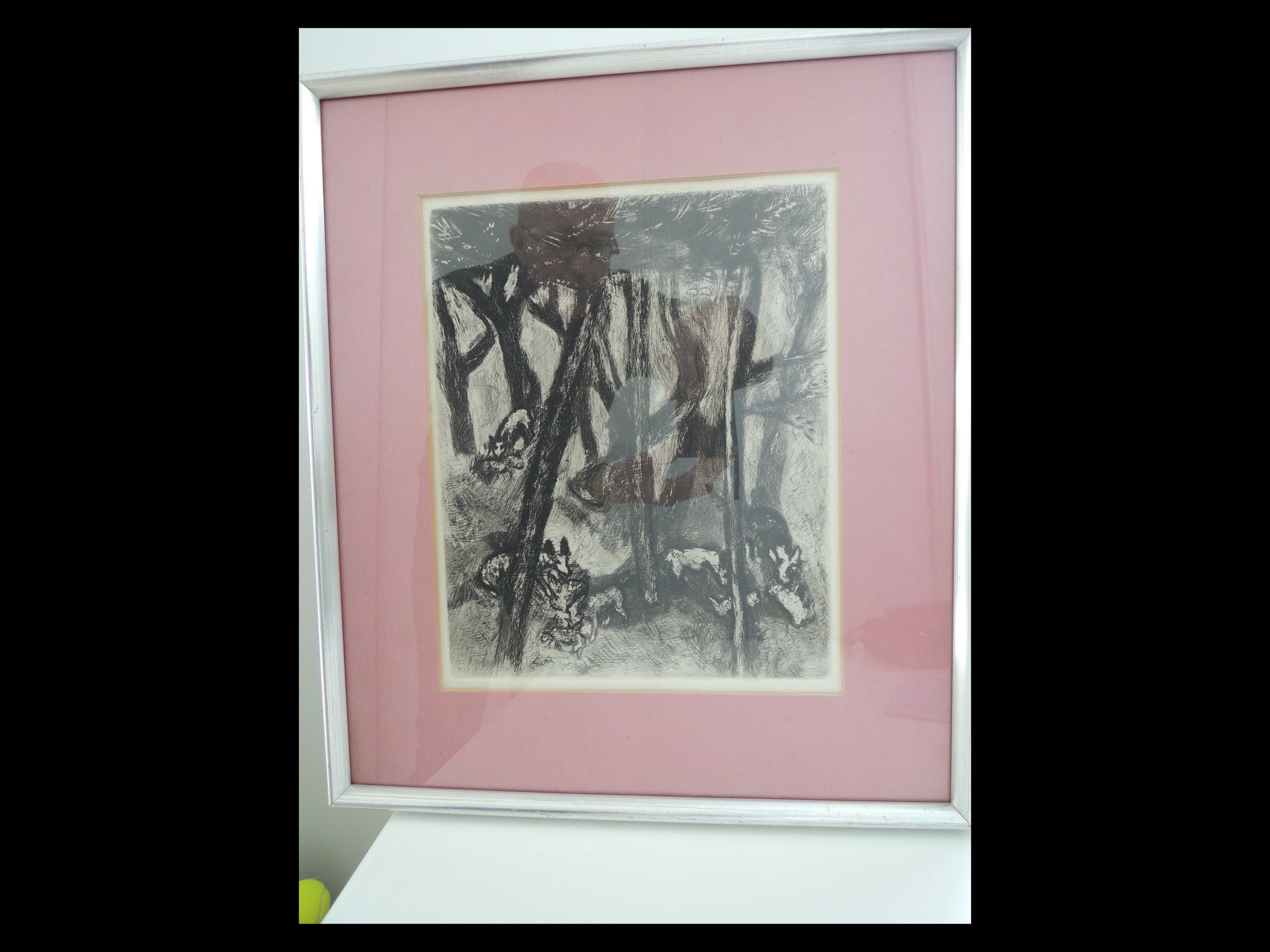 Gesigneerd in plaat midden onder.nr 37 uit de serie les fables de la Fountaine Het betreft een ets. Uit de serie werden door Chagall etsen vervaardigd in de jaren 1927 - 1930.Uitgegeven in Parijs in 1952.