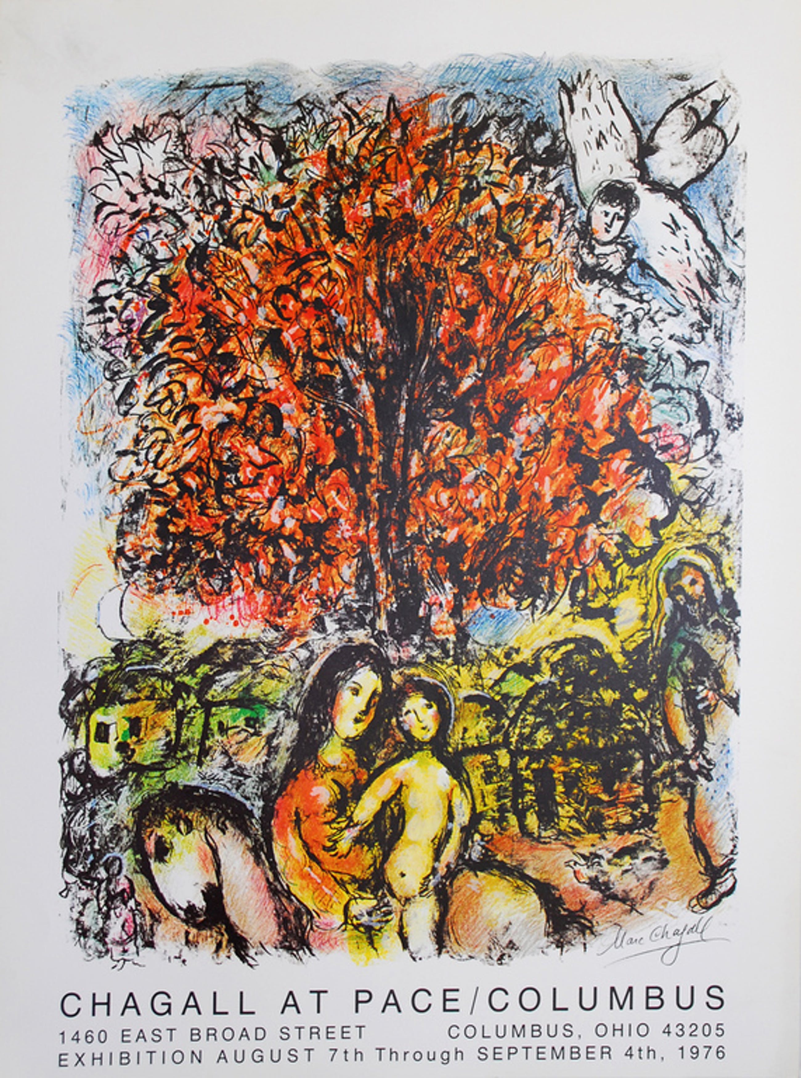 Prachtige lithografie van Marc Chagall. De litho is gemaakt voor een tentoonstelling in Columbus, Ohio (USA) in 1976.
