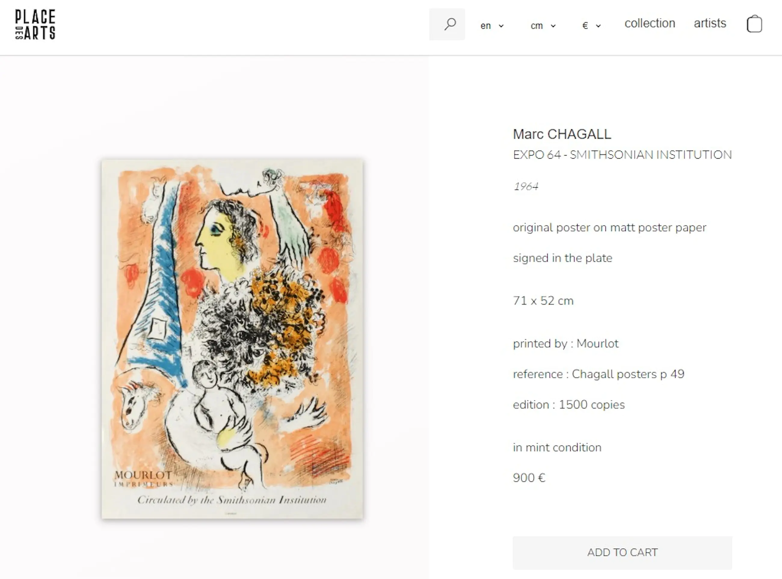 Affiche voor een Smithsonian Institution tentoonstelling met originele grafiek gedrukt door Mourlot Imprimeurs. Litho op papier, gesigneerd in de steen, uitgegeven in een oplage van 1500 stuks. In goede conditie.