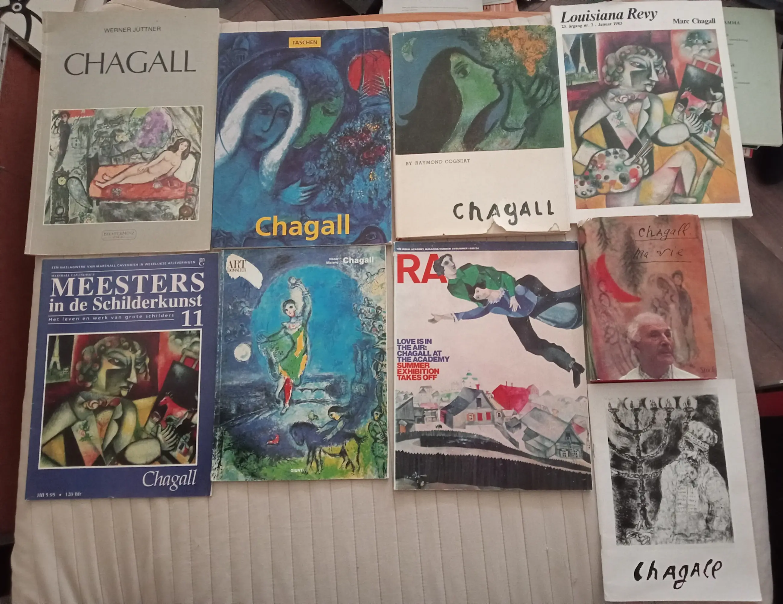 800 pagina's. Marc Chagall bibliotheek. Jaren 1930-2000. O.a. Ma Vie. Synagoge Groningen 1983 Royal AcademyMeeters in de schilderkunst Art Dossier Taschen Louisiana Revy Raymond Cogniat