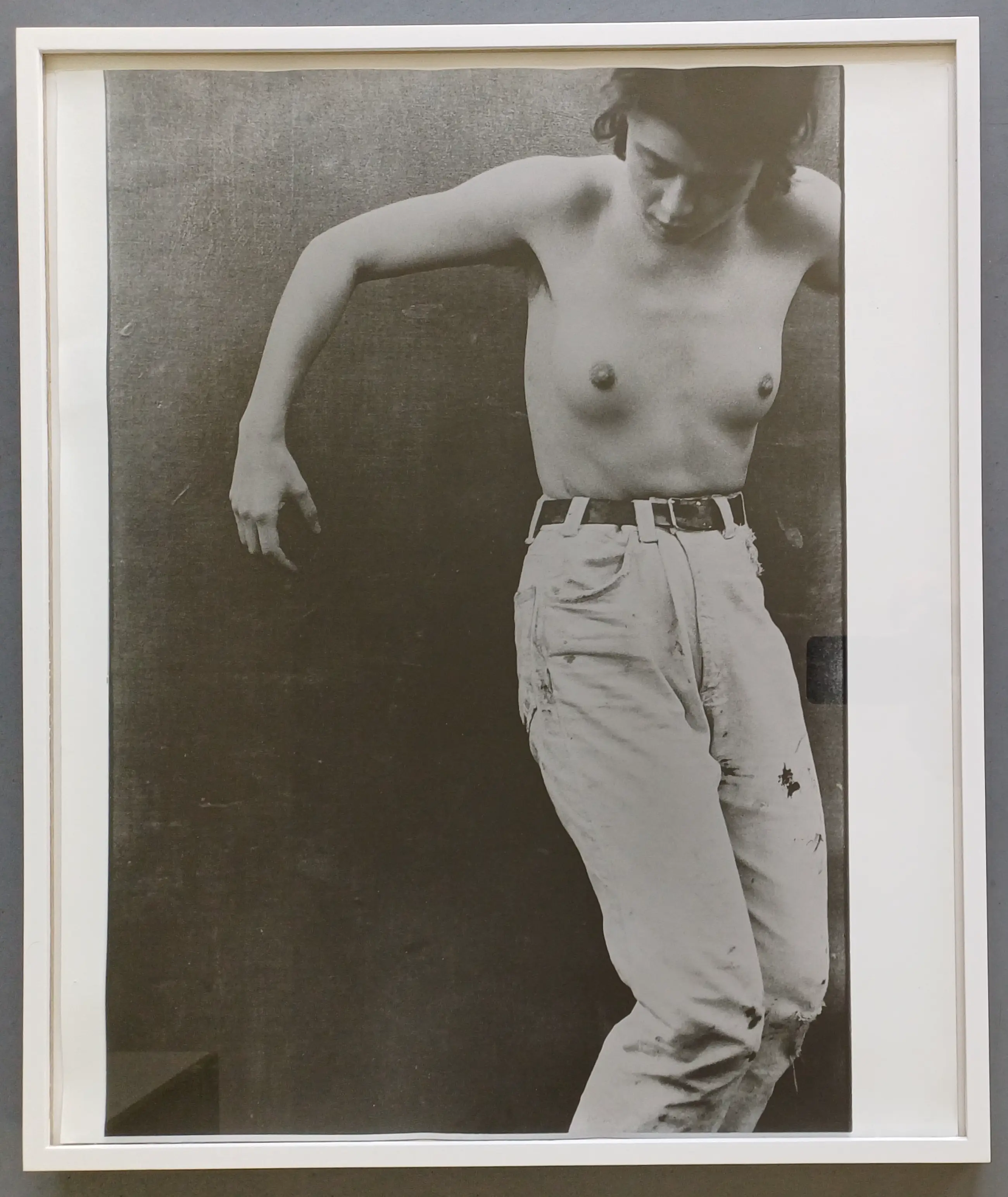 Foto van Marc Mulders (1958) van vrouw met ontbloot bovenlijf. Op de achterkant is het werk gesigneerd en met oplage 3-IV. Afmeting witte houten lijst 64 x 54cm. (hxb) Afmeting foto 60 x 42cm. (hxb) De foto en lijst zijn in goede conditie.