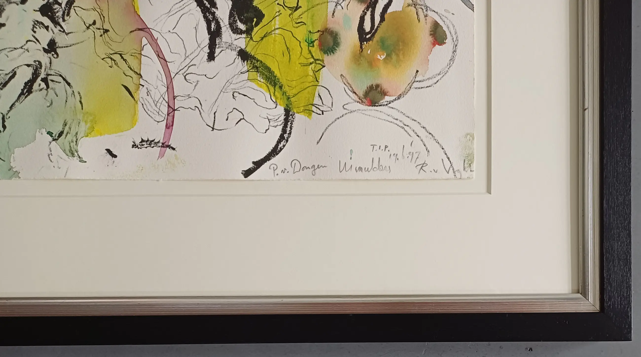 Ingelijste litho met aquarel van Marc Mulders, Reinhoud van Vught en Paul van Dongen (T.I.P.) Het werk is rechts gesigneerd met potlood door 3 de kunstenaars en gedateerd 1997 Afmeting werk 67 x 45 cm (hxb) Afmeting lijst 89.5 x 66.5 cm. (hxb) Het werk is mooi ingelijst en in prima staat.