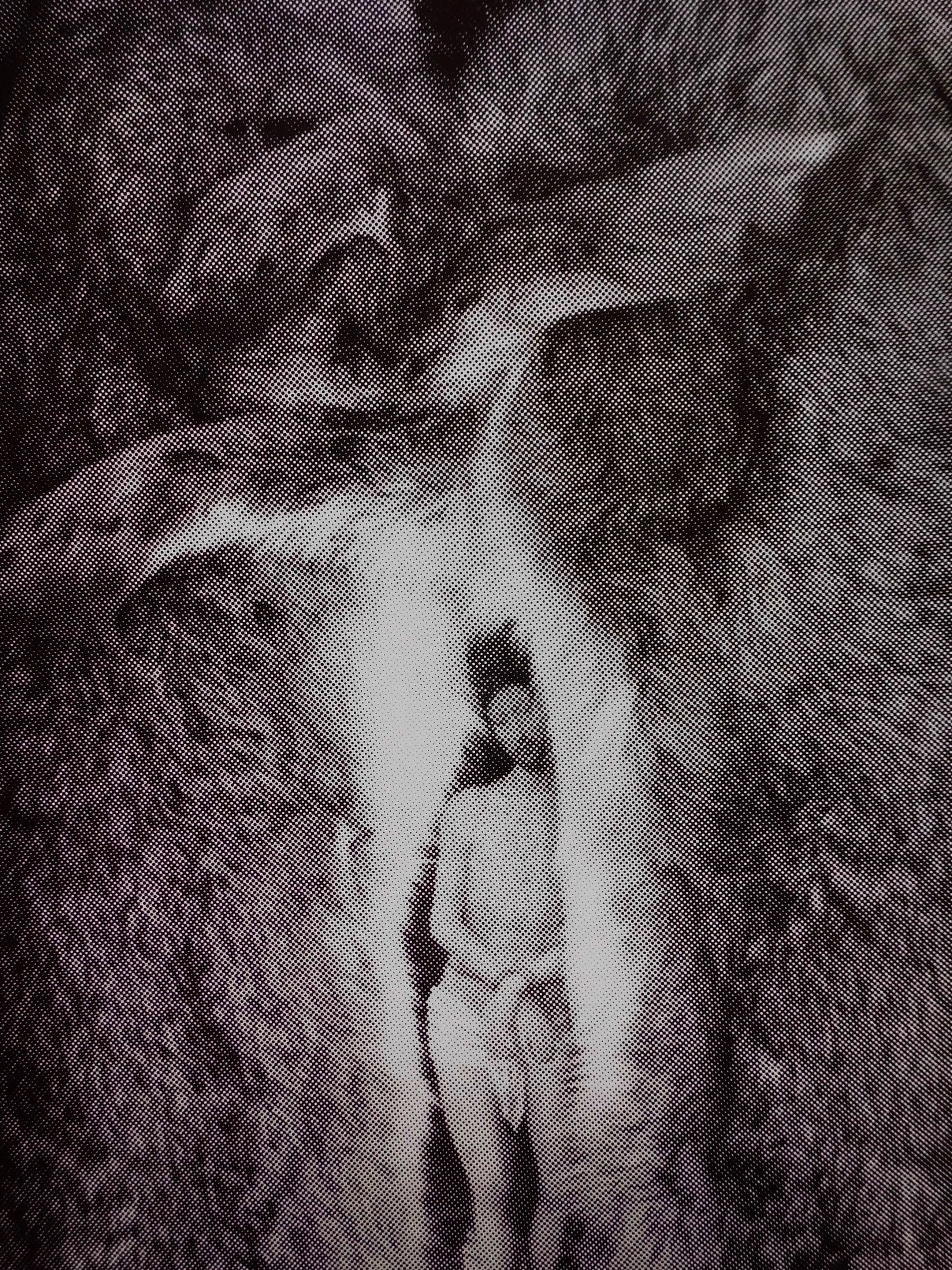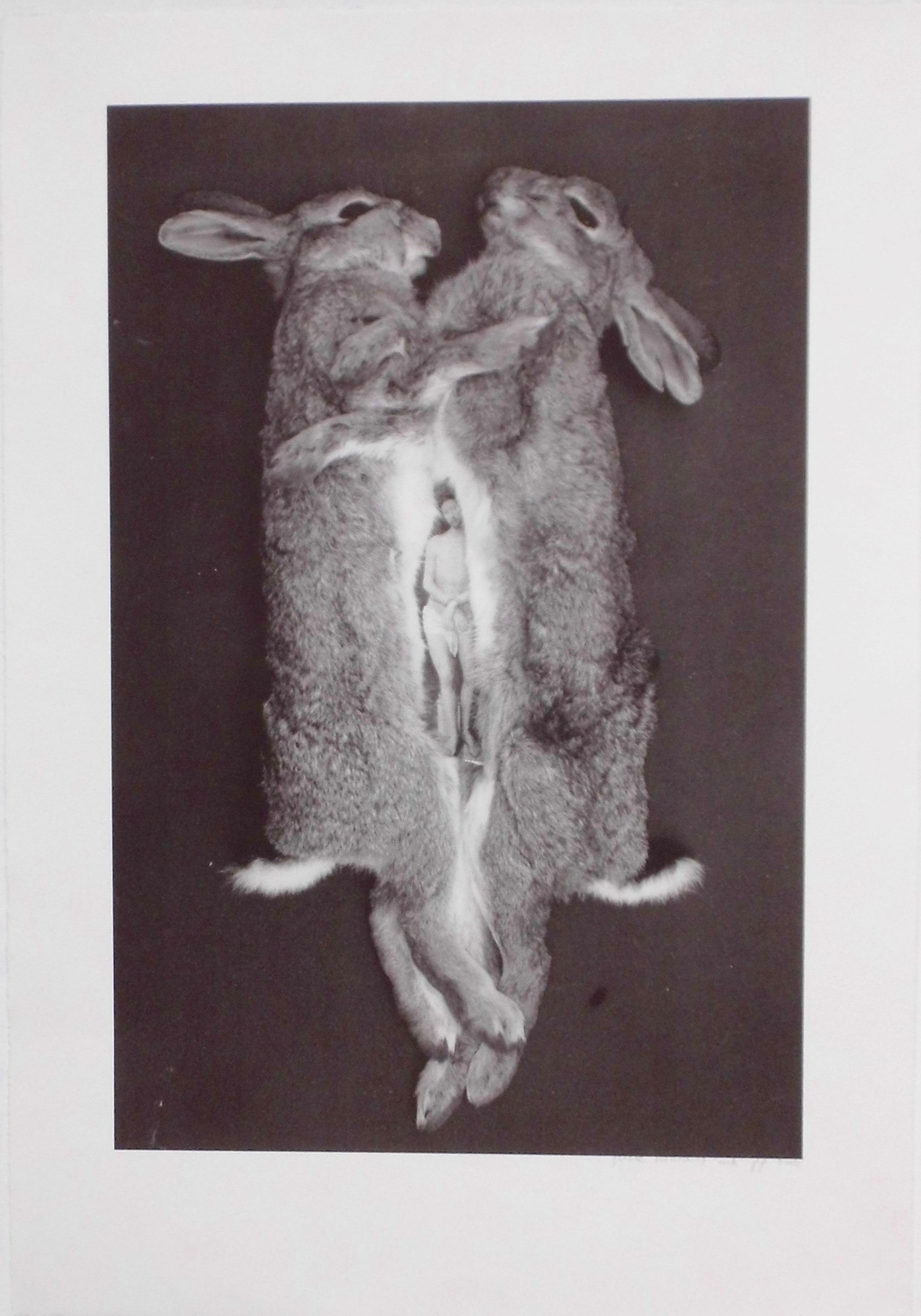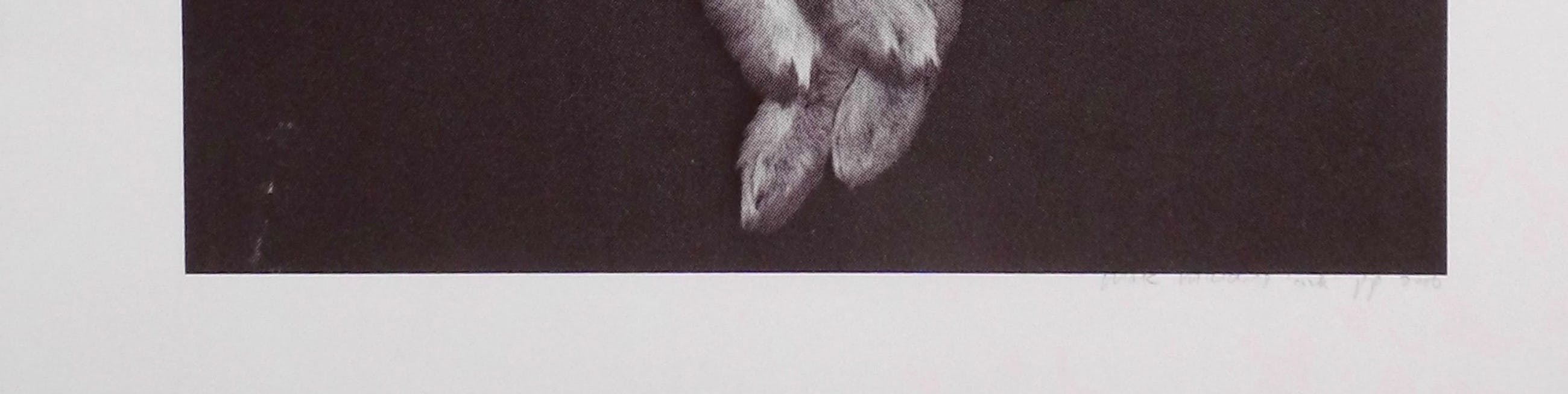 Zeefdruk in zwart-wit van de bekende kunstenaar Marc Mulders waarin hij via de verbeelding van zachtheid (de vacht van konijnen) de bescherming van het Geloof symboliseert.