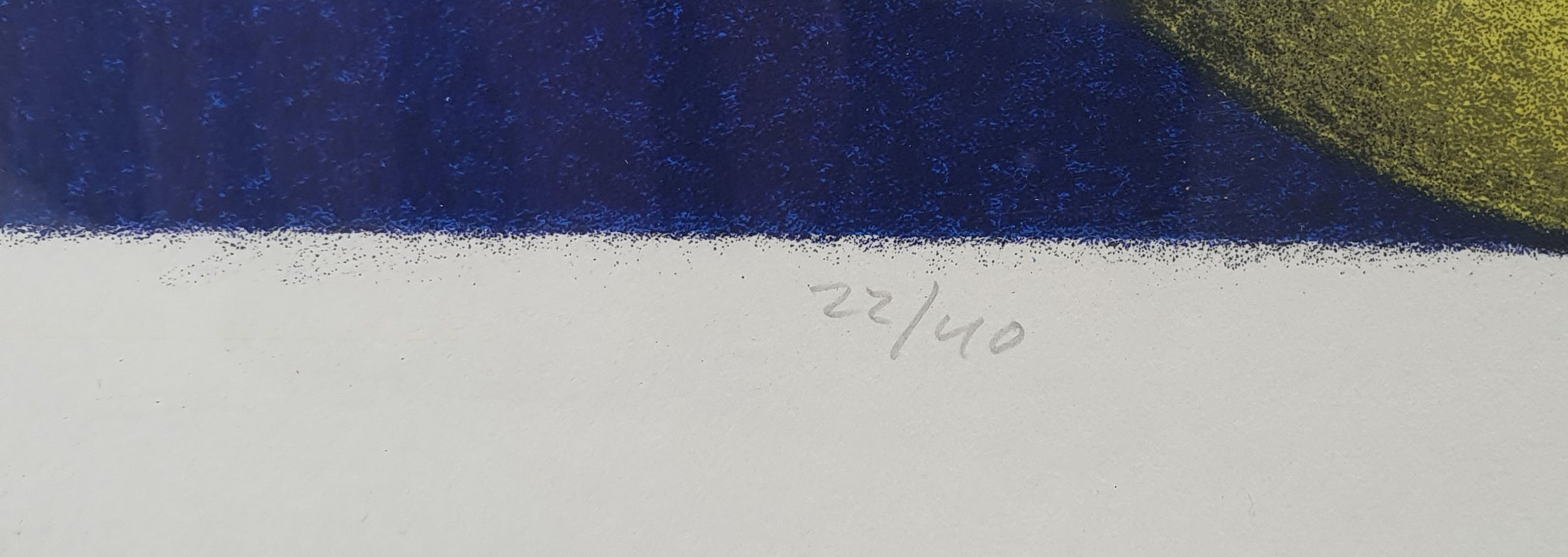 Kunstenaar: Marc Ruygrok Techniek: Zeefdruk Oplage: 22/40 Gesigneerd: Rechtsonder Afwerking: Ingelijst Afmeting zonder lijst (HxB): 25 x 80 cm Afmeting met lijst (HxB): 55 x 100 cm Conditie werk: Goed Conditie lijst: Gebruikt Referentie: 00874 Provenance: Kunstcollectie Roto Smeets
