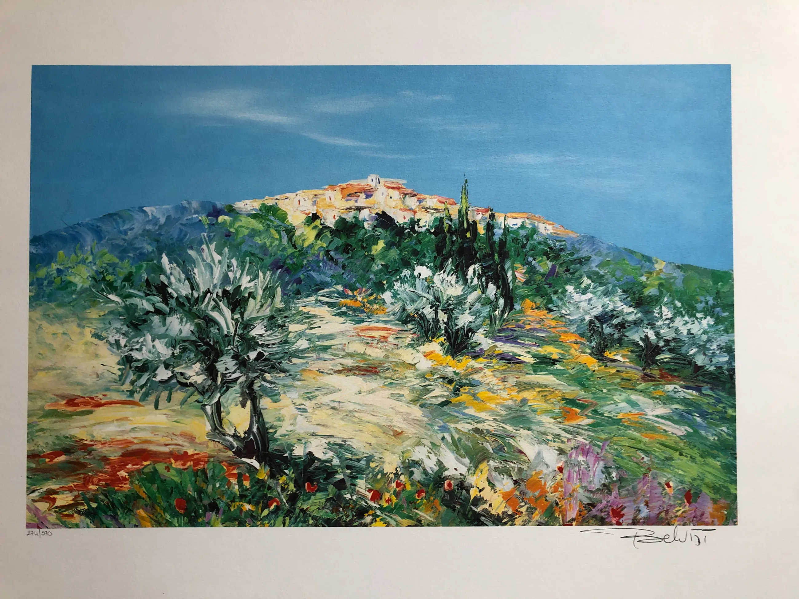 De in 1950 in de Provence geboren kunstenaar Belvisi studeerde schilderkunst in Parijs en specialiseerde zich in lithografie. Zijn handgesigneerde en genummerde kleurenlithografieën kenmerken zich door een impressionistische stijl, een bloeiend landschap en een stralend blauwe hemel. Het verfijnde kleurenpalet weerspiegelt de Zuid-Franse afkomst van de kunstenaar en verleent het werk een lichte, poëtische sfeer.
