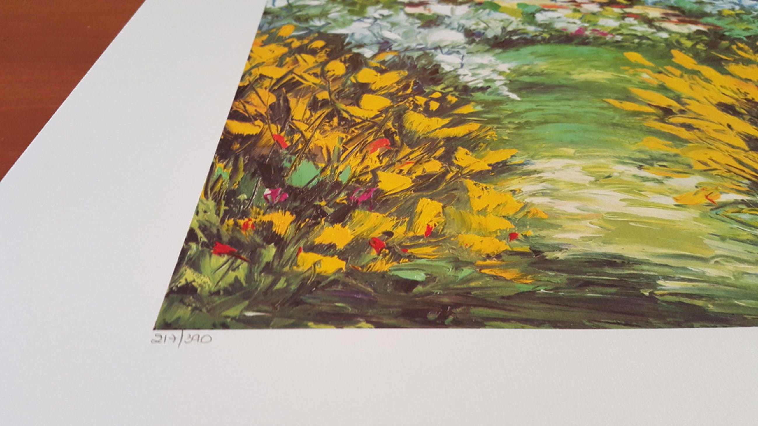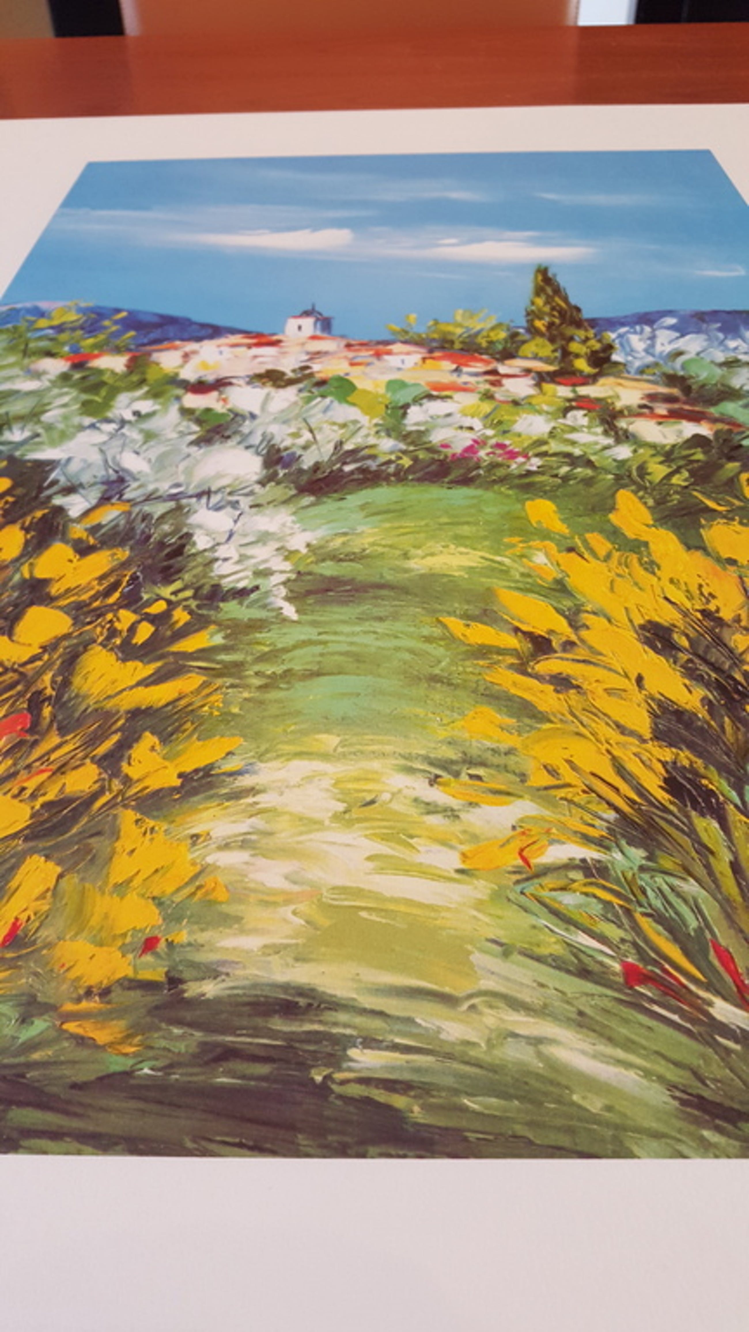 In uitstekende staat, nog nooit ingelijst geweest. Heerlijke zomersfeer in warme kleuren.