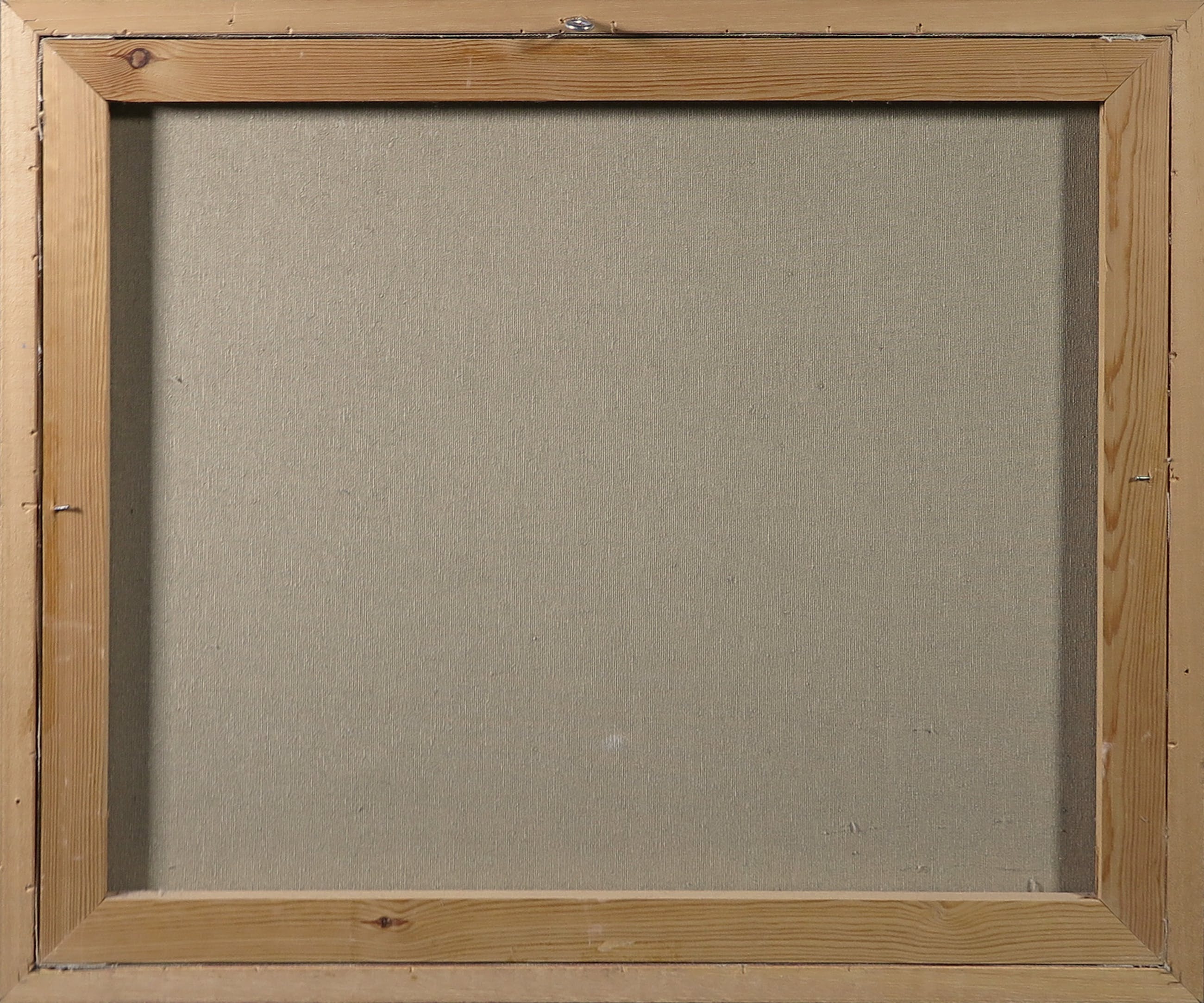 | Het werk heeft hier en daar een licht vlekje op het doek. | |