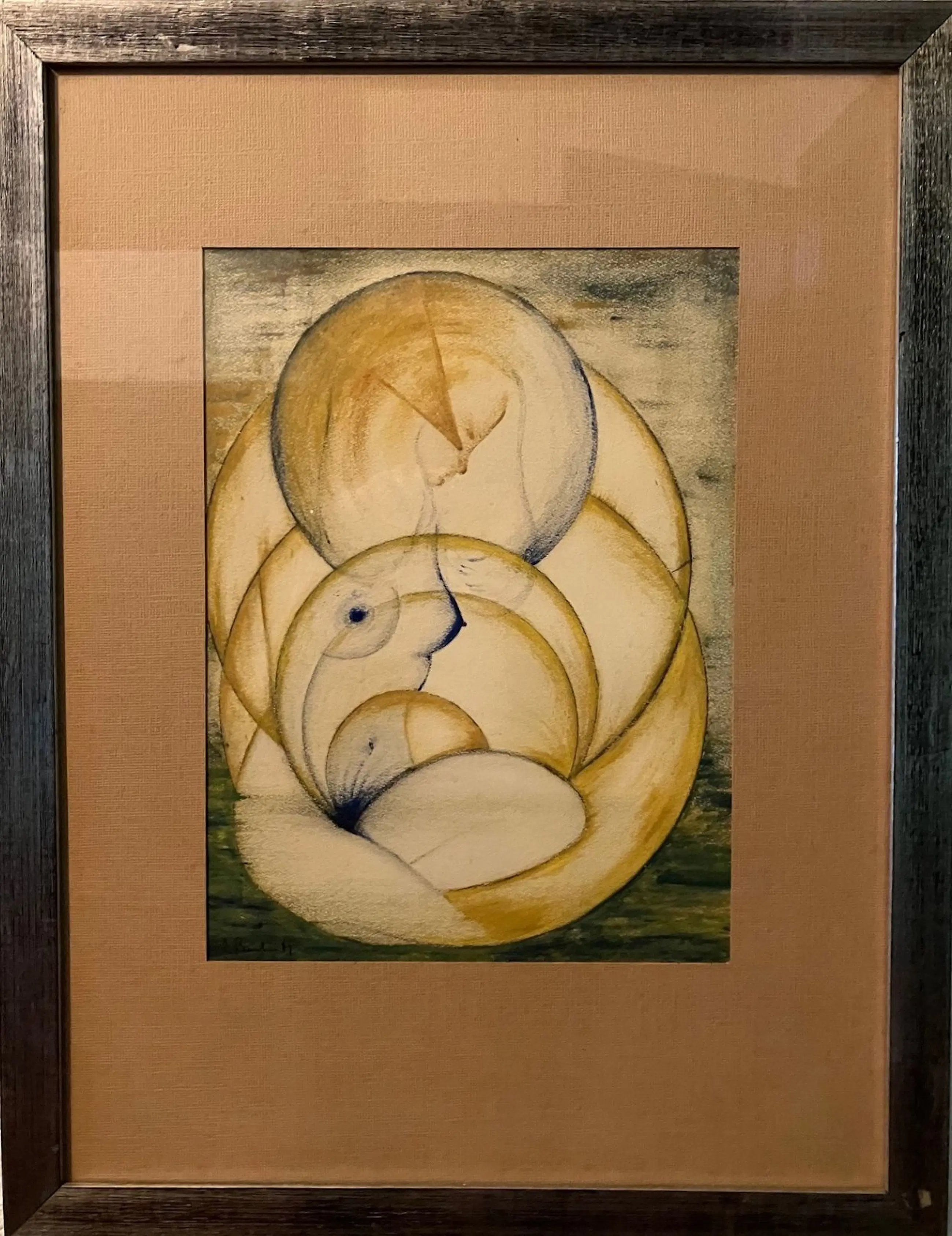 Werk van kunstenaar Marcel De Backer van de kunstkring 'Open Kring' uit Gent. Jarenlang bewaard in de woning van kunstschilder-drukker-uitgever Romain Witdouck (ook oud-voorzitter en bezieler van het André Demedtshuis te Sint-Baafs-Vijve tussen 1983 en 1992)