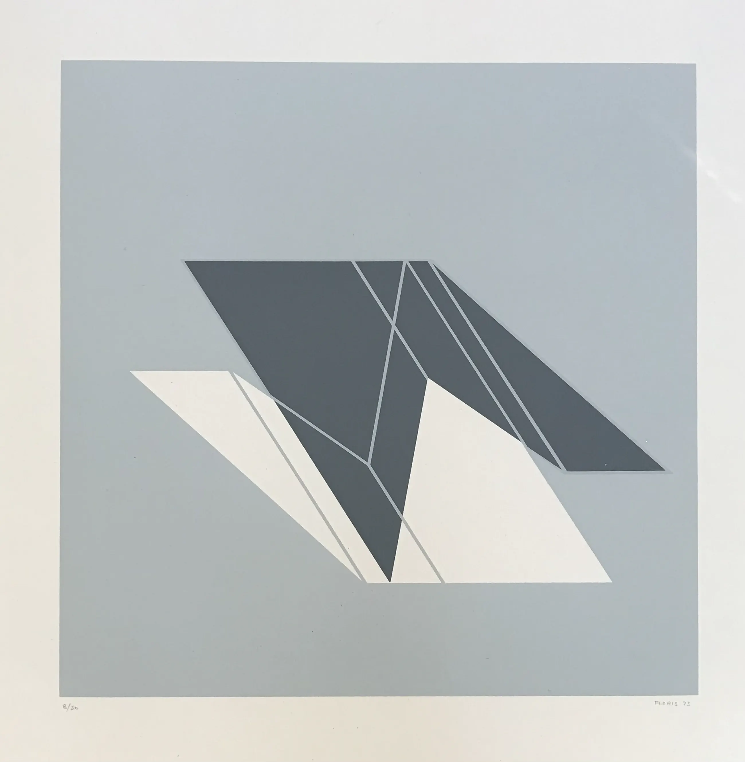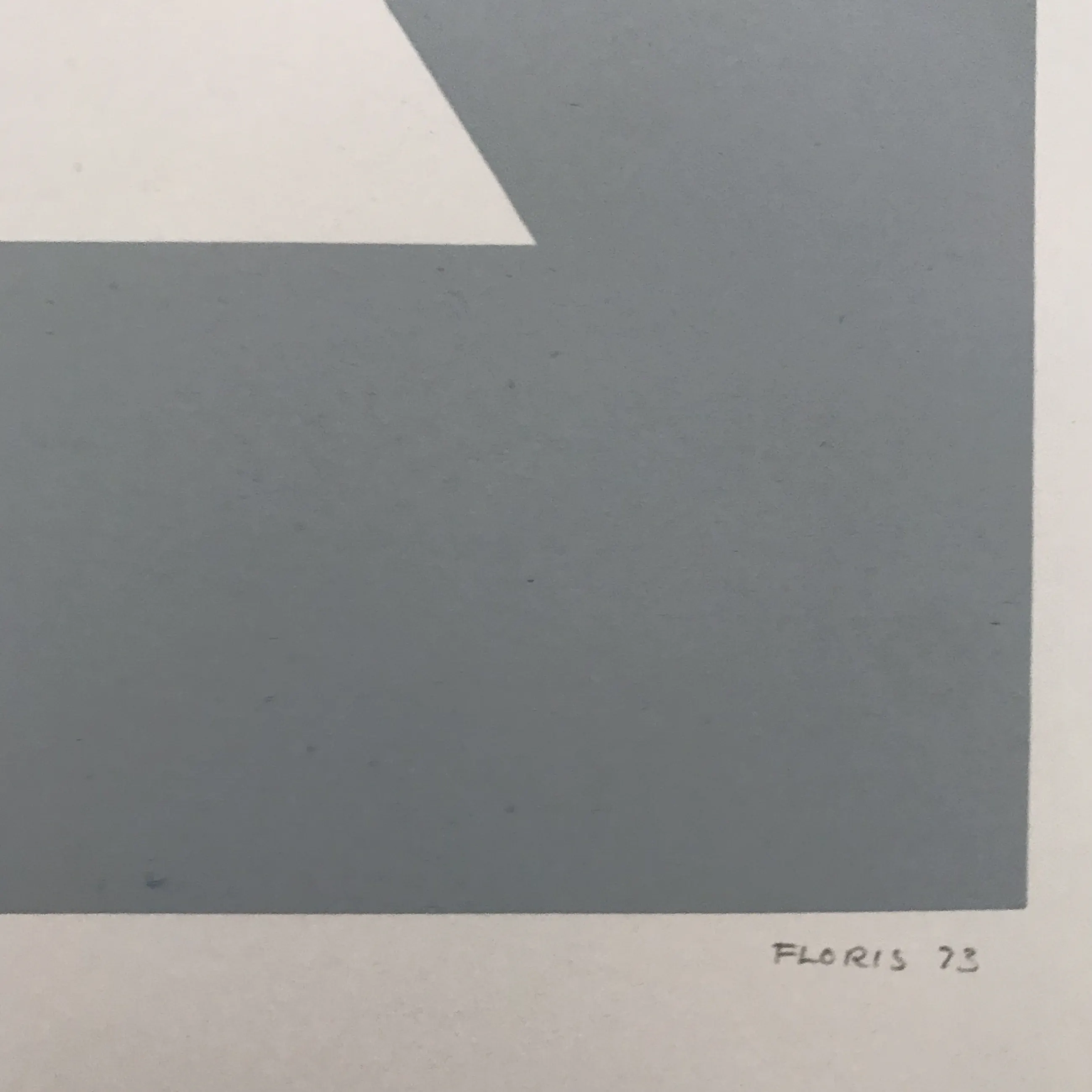 Geometrische compositie Kleurenlitho Jaar: 1973 Gesigneerd, genummerd en gedateerd. Oplage: 8/50 Conditie: in goede staat, minimale gebruikssporen rondom het werk. Afmetingen: 64,0 x 64,0 cm