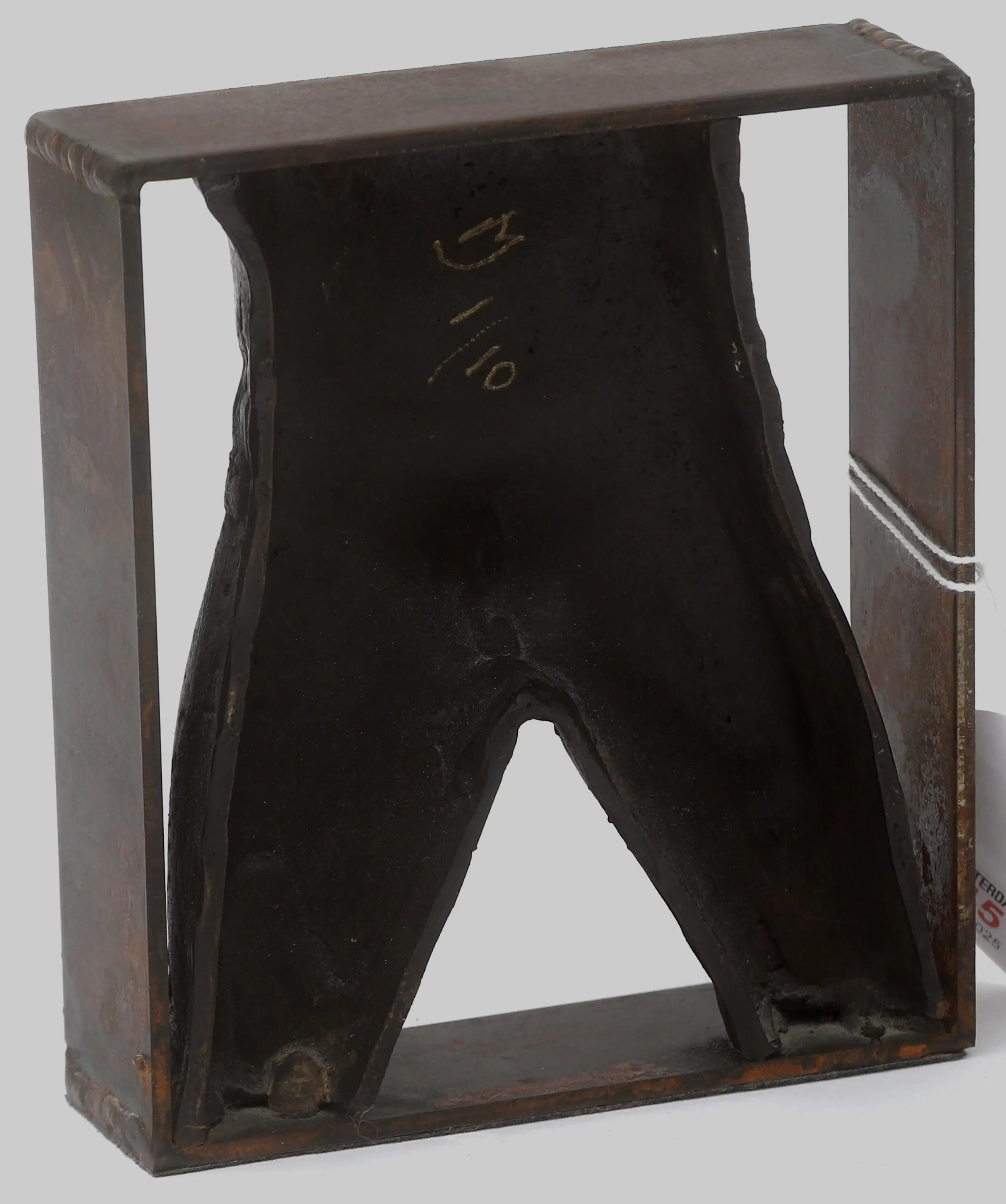 Bronzen beeld van Marcel Joosen. Titel: 'Match box slip B'. Oplage: 1/10. Afmetingen beeld: H14 x b12.5 x d3.5cm. Het beeld is, op de achterzijde, gemonogrammerd door de kunstenaar. De authenticiteit van het aangeboden werk wordt volledig gegarandeerd.