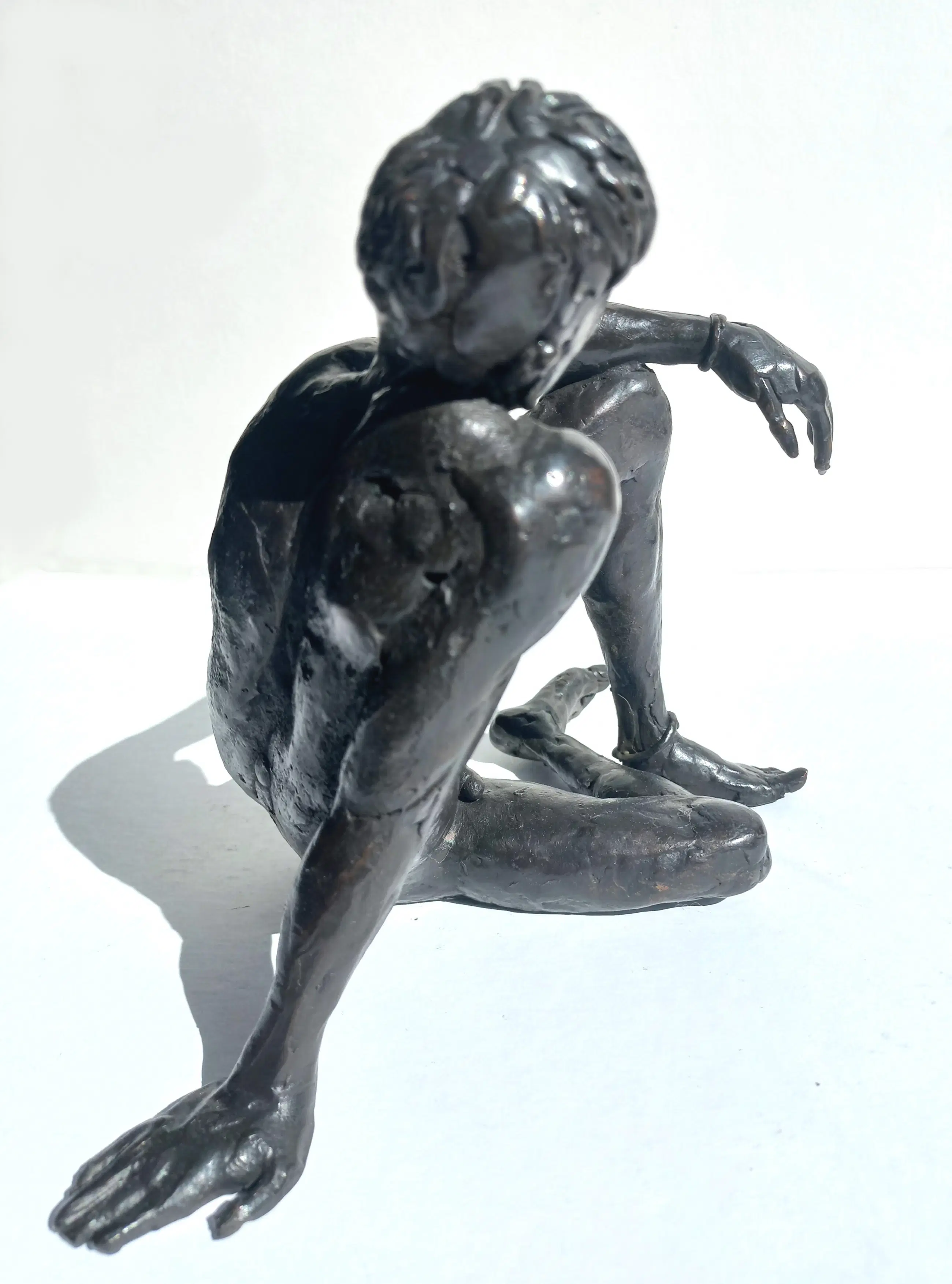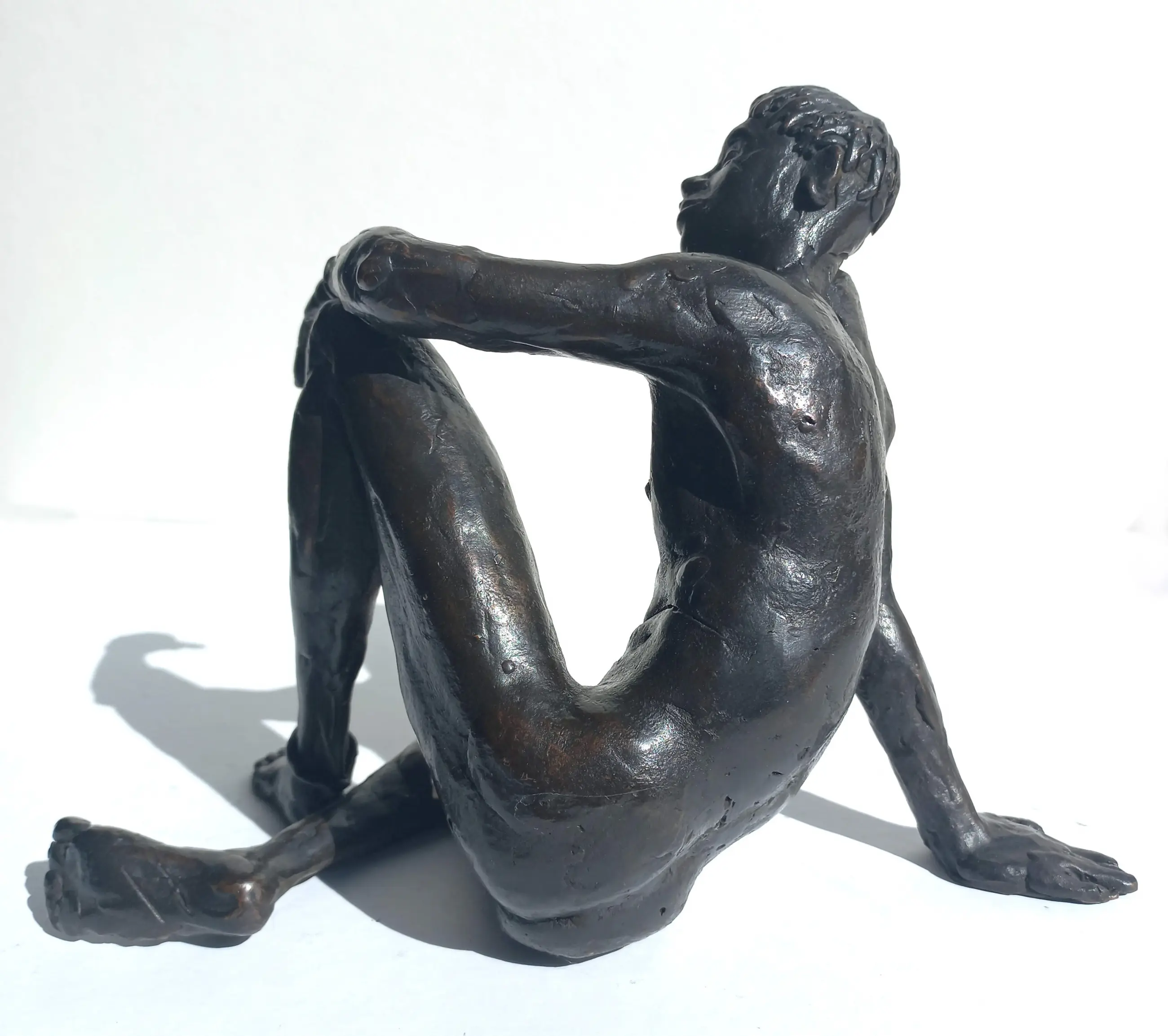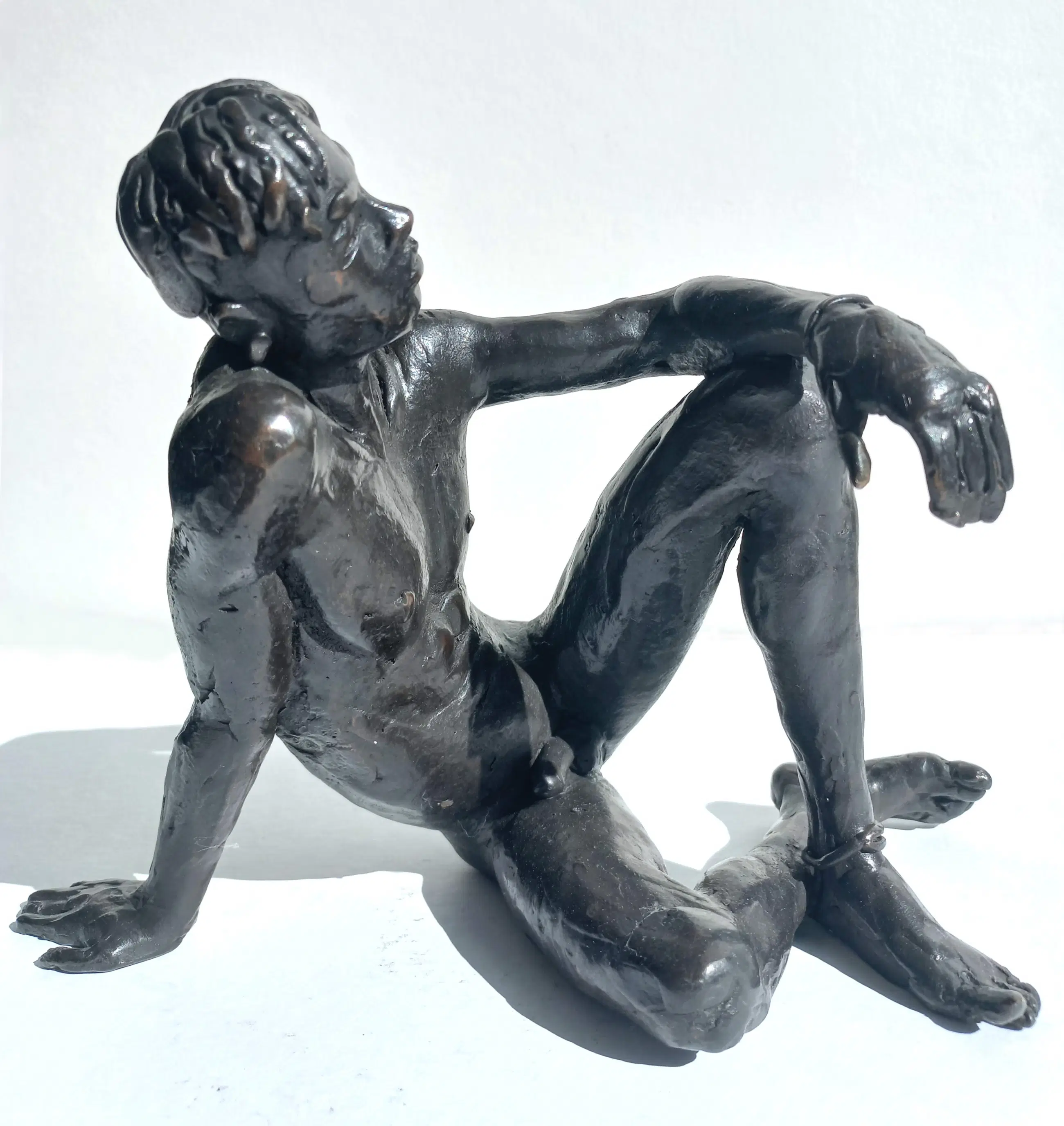 Karakteristiek mannelijk naakt van Marcel Joosen, door velen beschouwd als de beste Nederlandse beeldhouwer van mannelijk naakt. Massief bronzen beeld, op de bil gemonogrammeerd, genummerd (I/I) en gedateerd (’04). Geschat gewicht: ongeveer 5 kg. In uitstekende conditie.