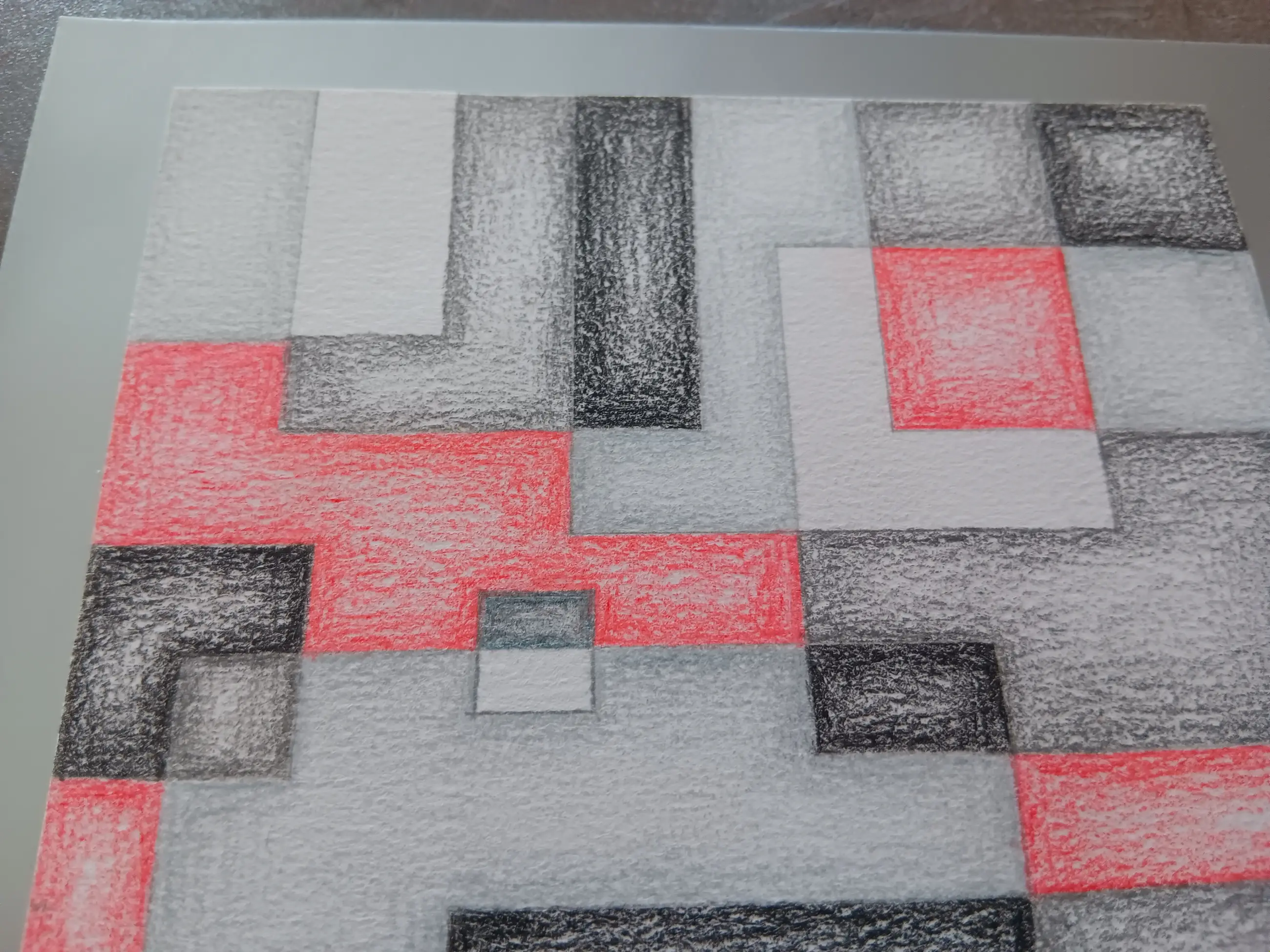Potlood en kleurpotlood op gestructureerd tekenpapier