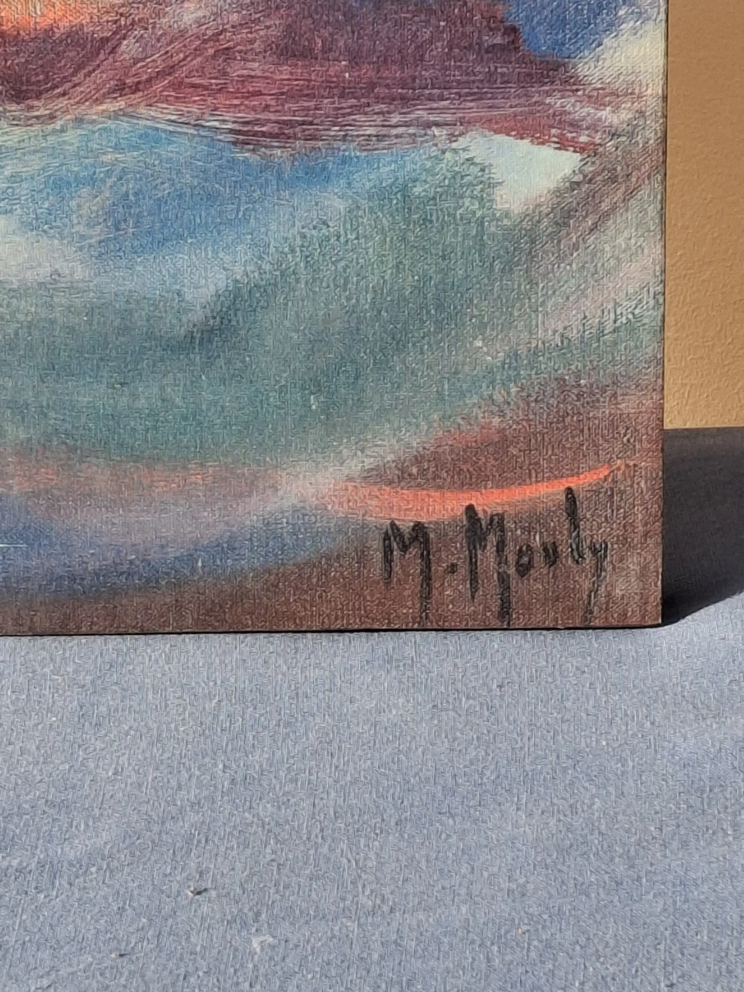 Toont zeilschip in volle zee. Gevecht tegen de elementen. Krachtig geschilderd en veelkleurig. Lichte beschadiging rechtsboven en in de donkere wolk aan de rechterkant. (Zie foto's)