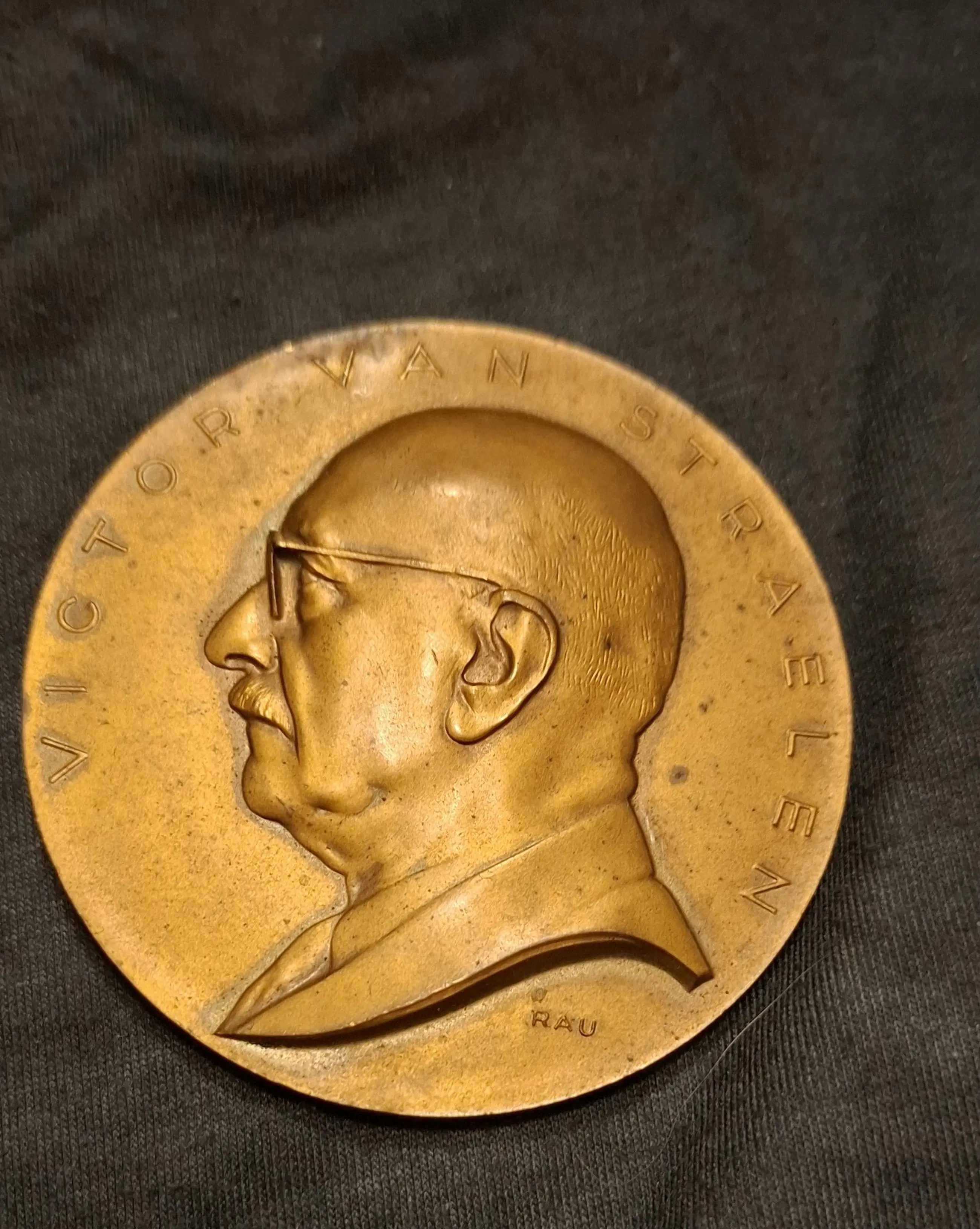 Belgische Congo-leeuw VICTOR STRAELEN Geoloog Paleontoloog brons 69 mm van Rau Taxatie. Word goed verpakt en verzekerd verzonden met track en trace .