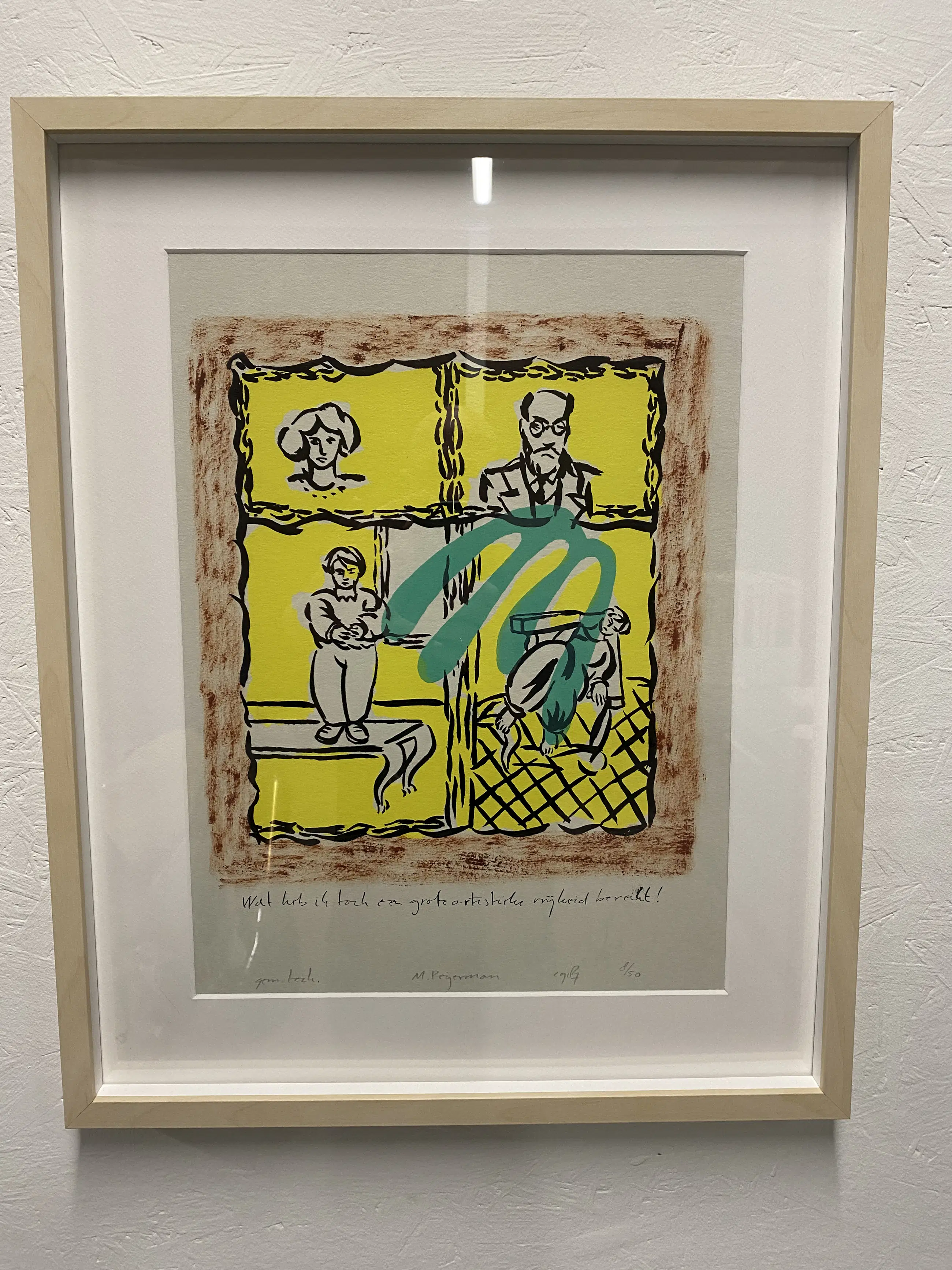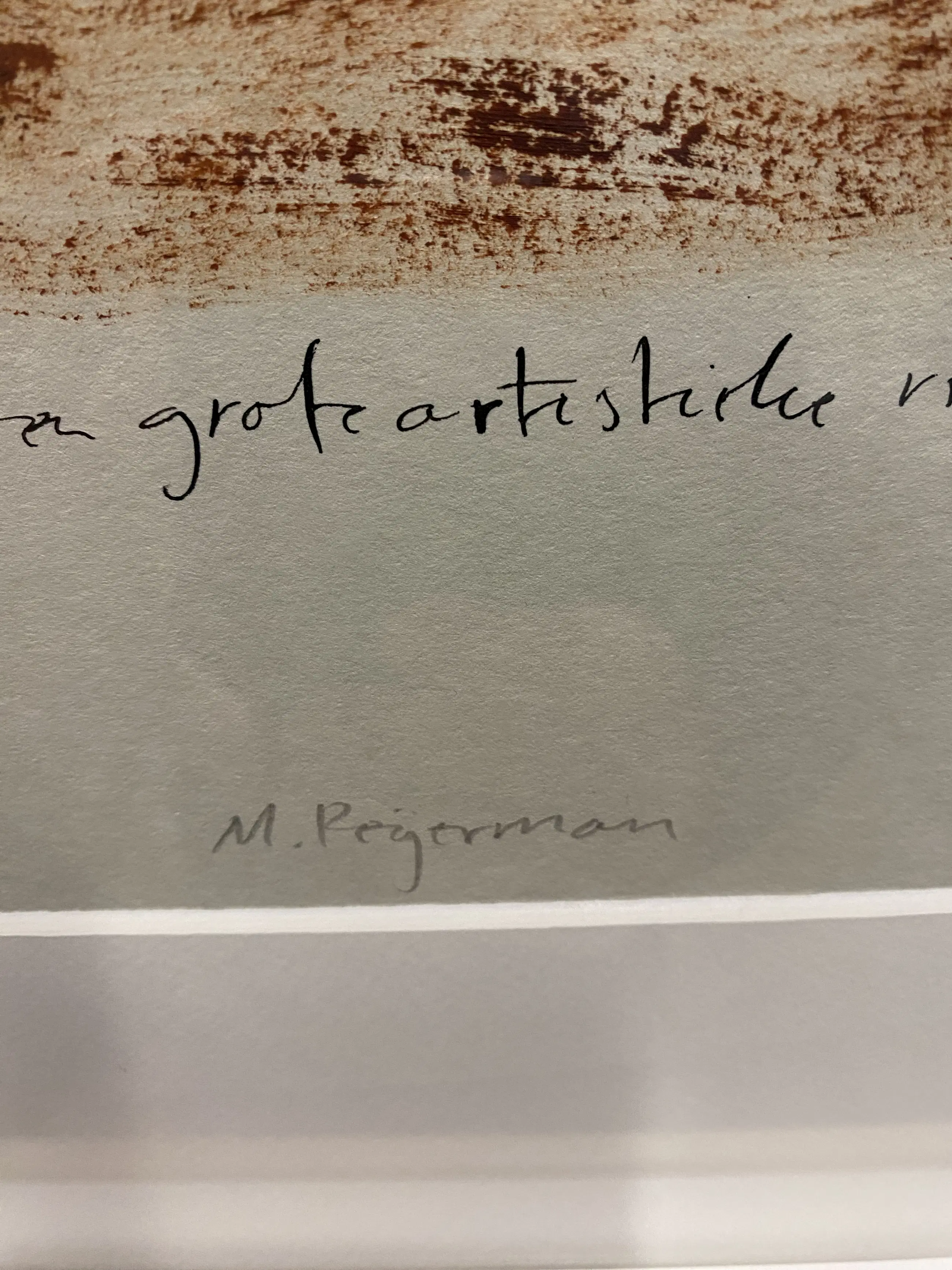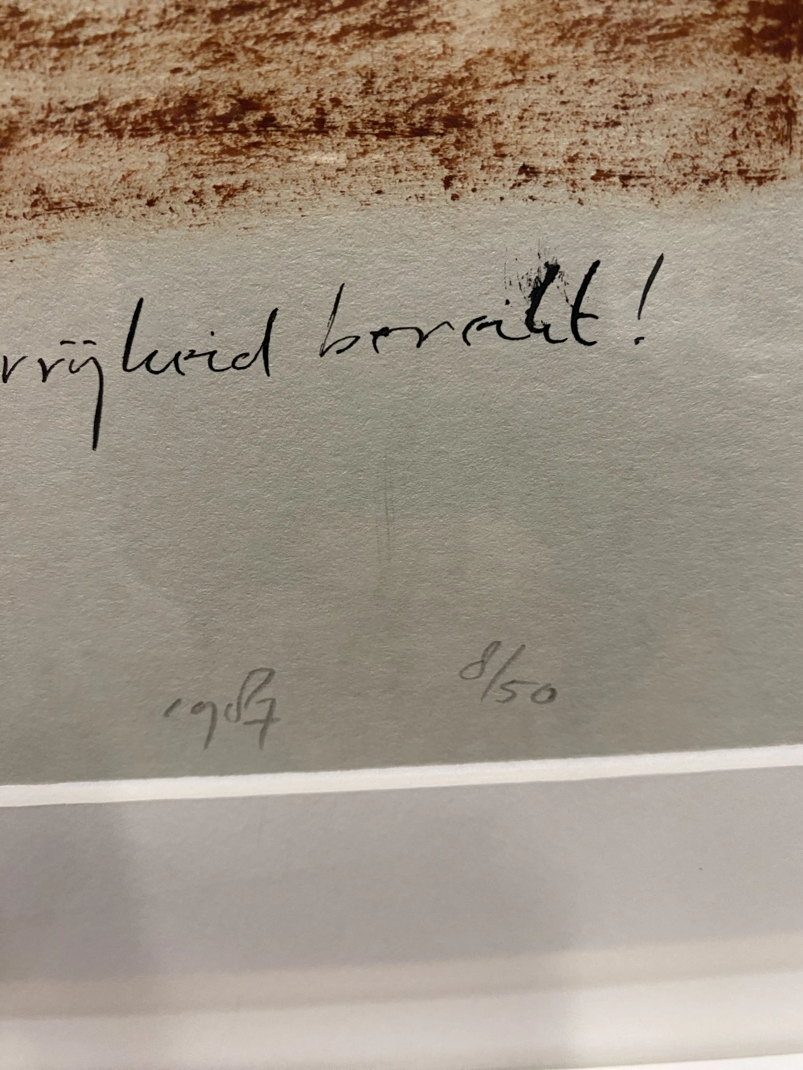 Vrolijk werk van de Arnhemse kunstenaar Marcel Reijerman, werk kan zo aan de muur. Tekst: wat heb ik toch een grote artistieke vrijheid bereikt Kleine oplage van 50 stuks, dit is nr 8/50
