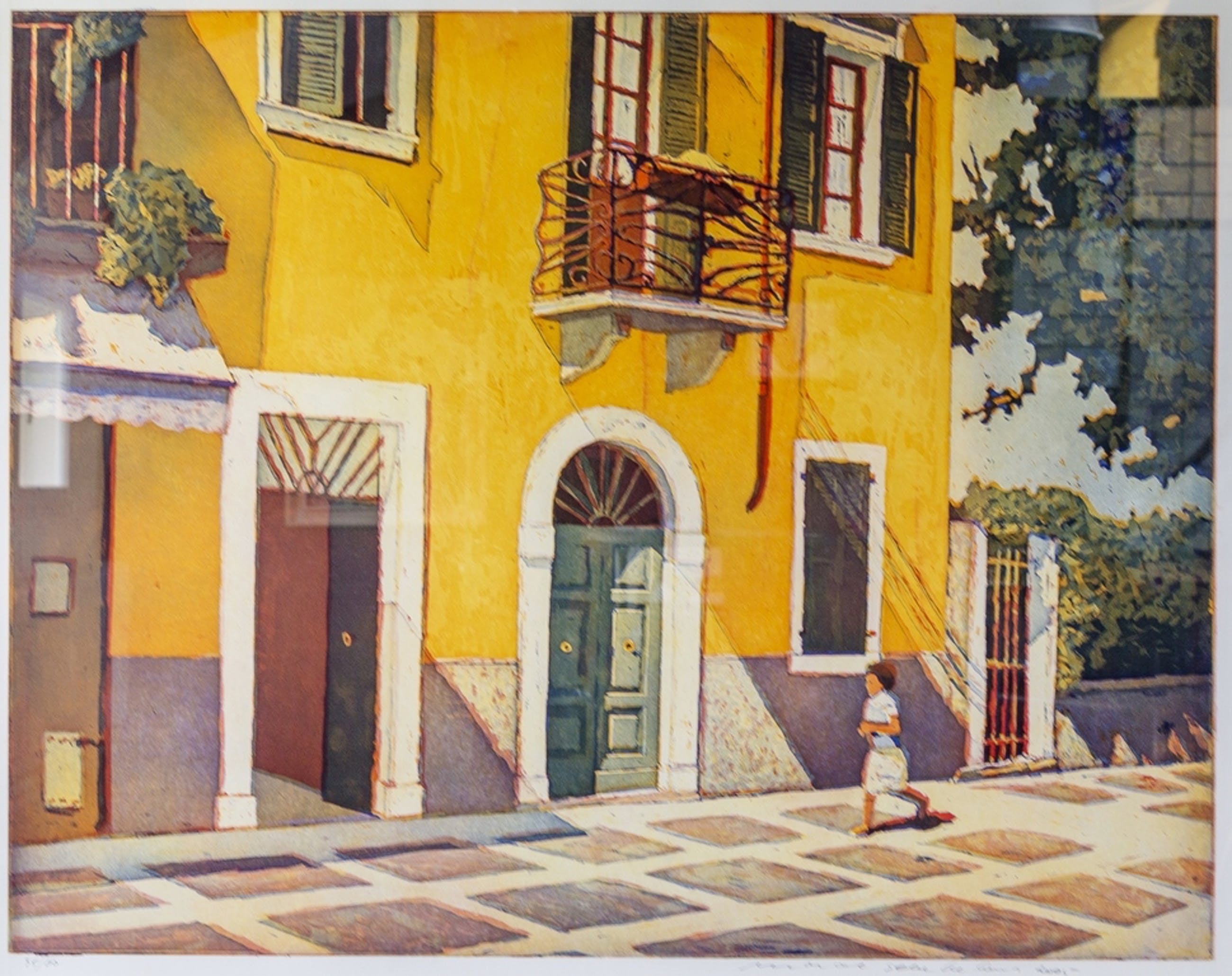 Marcel Schellekens kleuren ets - 2005 - ingelijst groot.