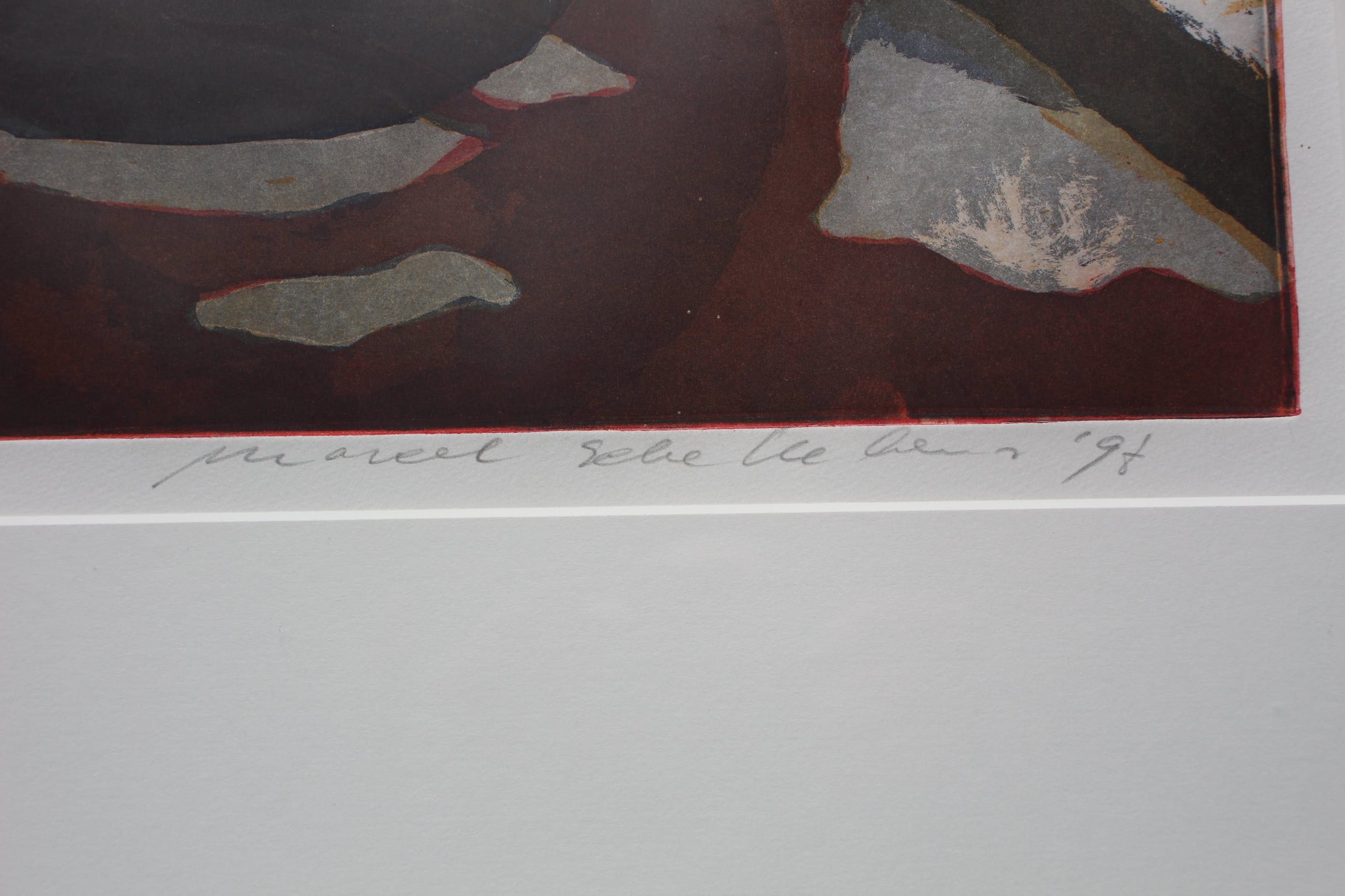 Ingelijste kleuren ets van Marcel Schellekens. Jaar: 1997. Voorzien van nette lichte houten lijst van Barth met passepartout. Titel: Vissenkom. Nummer: 13/65. Afmetingen incl. lijst: H73 x b63 cm, afmetingen voorstelling: H49 x b39 cm. .Het werk is rechtsonder gesigneerd door de kunstenaar. De authenticiteit van het, aangeboden, werk wordt voor 100% gegarandeerd.Een certificaat van echtheid kan, op aanvraag, worden meegeleverd.