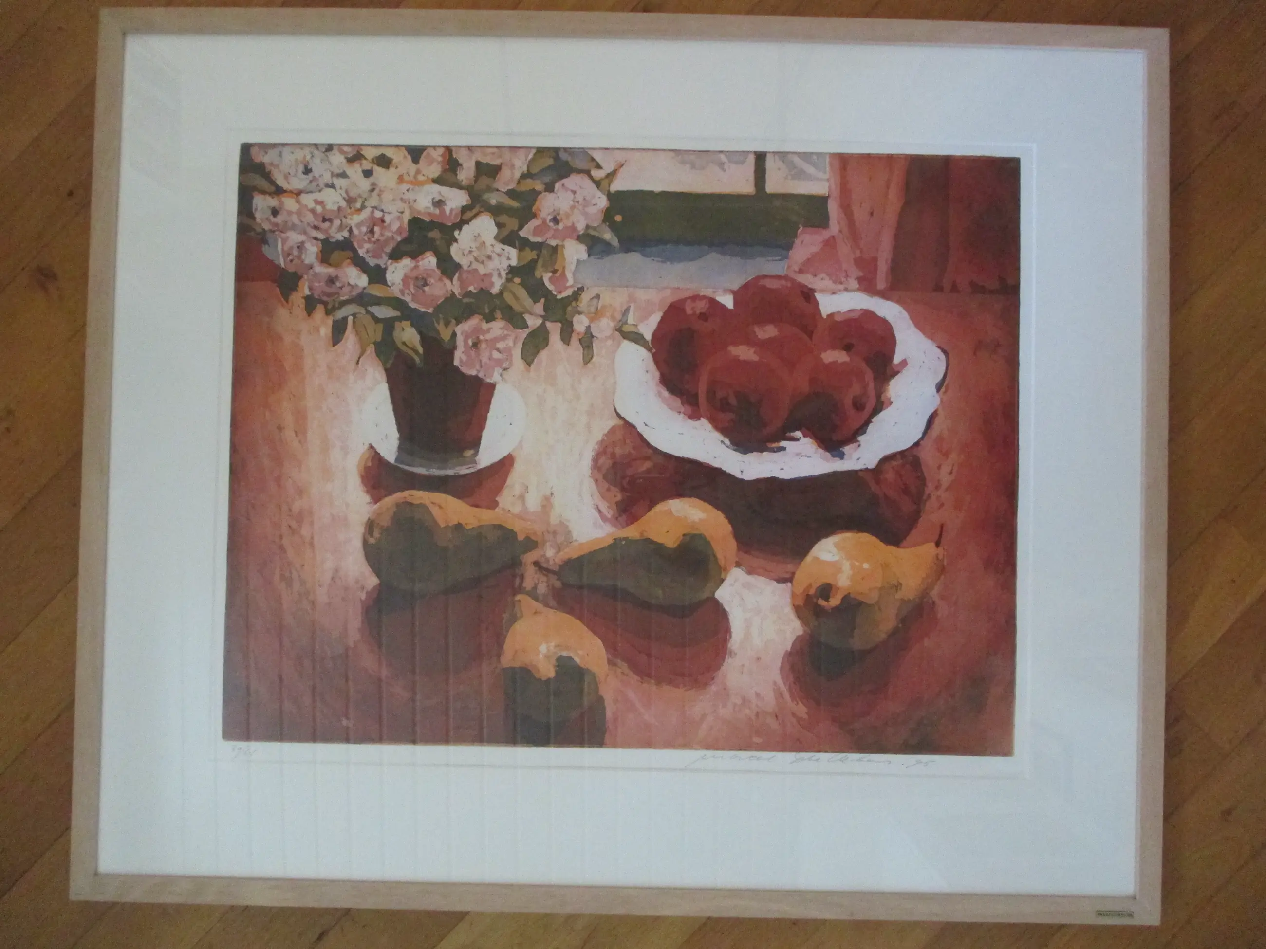 Ets van Marcel Schellekens, gesigneerd, gedateerd en genummerd in potlood. Ingelijst achter passe-partout en glas in houten Barth lijst. Vanwege de grootte alleen afhalen of verzending met koerier