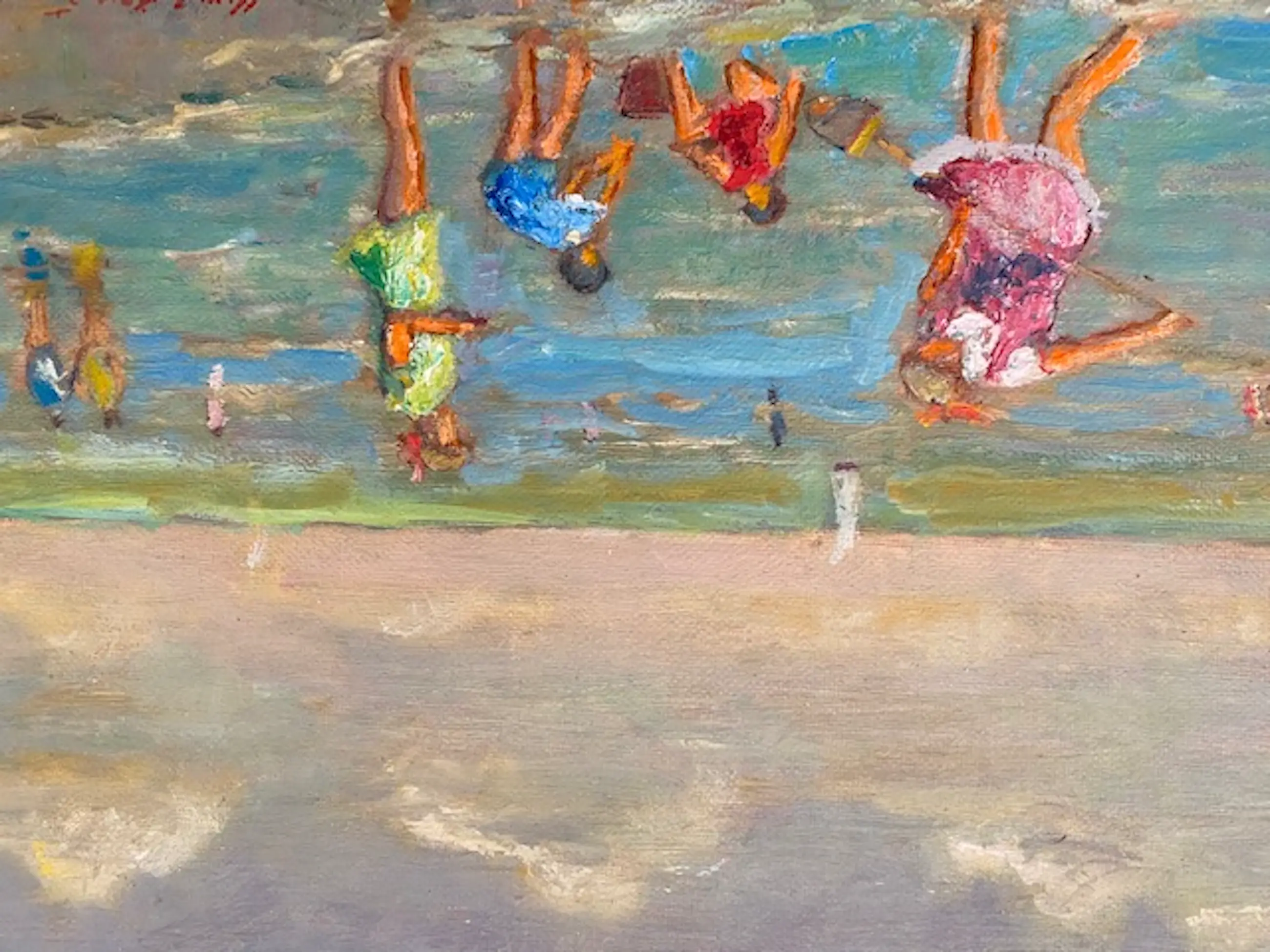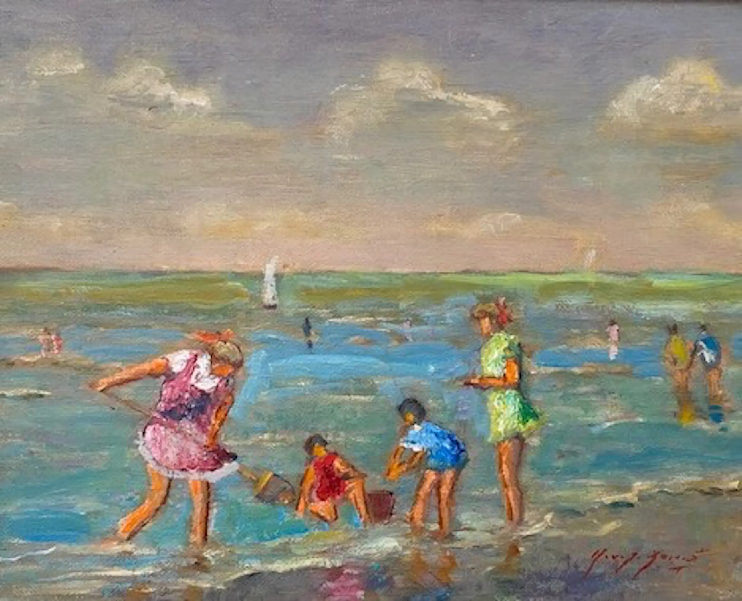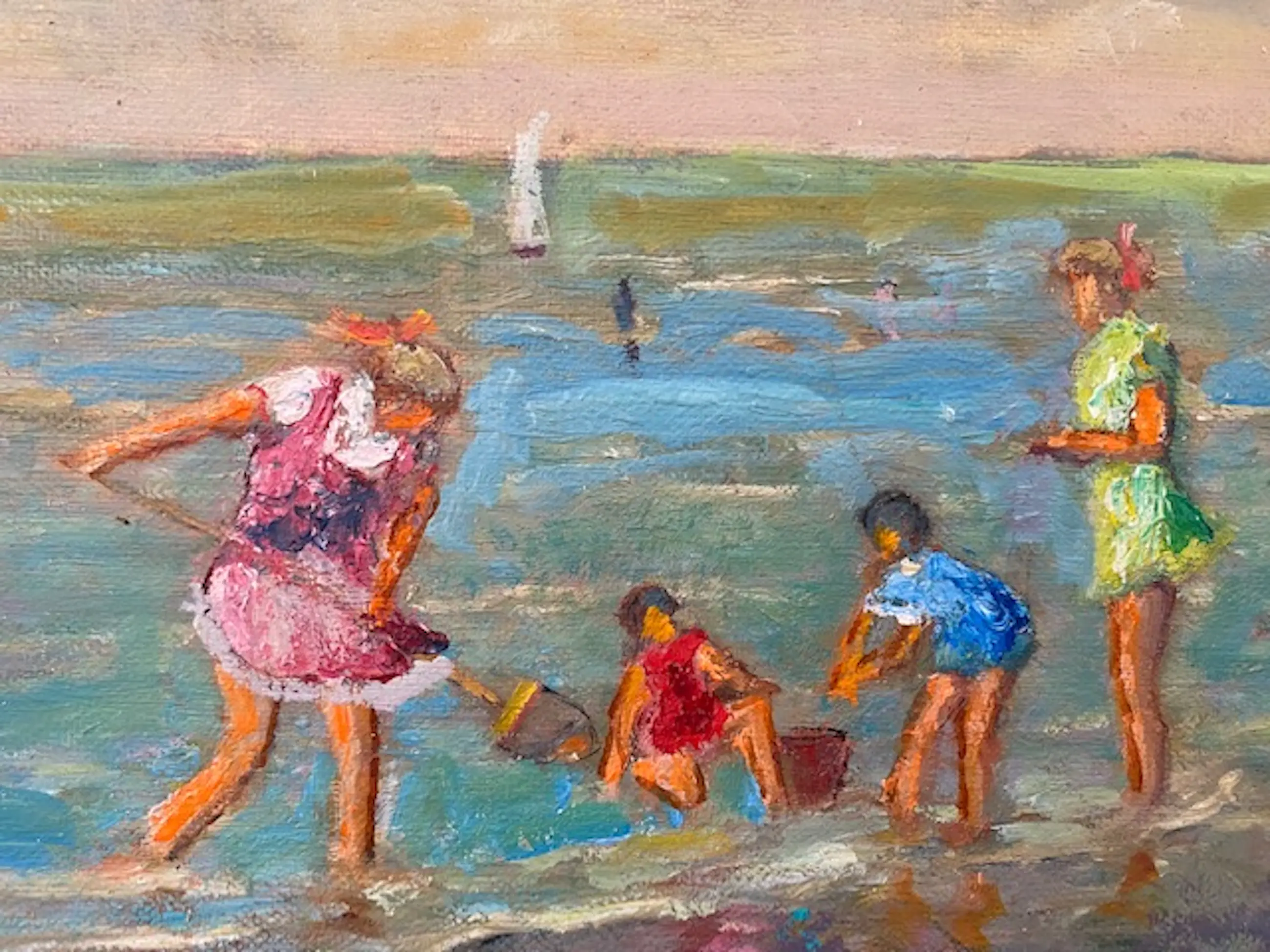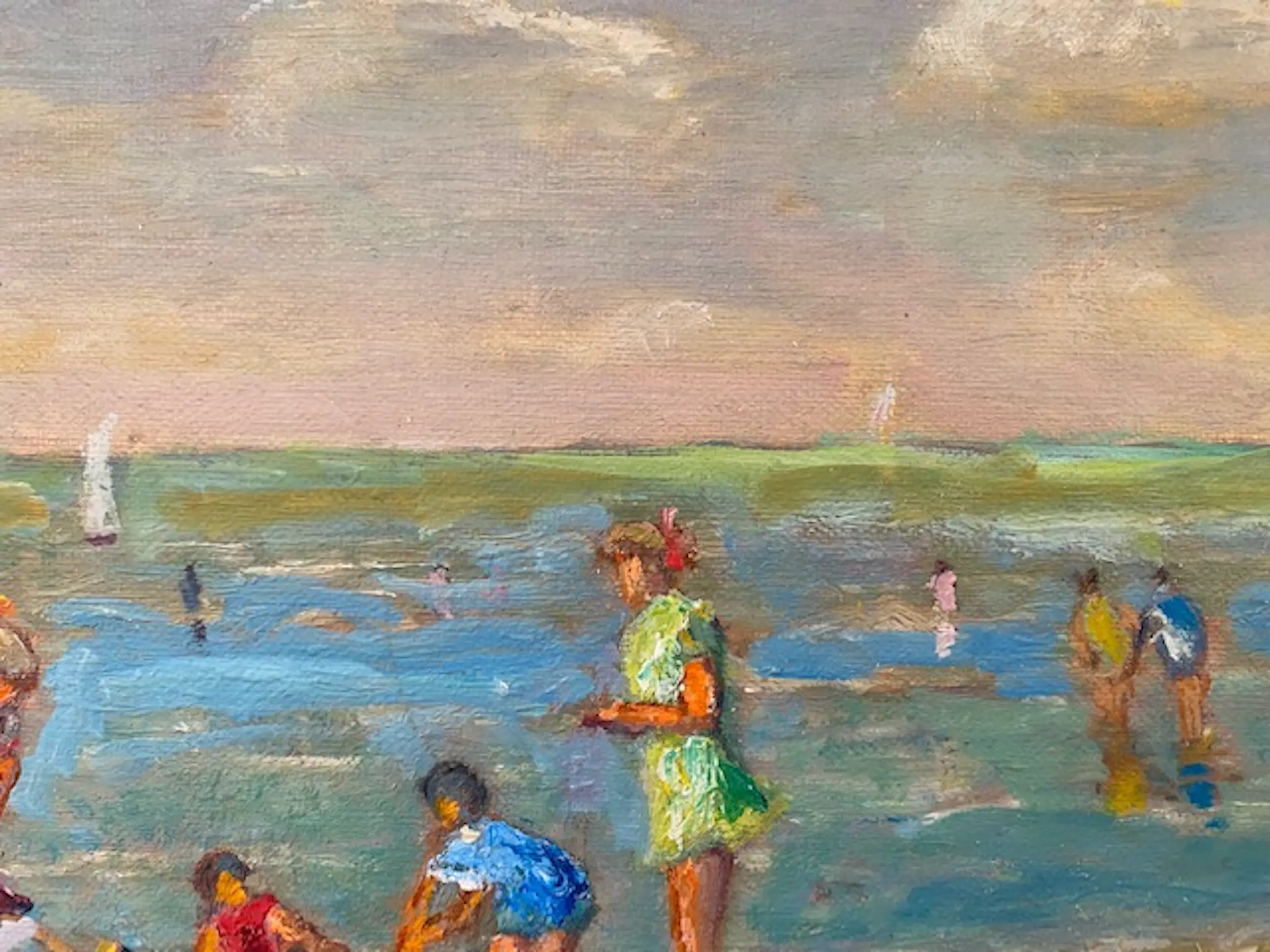 Marcel van den Bempt is in 1940 geboren in Schoten (België) en volgende zijn academische scholing in Antwerpen en Borsbeek. Hij staat vermeld in de "PIRON", Belgische kunstenaars van de negentiende tot de eenentwintigste eeuw. Van den Bempt haalt zijn inspiratie uit het alledaagse leven en vertaalt dit op een postimpressionistische wijze in kleurrijke en luministische doeken. Hij schildert veel landschappen maar kan in de zomer zijn artistieke ei kwijt aan de Belgische kust, waar het strandleven volop onderwerpen oplevert. Het schilderij wordt zonder lijst verzonden.