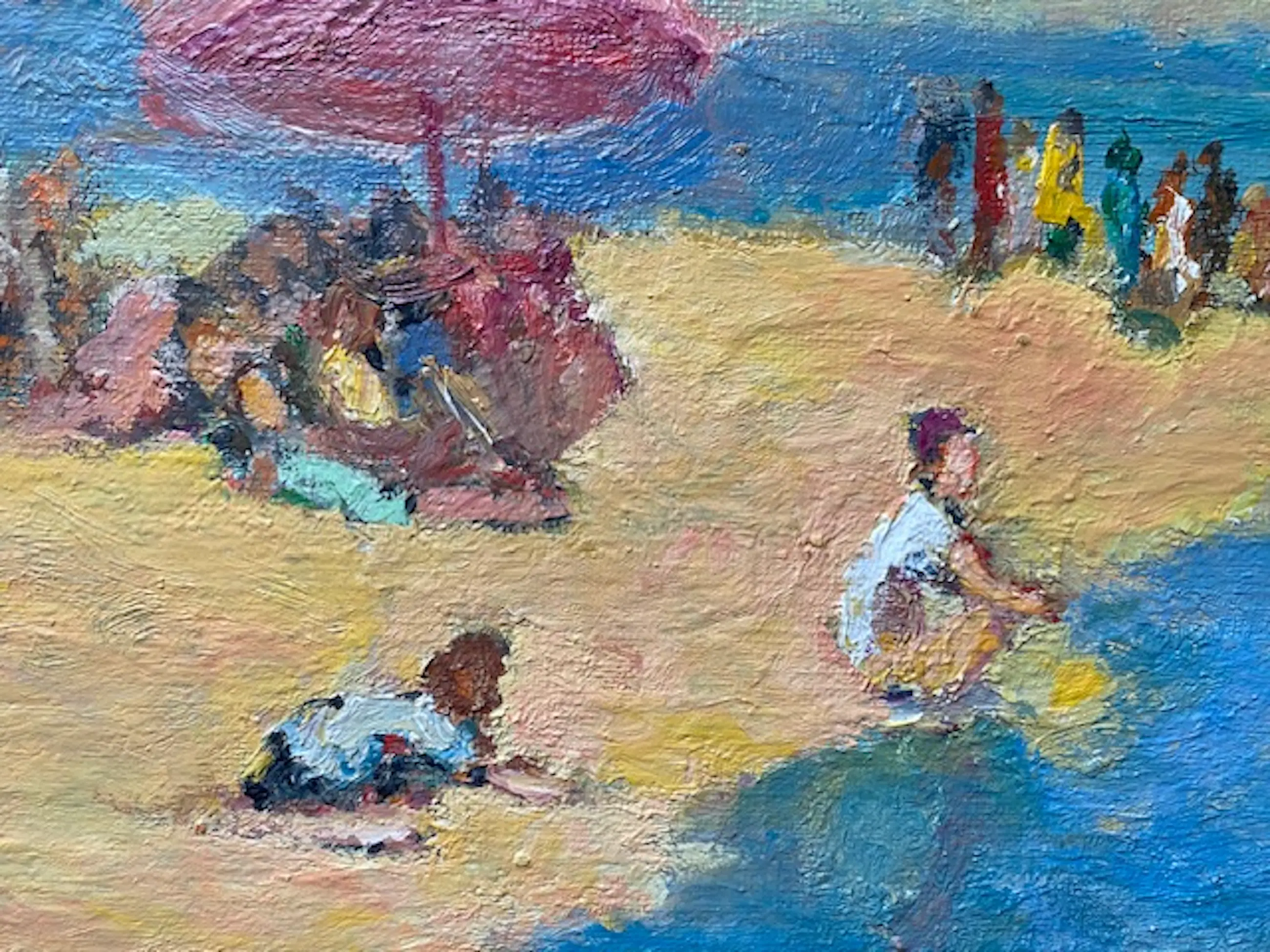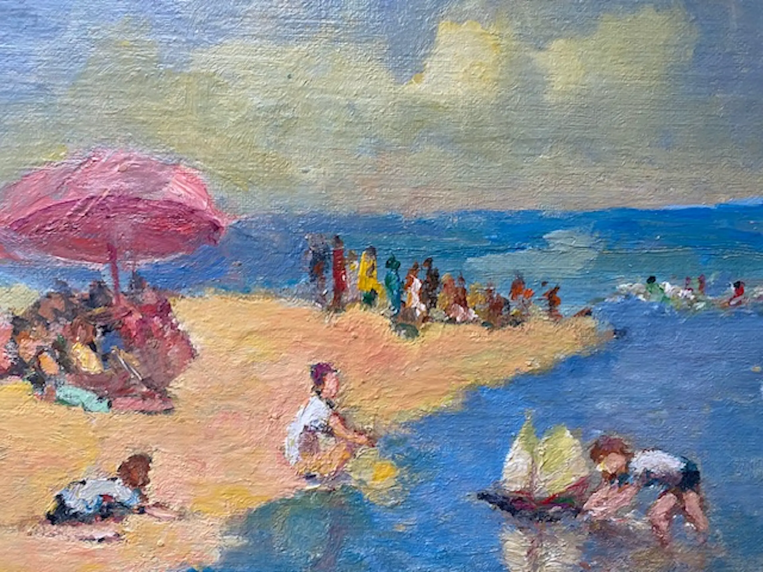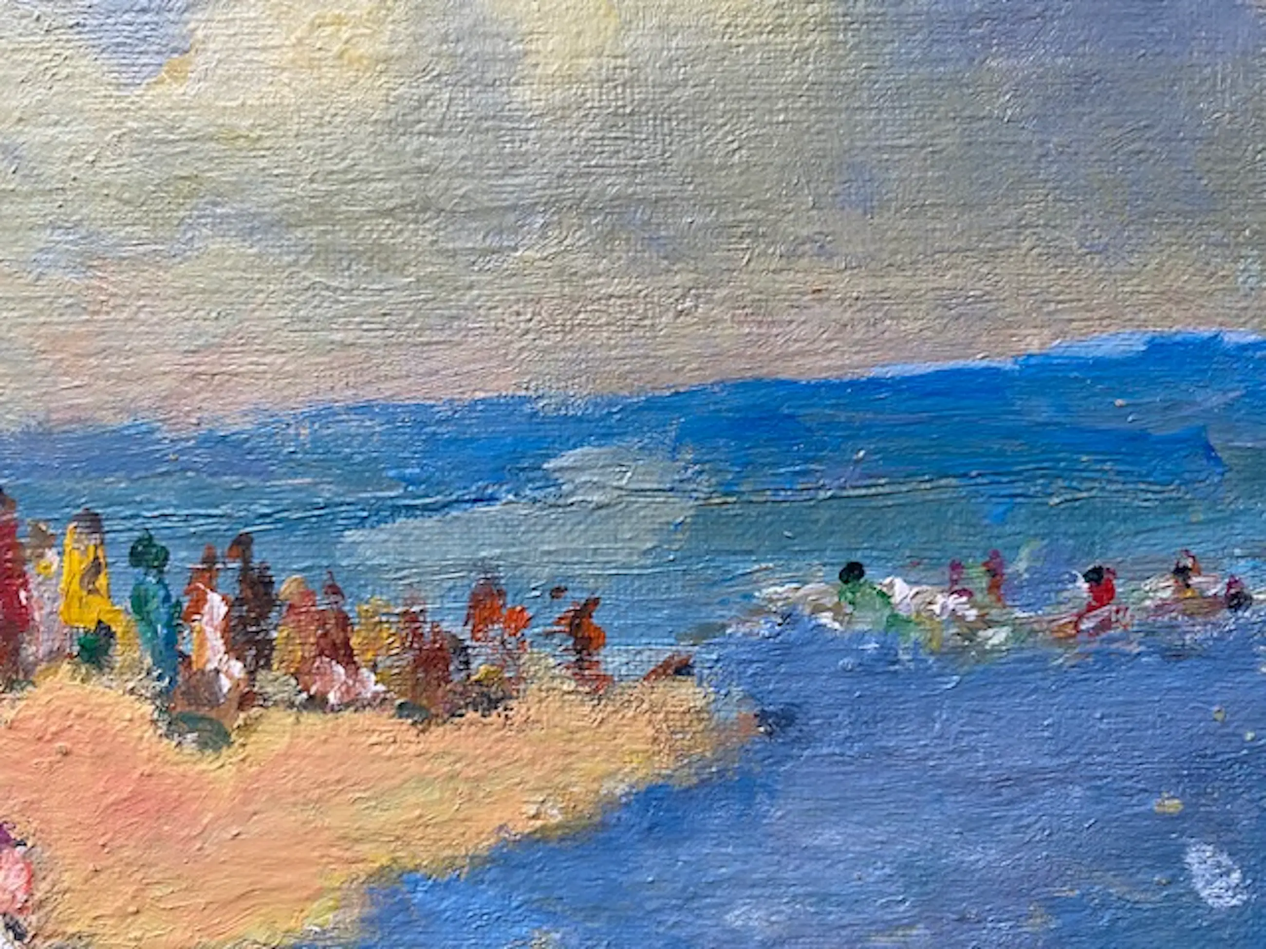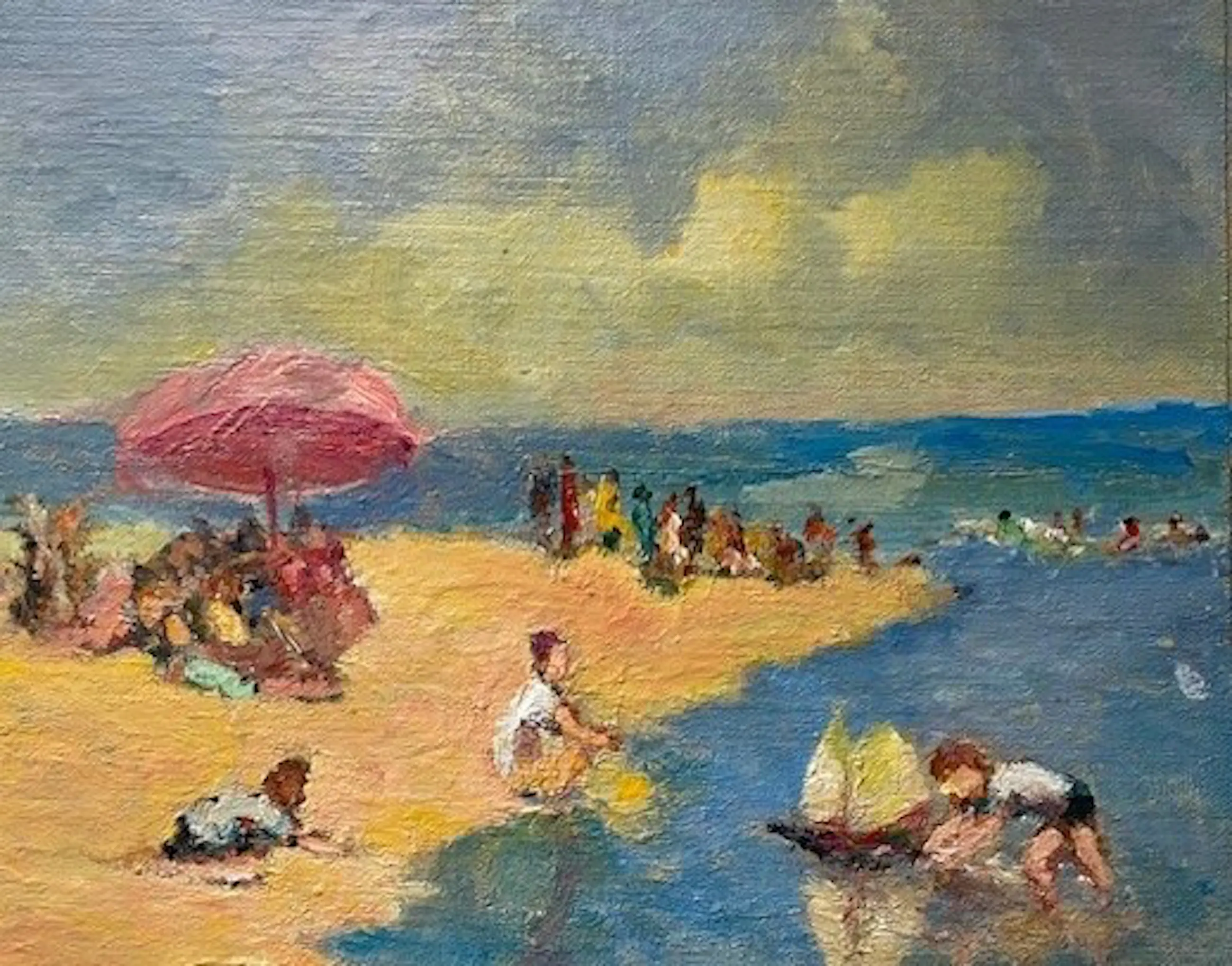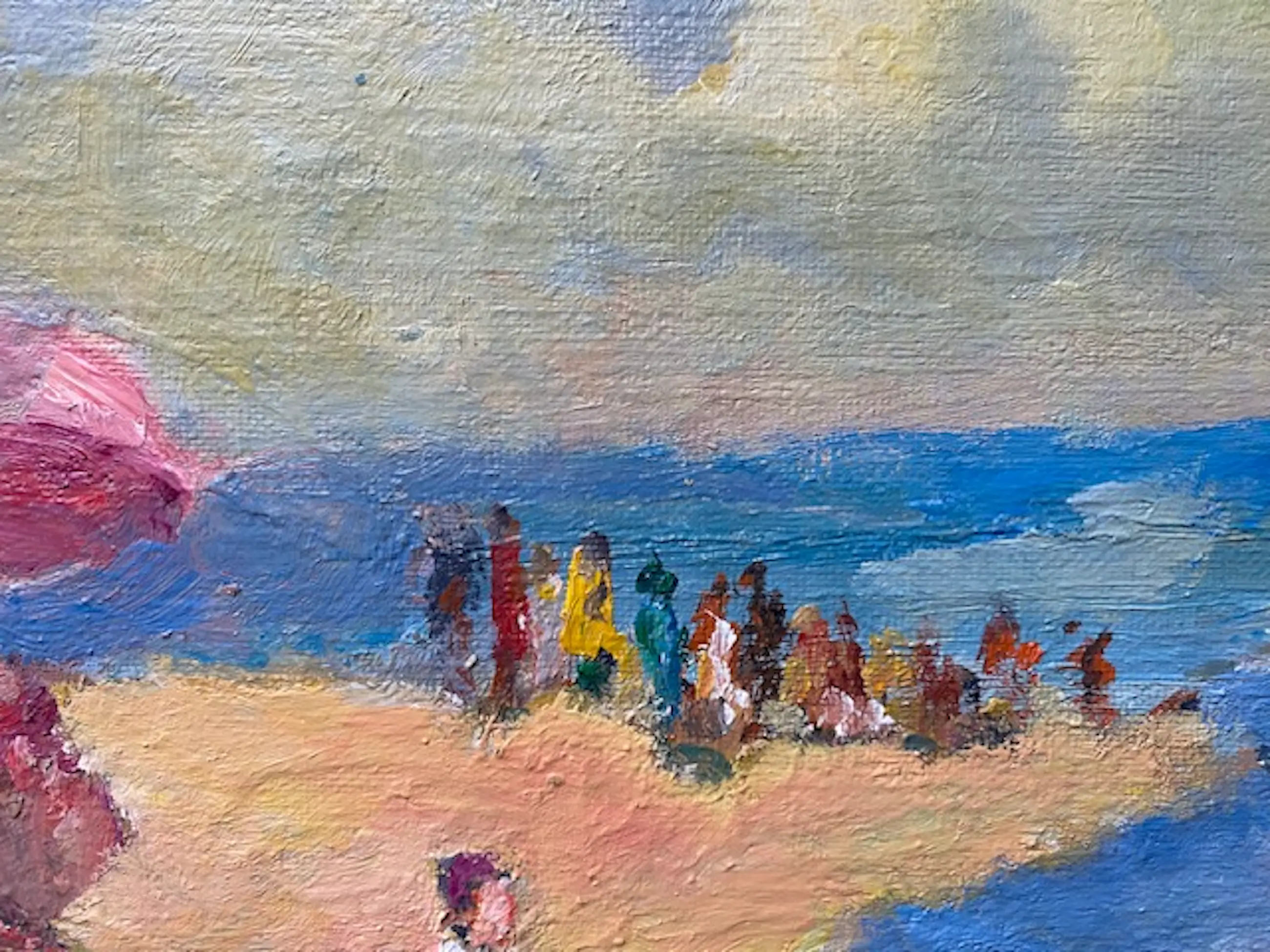 Strandgezichtje van kunstenaar Marcel Van Den Bempt geboren te Schoten 1940 en aldaar overleden 2023. Marcel was een verdienstelijk hedendaags impressionistisch kunstenaar met opleiding aan de Kunstacademies te Antwerpen en Borsbeek.