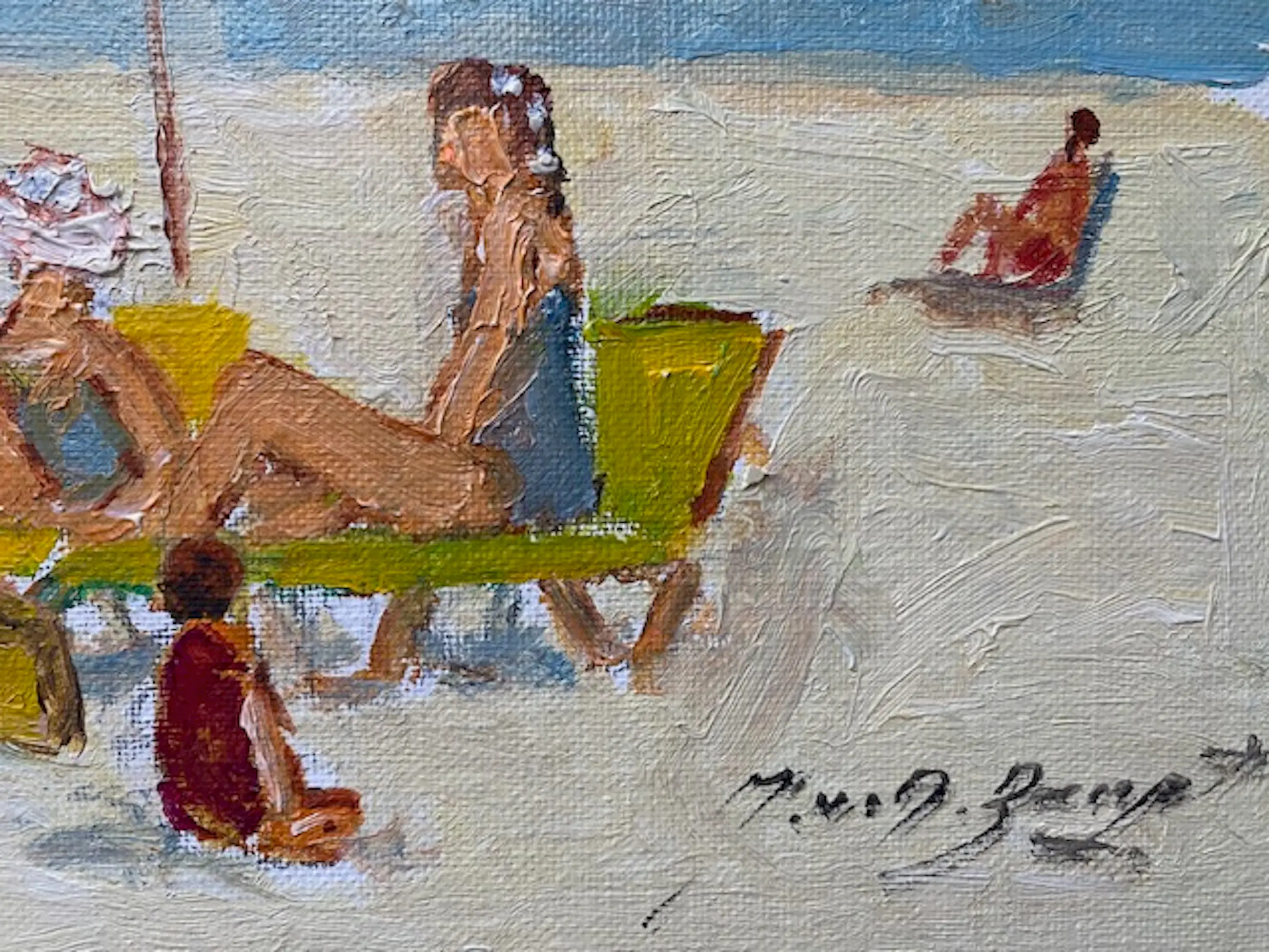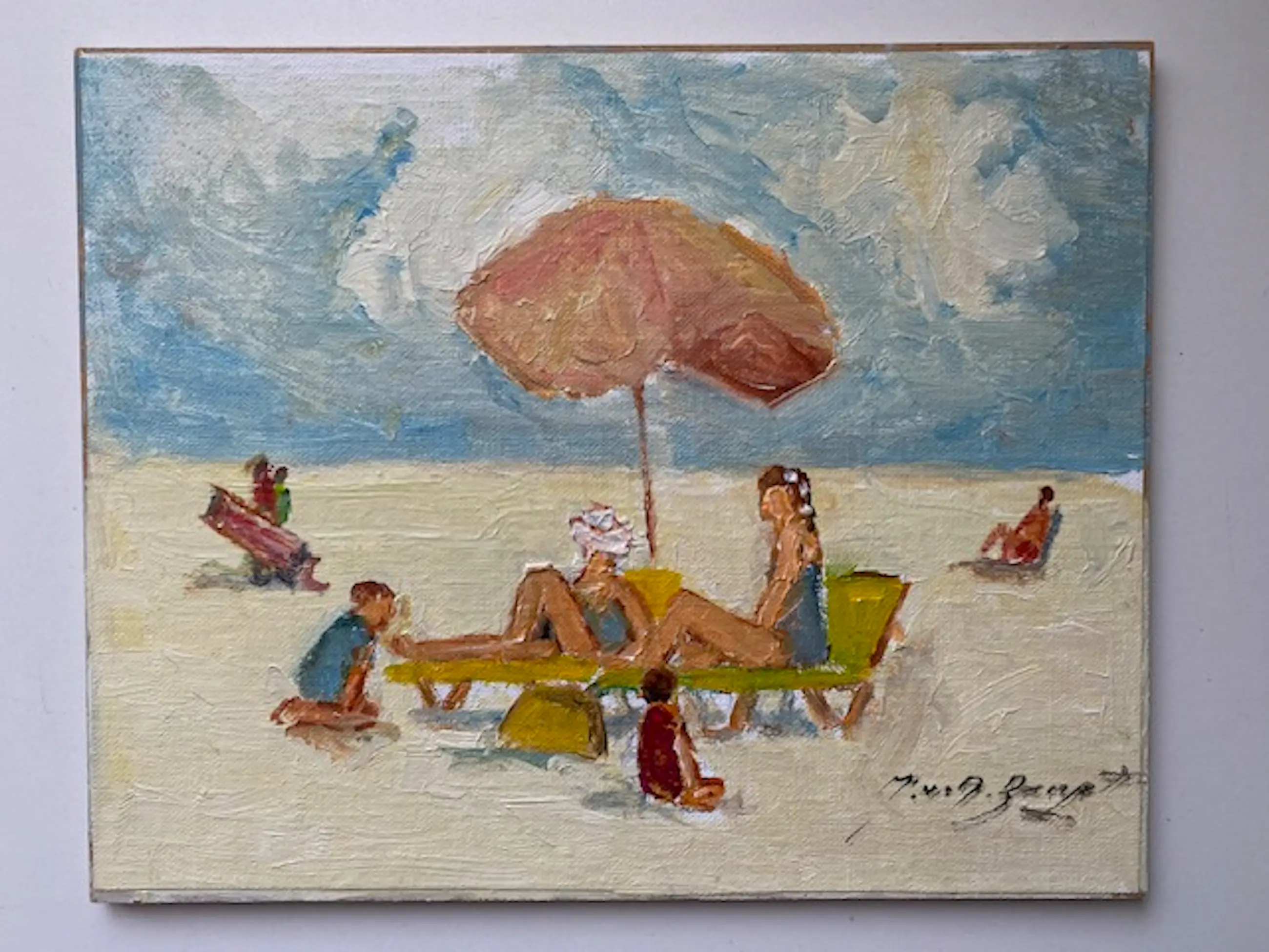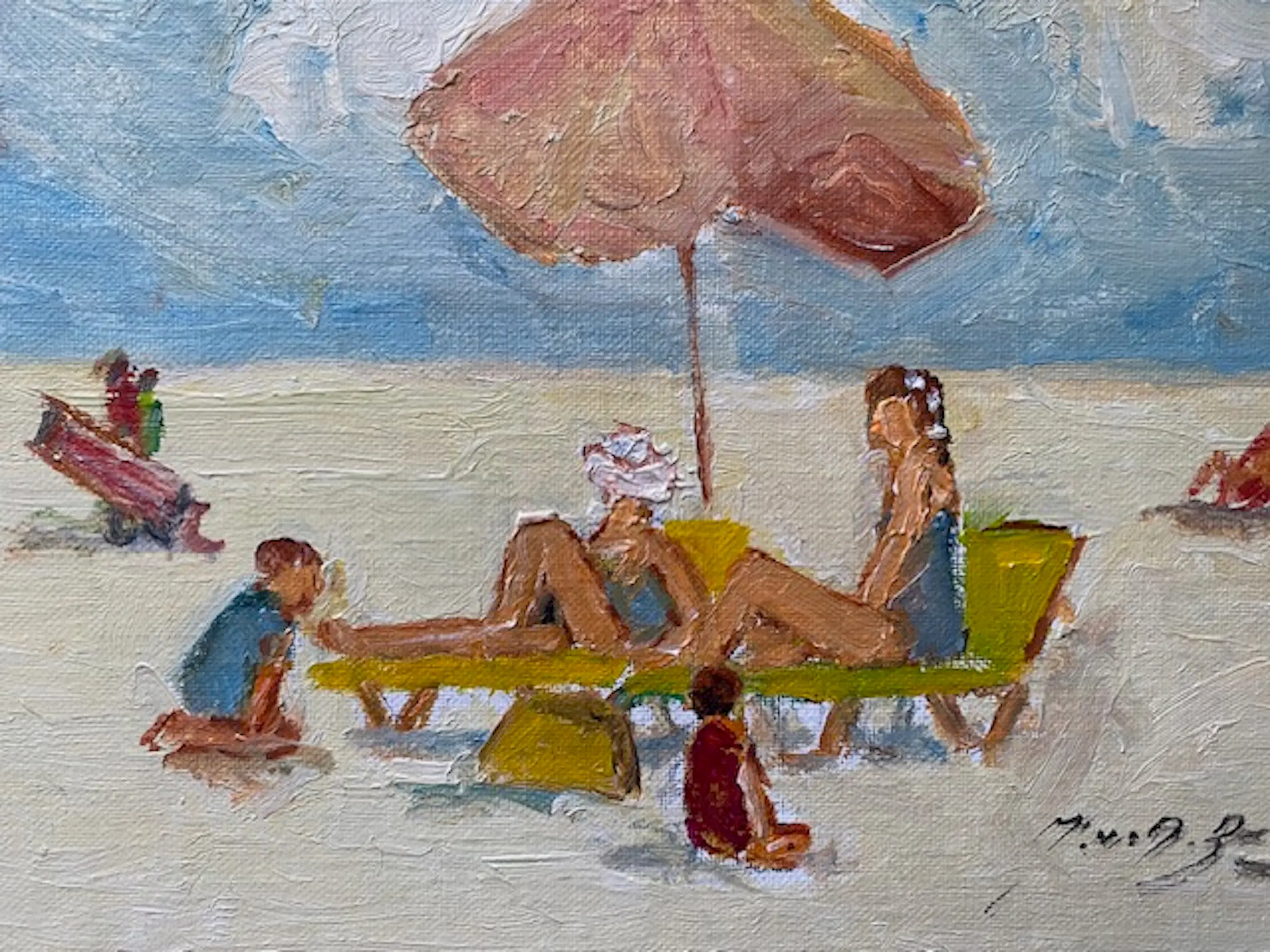 Strandgezichtje van kunstenaar Marcel Van Den Bempt geboren te Schoten 1940 en aldaar overleden 2023. Marcel was een verdienstelijk hedendaags impressionistisch kunstenaar met opleiding aan de Kunstacademies te Antwerpen en Borsbeek.