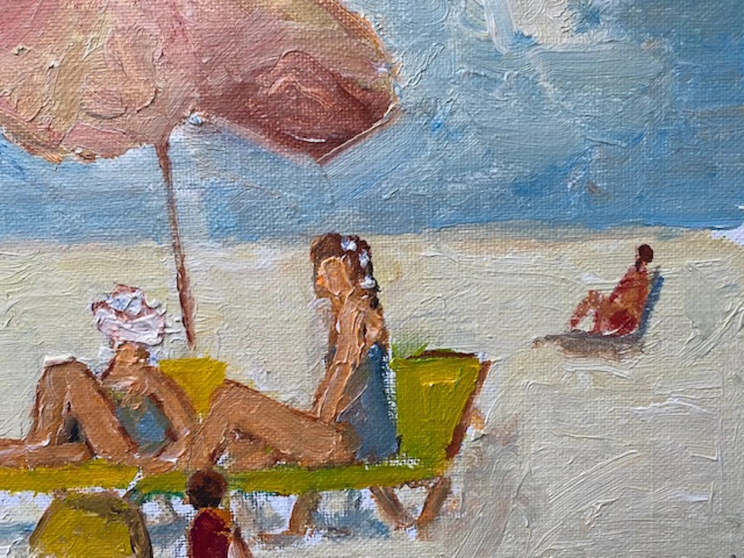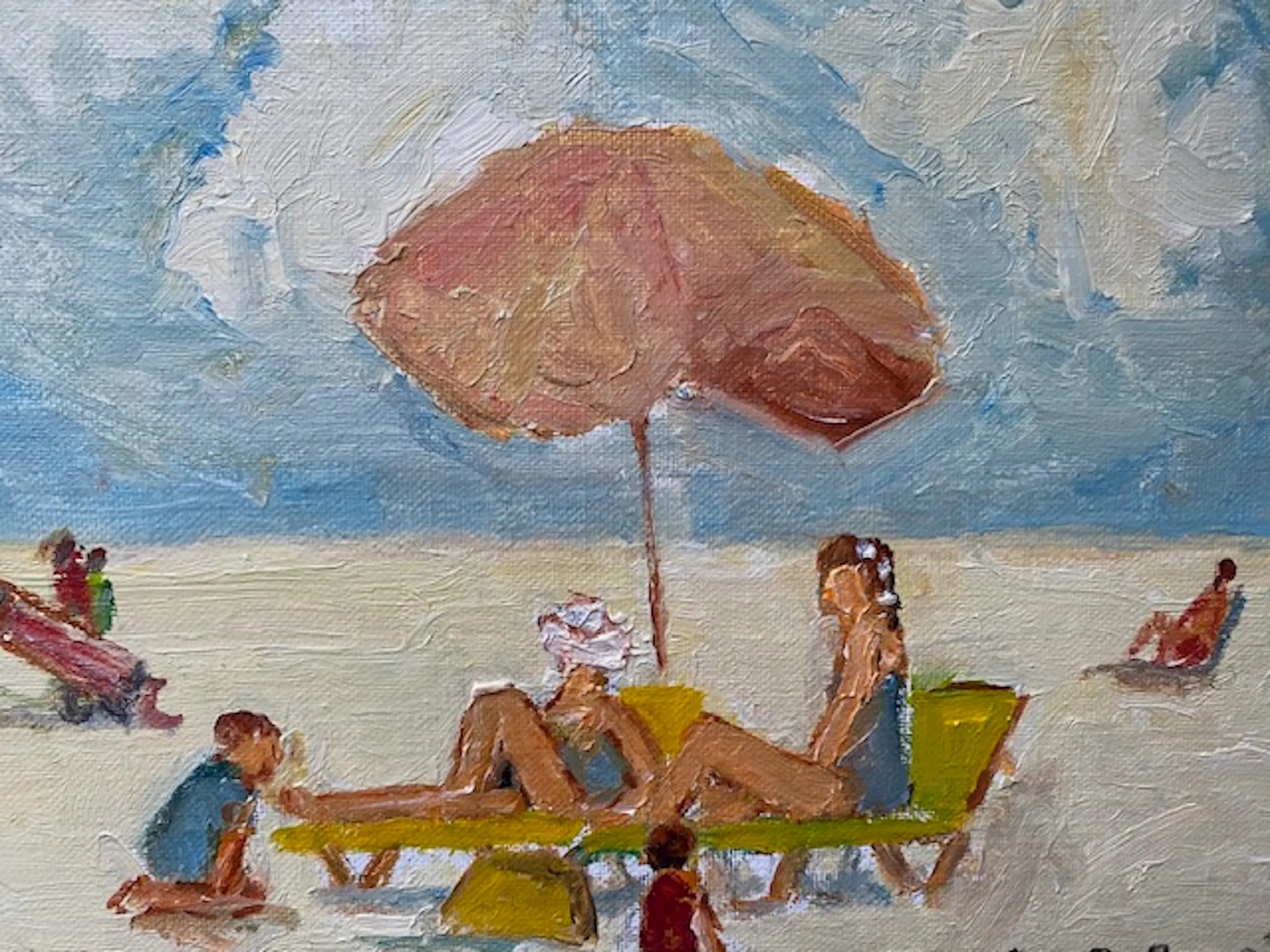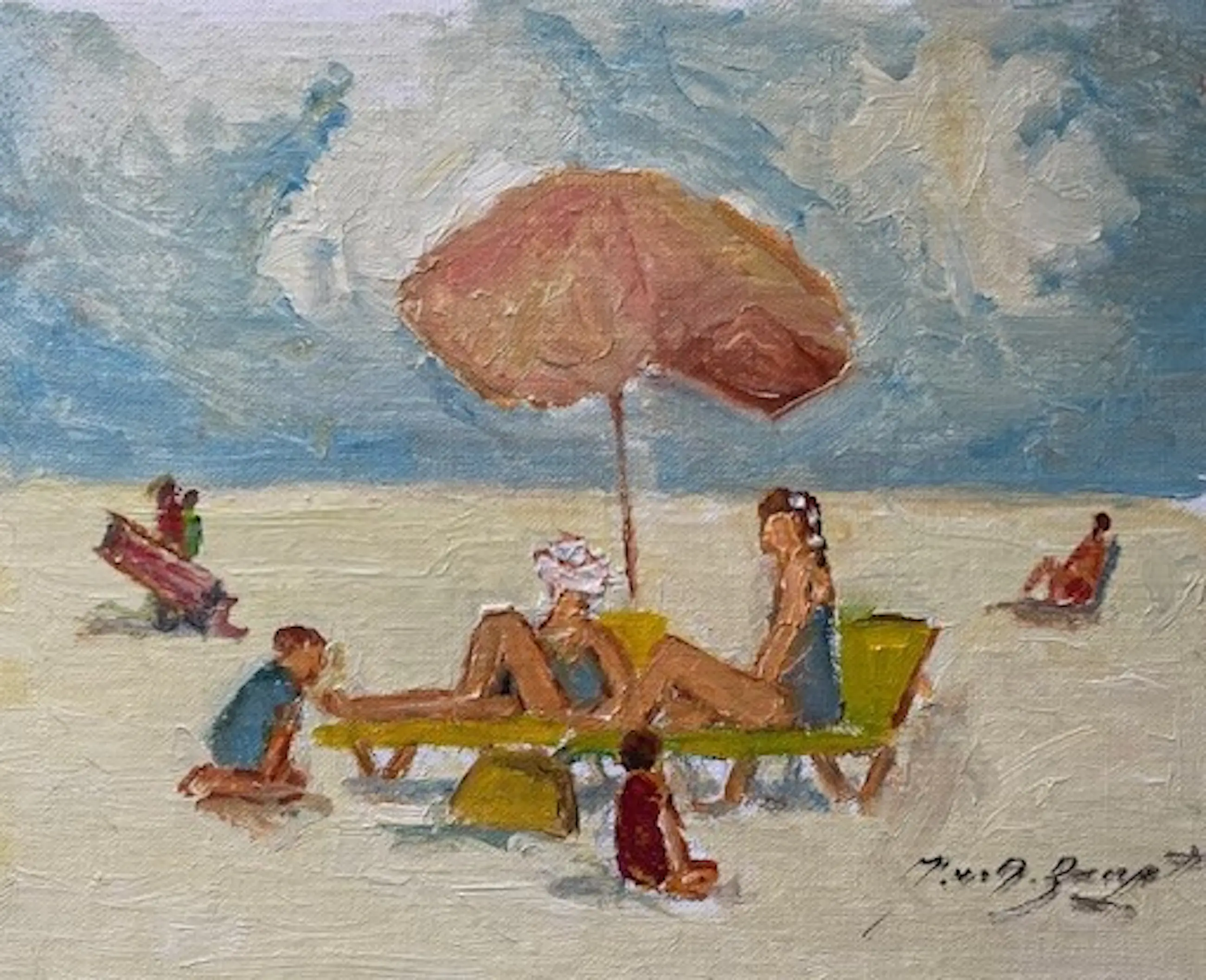 Strandgezichtje van kunstenaar Marcel Van Den Bempt geboren te Schoten 1940 en aldaar overleden 2023. Marcel was een verdienstelijk hedendaags impressionistisch kunstenaar met opleiding aan de Kunstacademies te Antwerpen en Borsbeek.