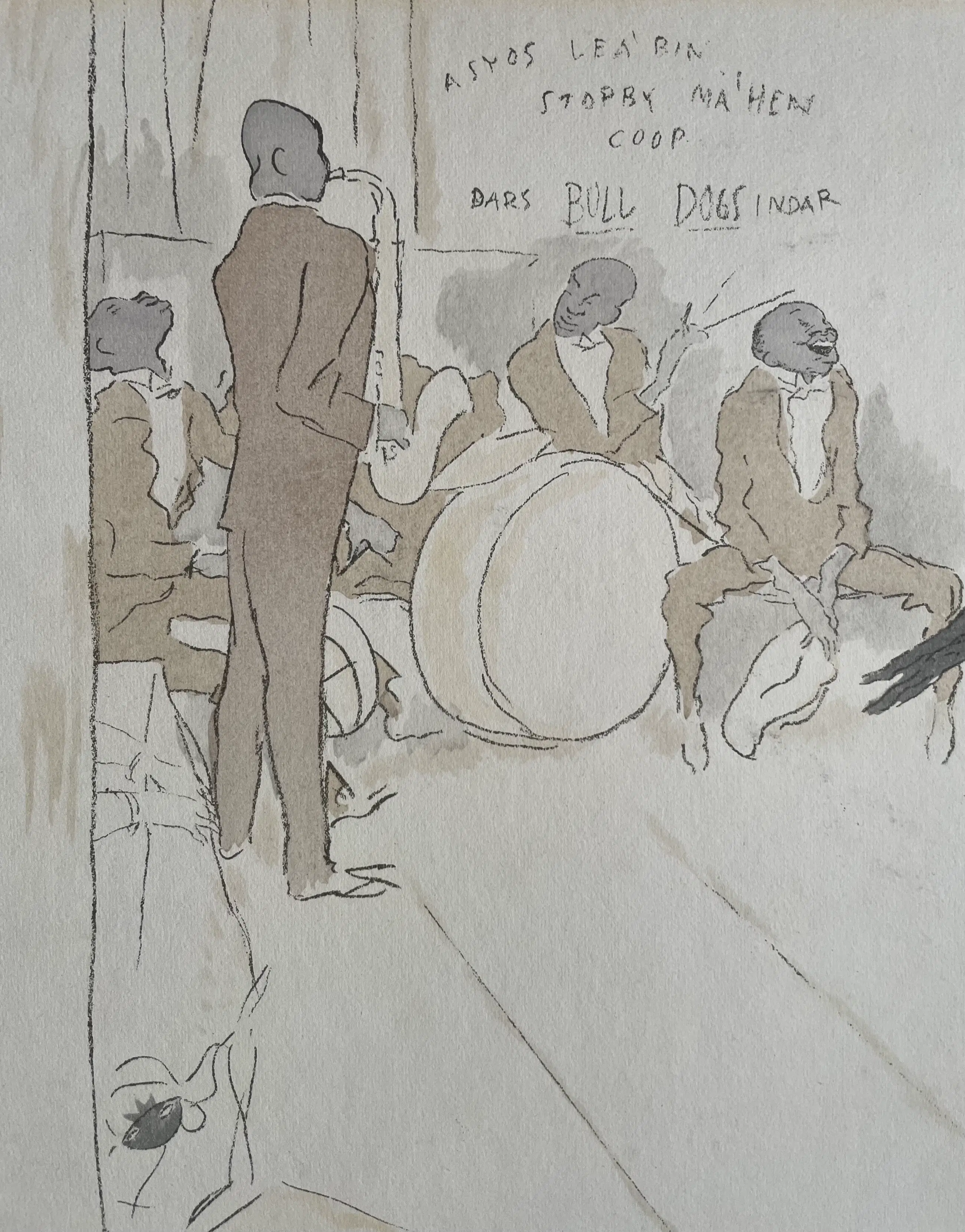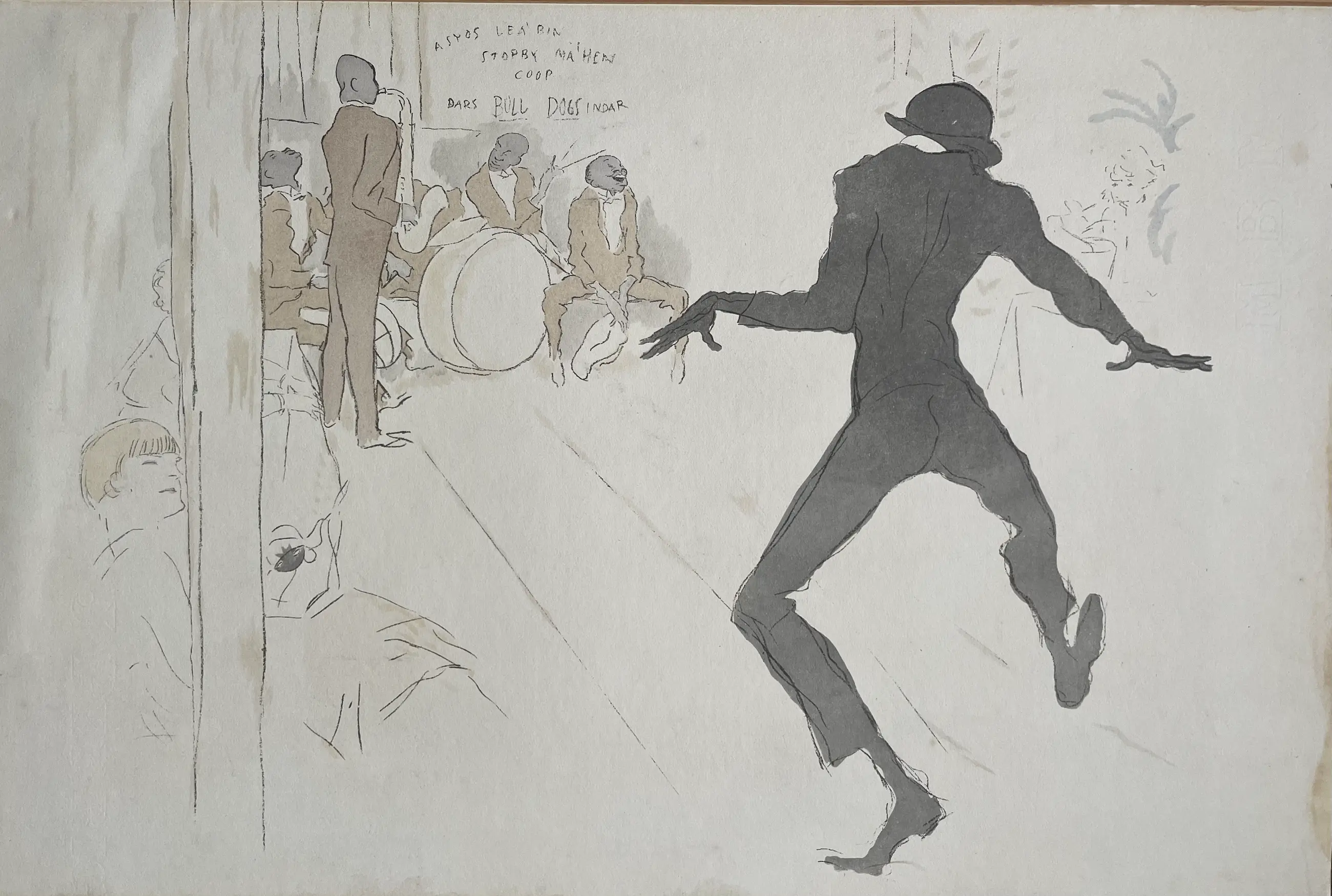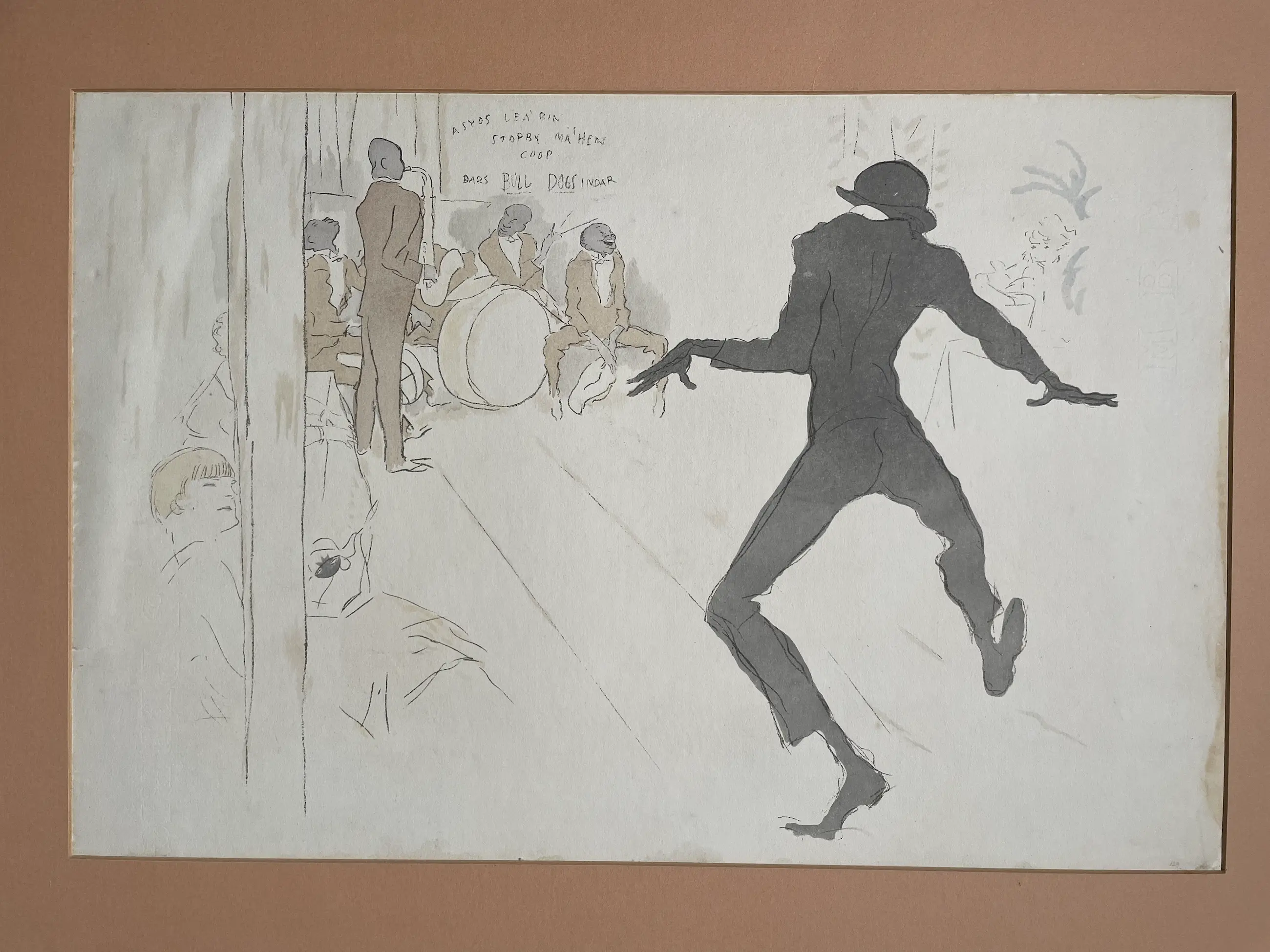 Prachtig getekende en zeldzame Franse Art Deco litho door Marcel Vertes uit 1924/25. Uit de serie 'Dancing', een portfolio van 12 litho's uitgegeven door Gustave Pellet in een oplage van 300. De serie geeft op levendige wijze de 'Jazz'-periode weer in Parijs in de 20er jaren.