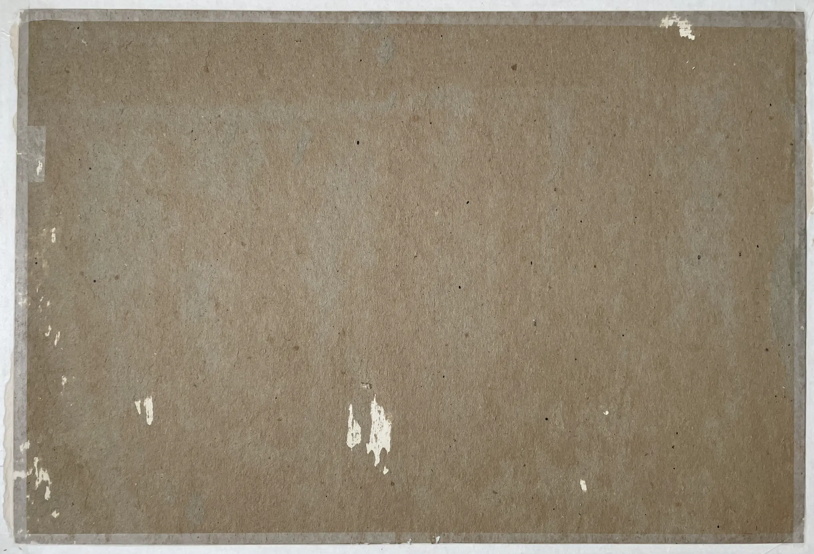 De prent is niet in top conditie: gemonteerd op dun karton, dichtgezet scheurtje (2 cm) linkerzijde, smalle bruine vlekken rechterzijde.