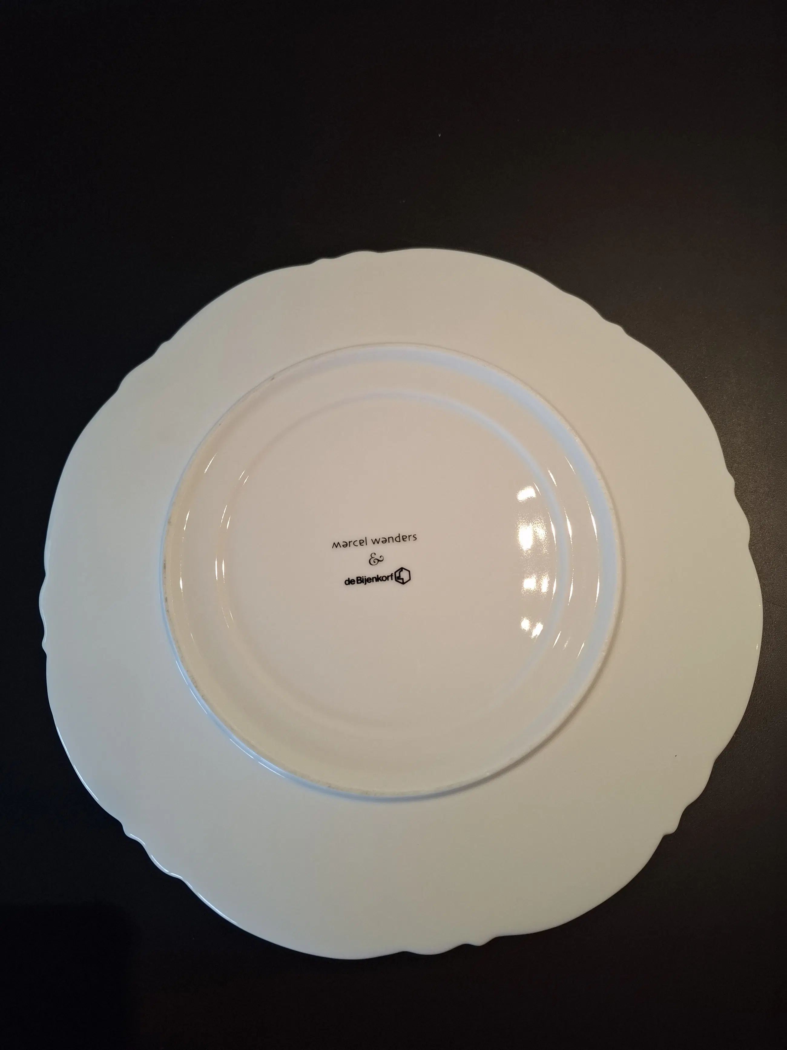 Prachtig porseleinen bord ontworpen door Marcel Wanders voor De Bijenkorf. Het bord heeft een fraai Dutch design. Kenmerkend voor De Bijenkorf is het honingraat design. De bord heeft een 'gouden' kartel randje. Het bord is in 2008 uitgegeven.